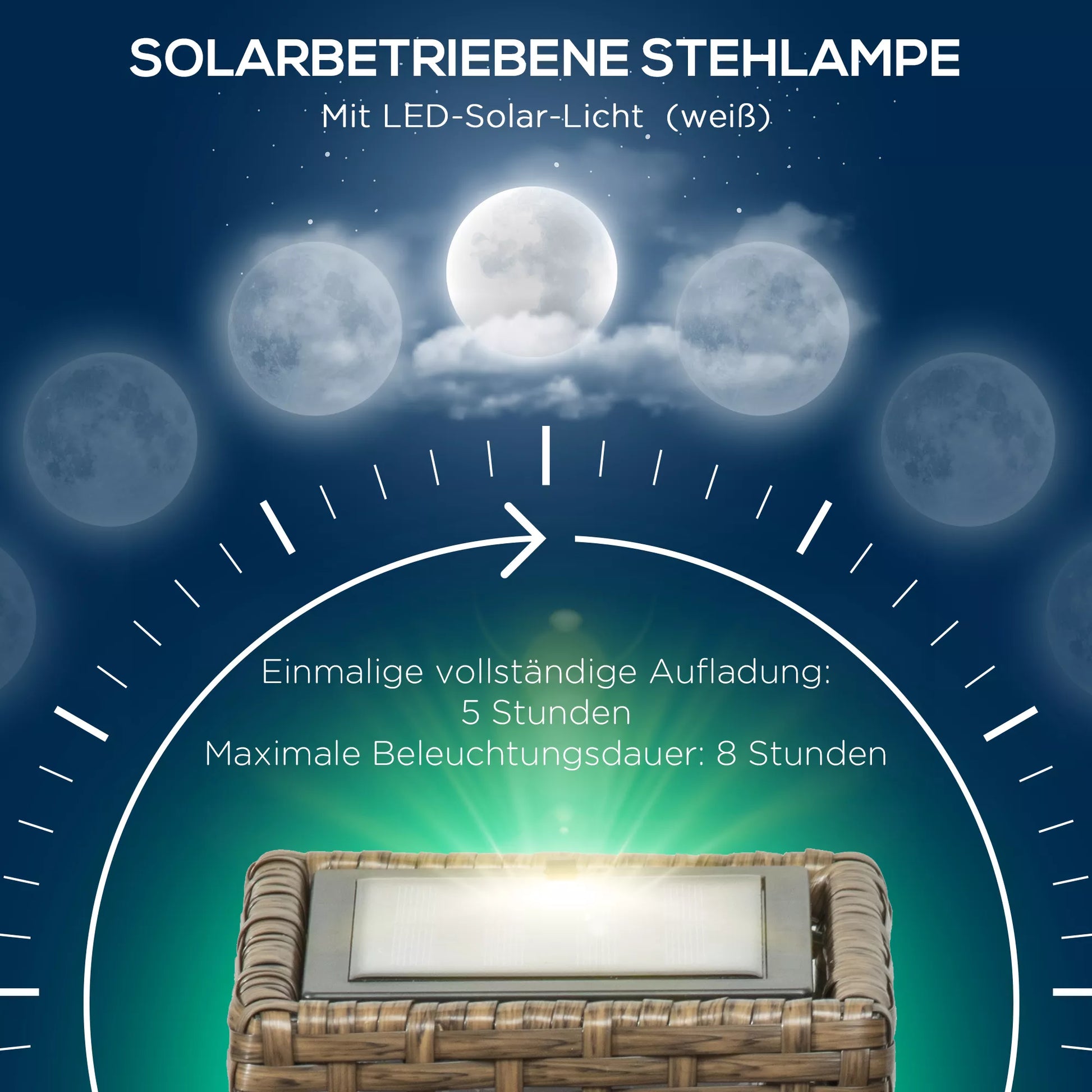 Lauko šviestuvas, sodo lempa, veikiantis saulės energija, 8 val. apšvietimo trukmė, automatinis įsijungimas, rotango imitacija, 15,5 x 15,5 x 46 cm