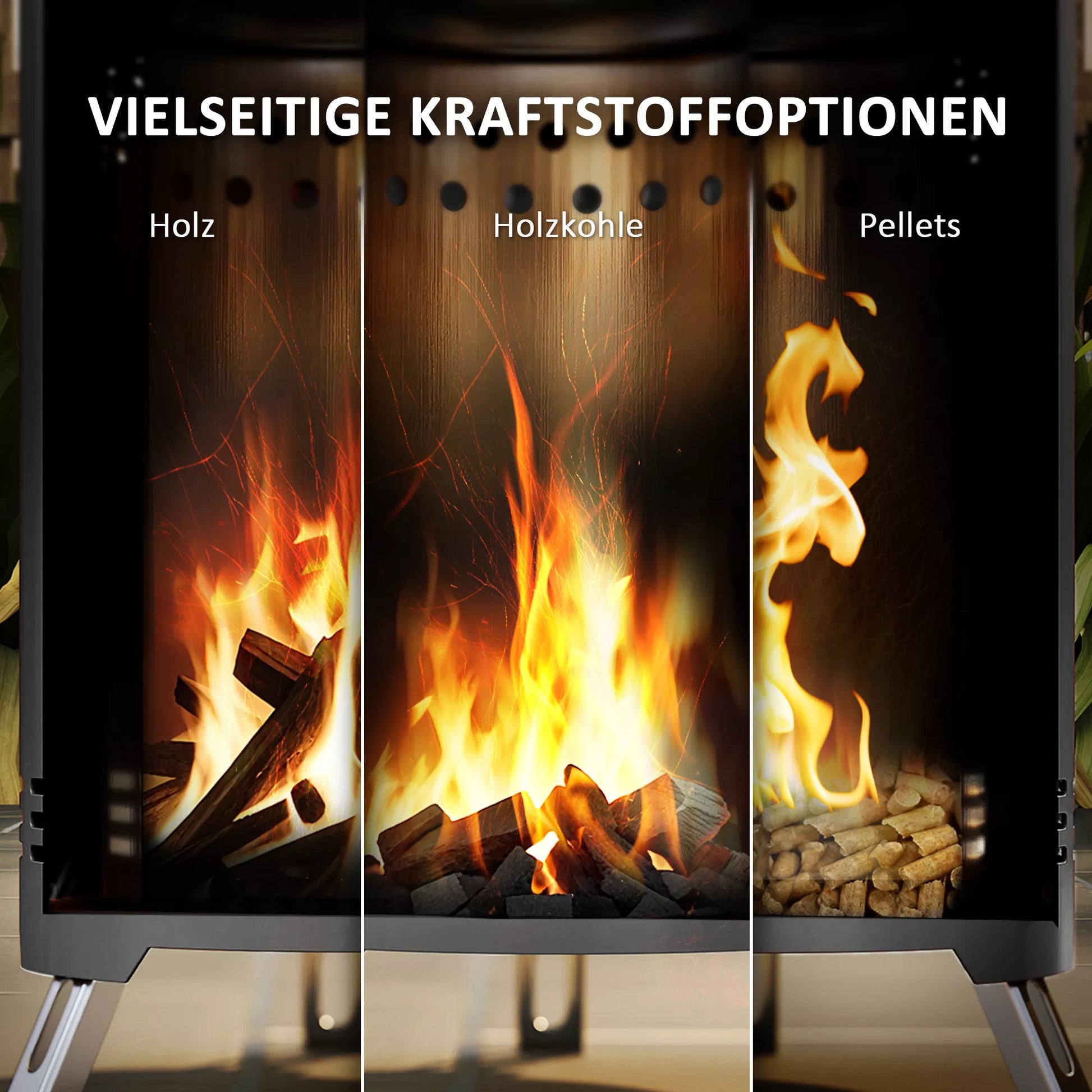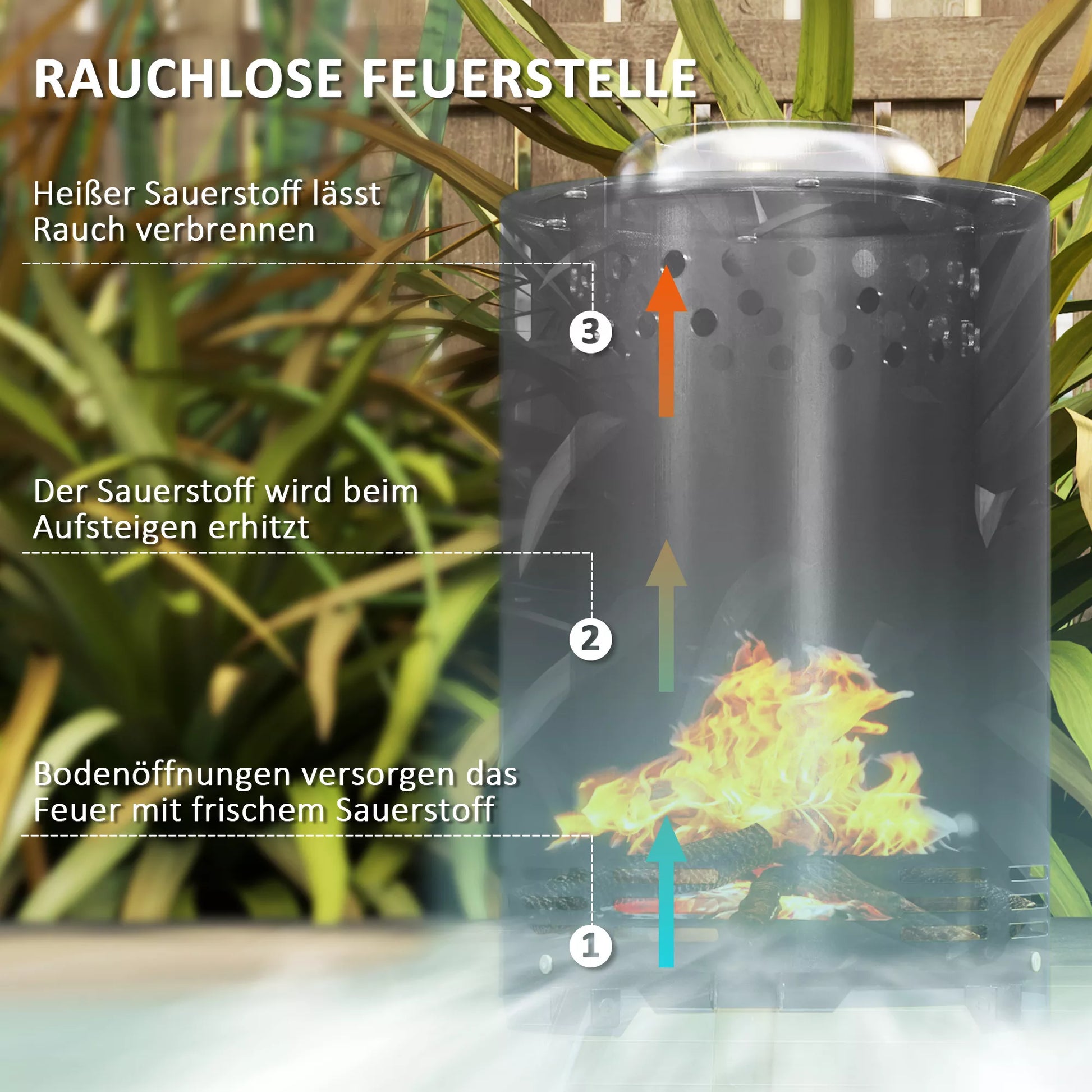Atraskite elegantišką ir praktišką modernaus dizaino laužavietę sodui. Ši milteliniu būdu dengto nerūdijančio plieno laužavietė pasižymi ne tik tvirtumu ir atsparumu aukštai temperatūrai, bet ir patraukliu cilindro dizainu. Ši novatoriška, be dūmų veikianti antrinio degimo sistema leidžia efektyviai ir intensyviai degti degant deguonies tiekimui iš apačios ir kanalams tarp sienelių, todėl kuras visiškai sudega iki pelenų. Patirkite šilumą visiškai nauju būdu!