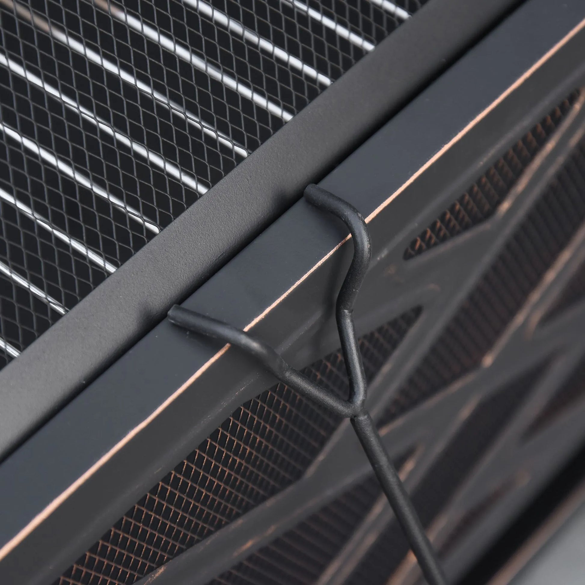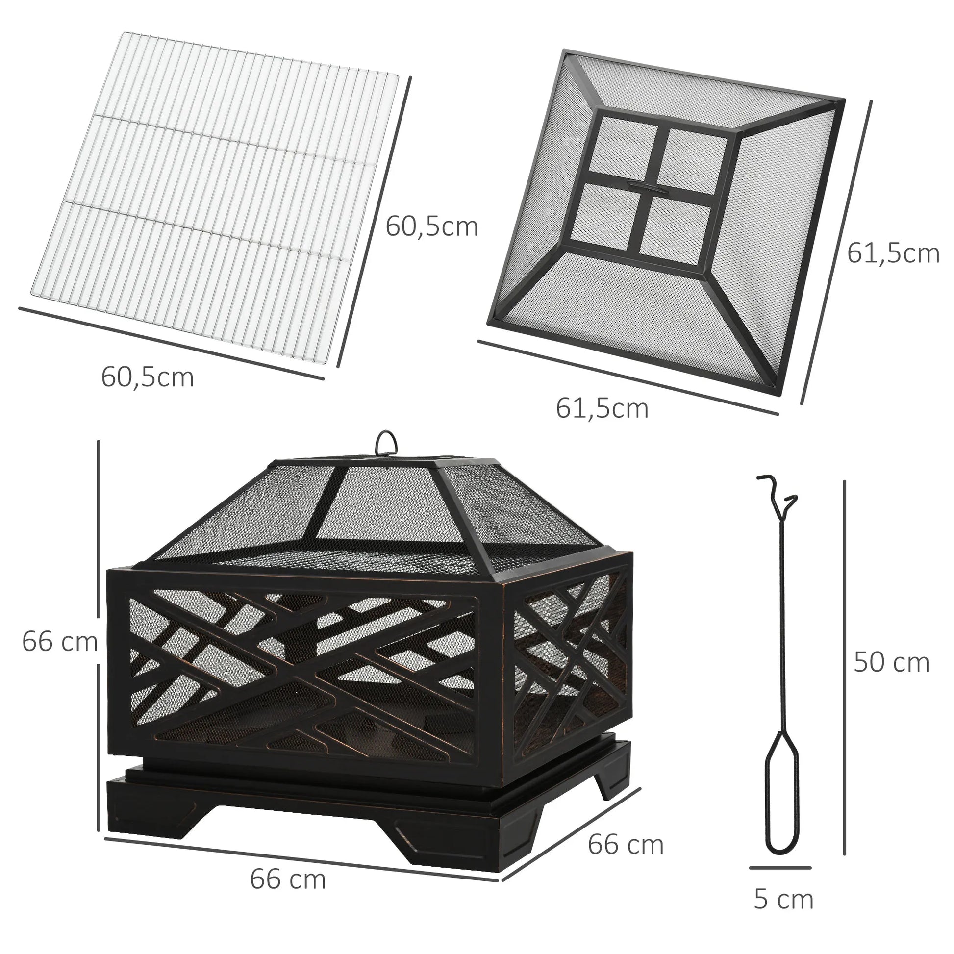 Lauko židinys su kibirkščių gaudykle, kepsnine, pakūrykle, kvadratinis, plieninis korpusas, juodas, 66 x 66 cm