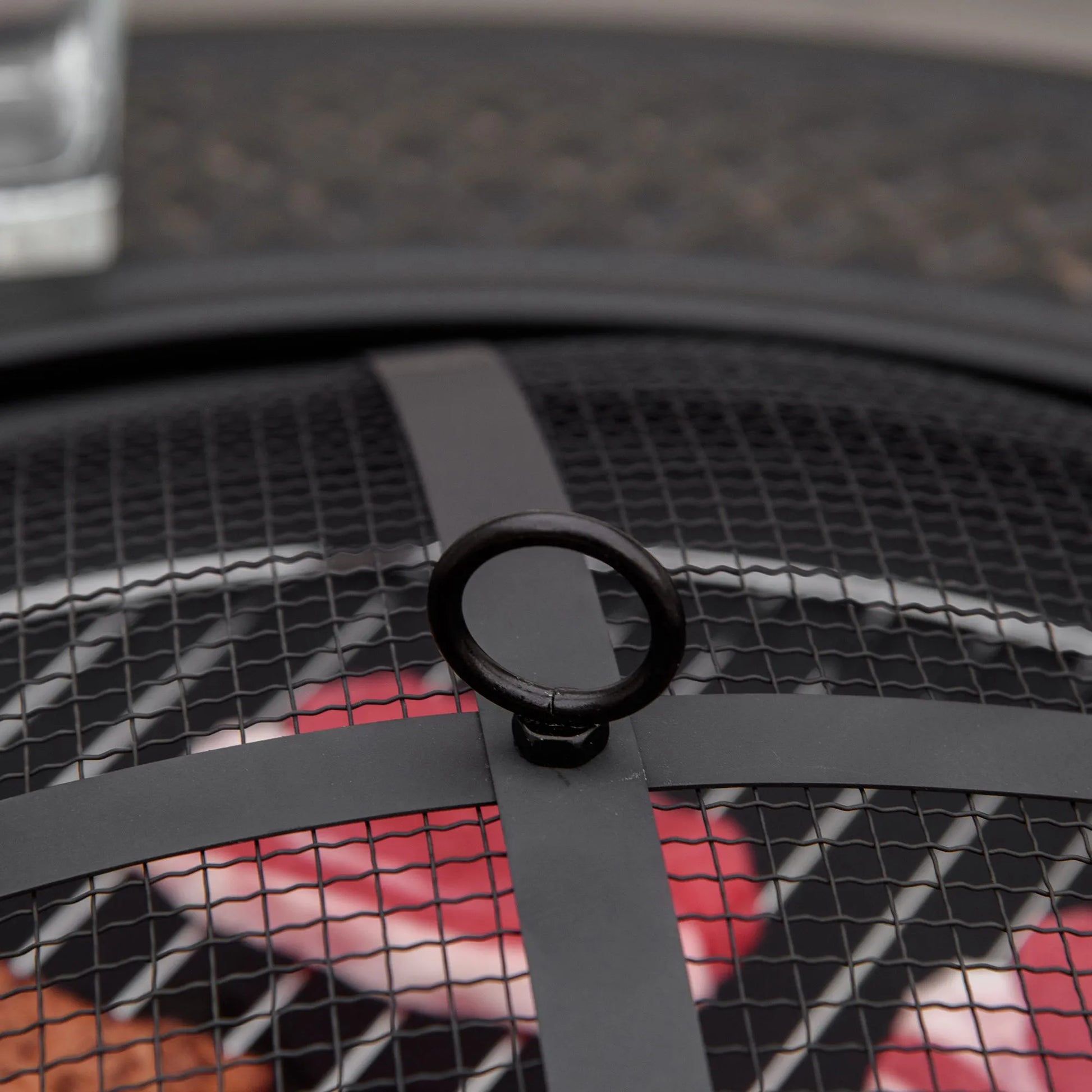 Ugnies dubuo su pakeltuvu, kibirkščių gaudyklė, ugnies krepšys, apvalus laužavietės stalas, sodo, stovyklavimo, BBQ, plieninis, juodas, 81 x 81 x 50 cm