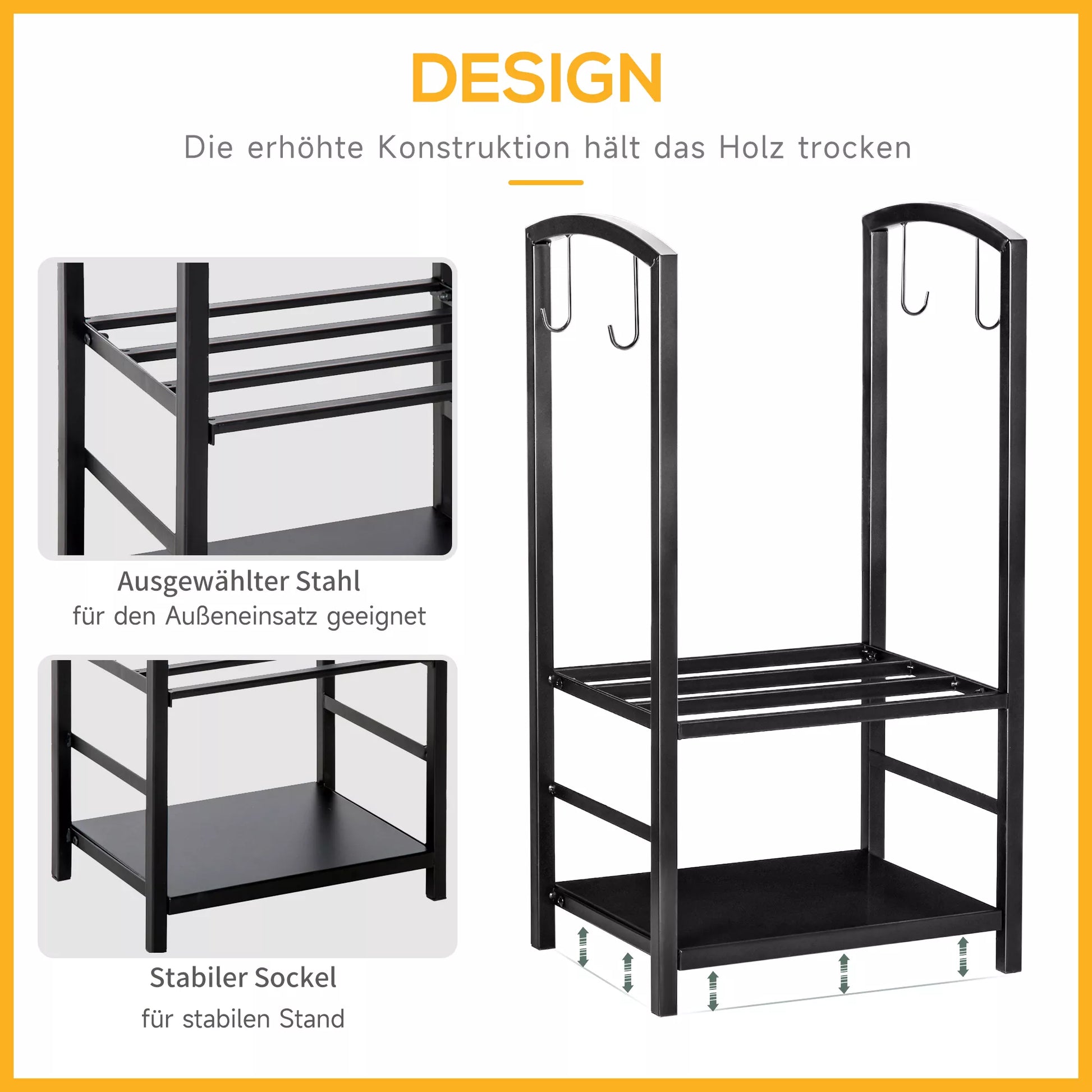 Malkų laikiklis židiniui, 2 aukštų, su židinio priedų vieta, plienas, juodas, iki 100 kg, 40 x 30 x 74,5 cm