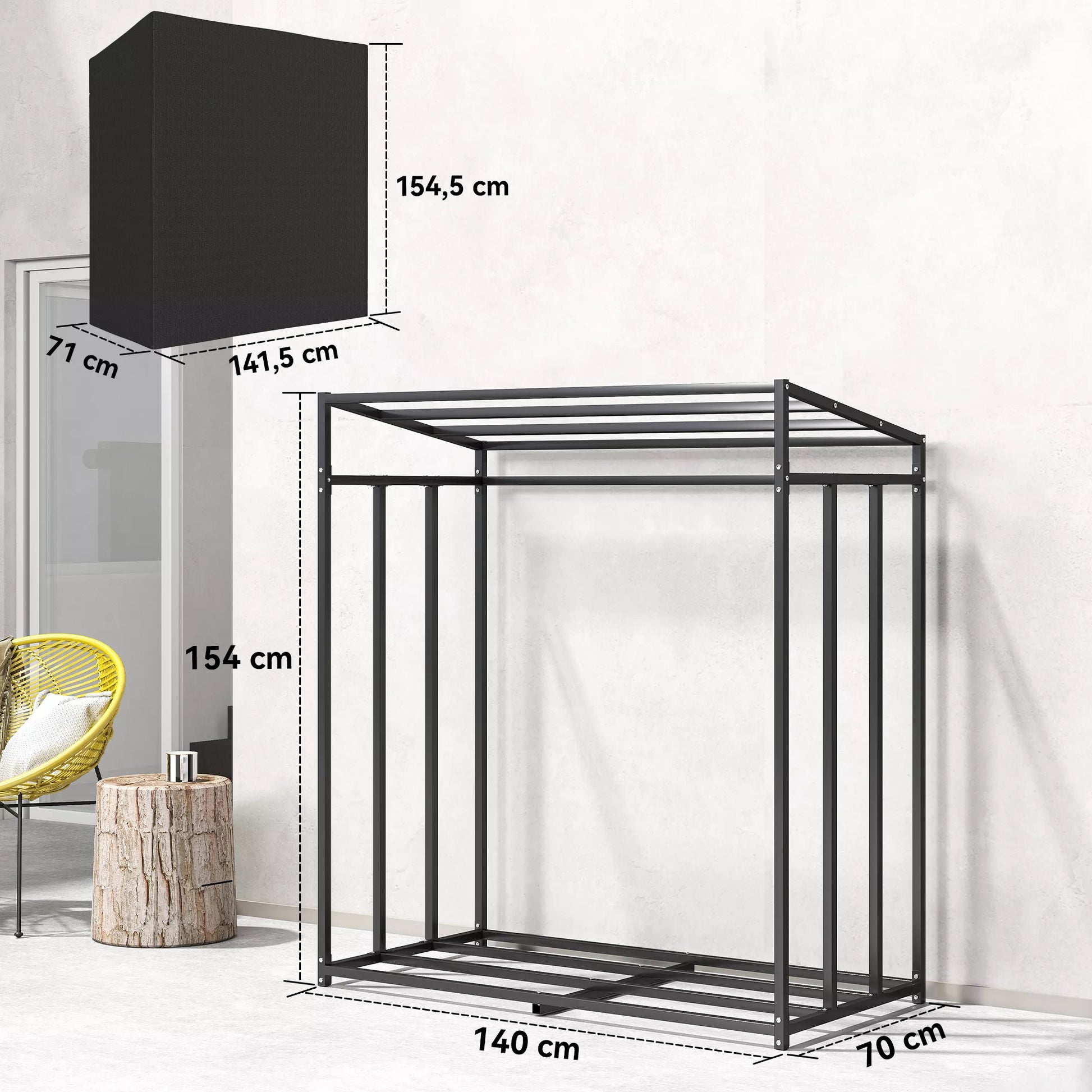 Malkinė, stovas malkoms iš plieno, su medžiaginiu uždangalu, 300 kg apkrova, 140 x 70 x 154 cm, juoda