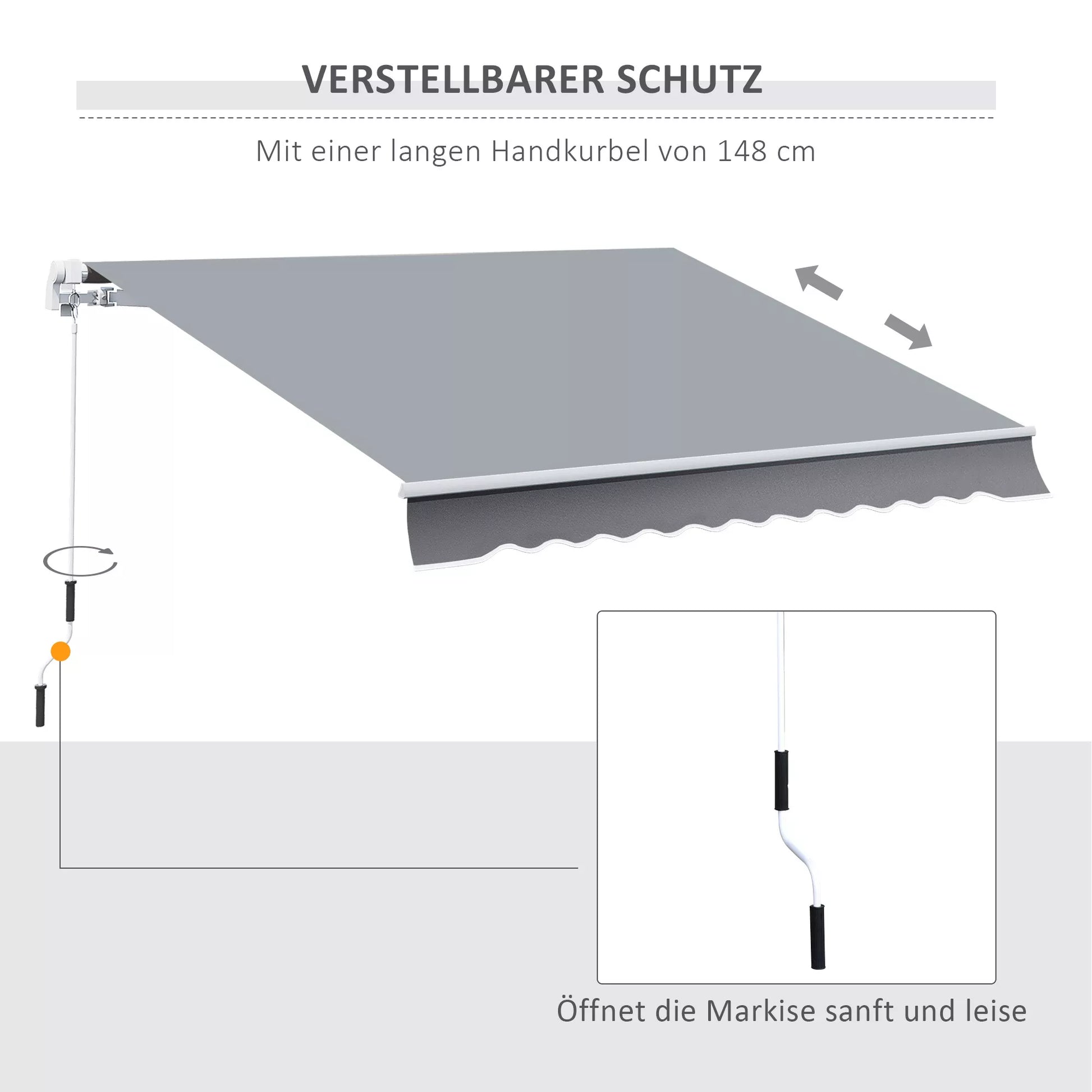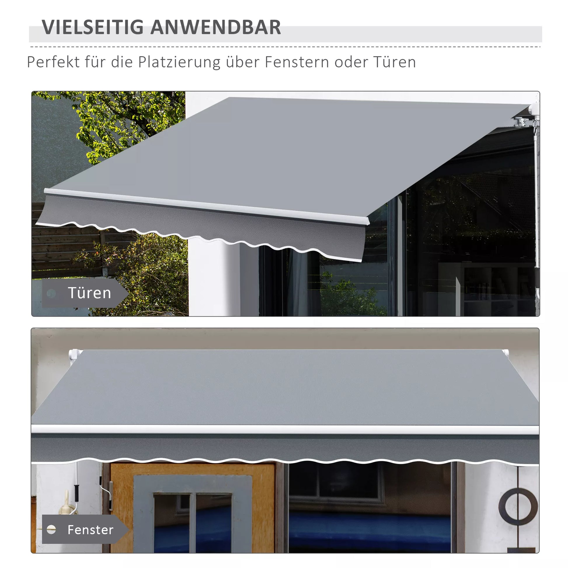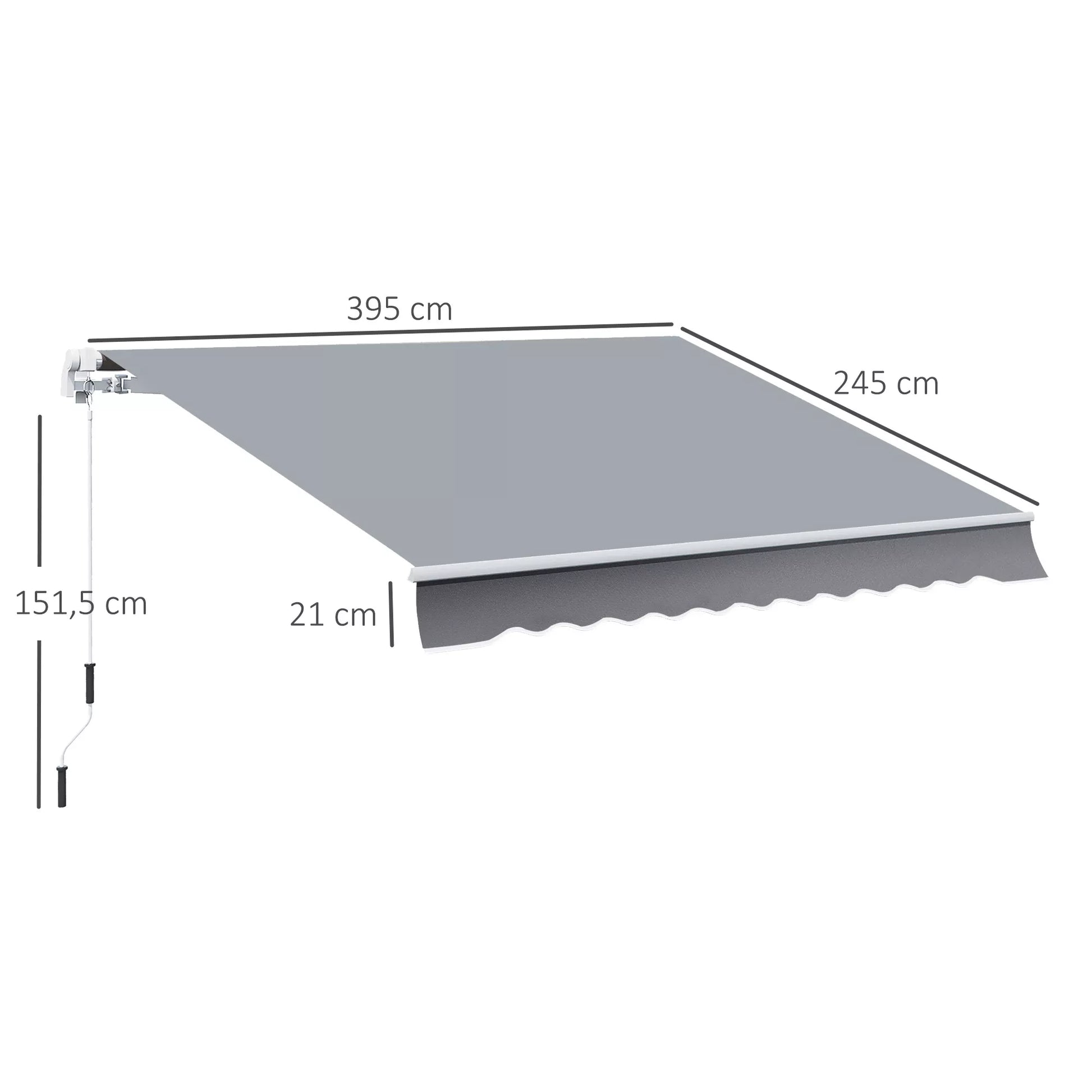 Markizė, 3,95 x 2,45 m, Apsauga nuo saulės, įtraukiama, su rankine alkūne, metalinis rėmas, poliesteris, pilka/balta