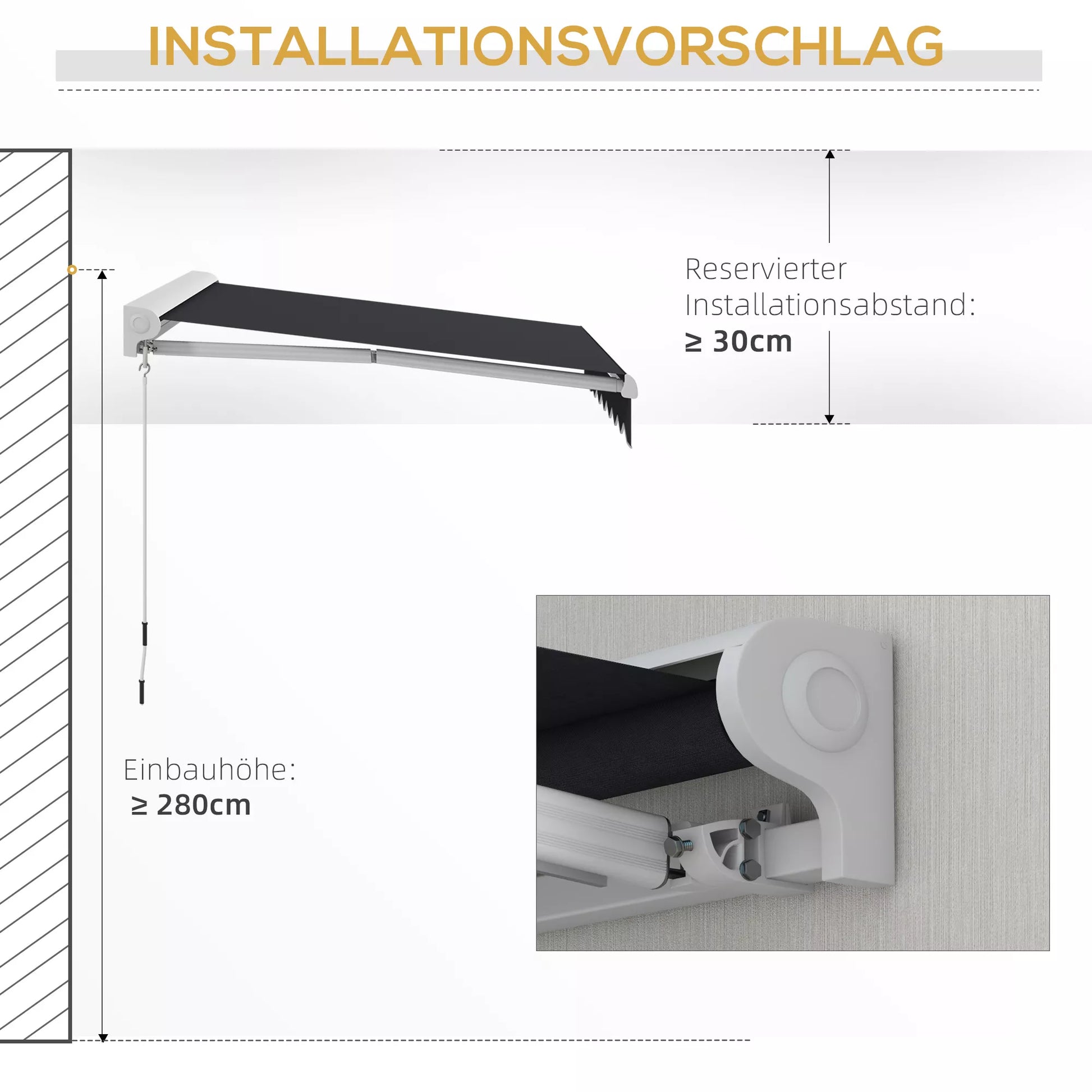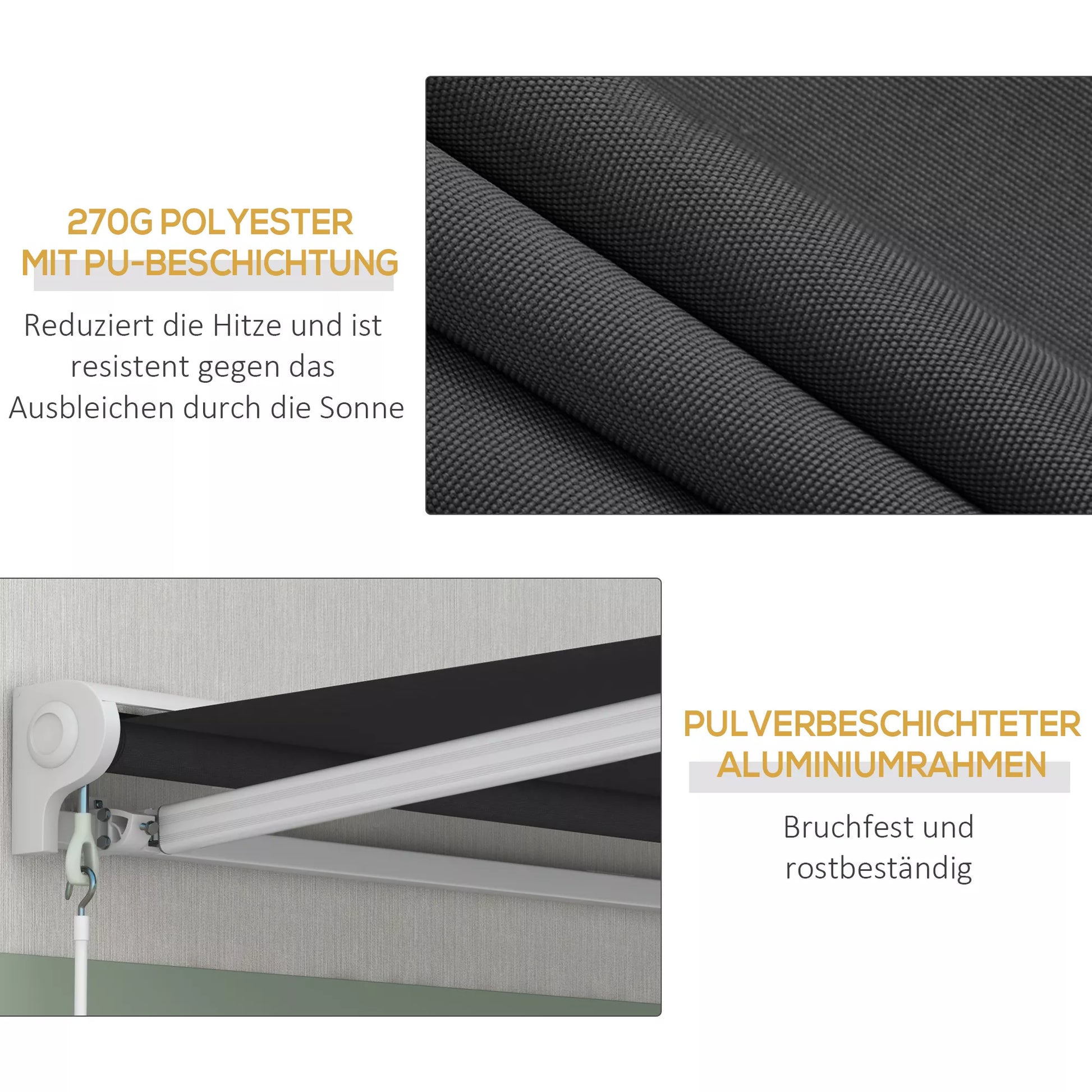 Stilingai ir be vargo apsaugokite savo lauko erdvę su šia ištraukiama markize iš . Tvirtas aliuminio rėmas garantuoja bekompromisį stabilumą ir patikimumą bet kokiomis oro sąlygomis. Tvirtas stogo tentas apsaugo nuo tiesioginių saulės spindulių ir lengvo lietaus. Dėl pridedamo montavimo komplekto, montavimas ant betoninių sienų, plytų mūro, medinių tvorų, durų, balkono terasų ar langų yra itin paprastas. Mėgaukitės savo lauko erdve visu gražumu!
