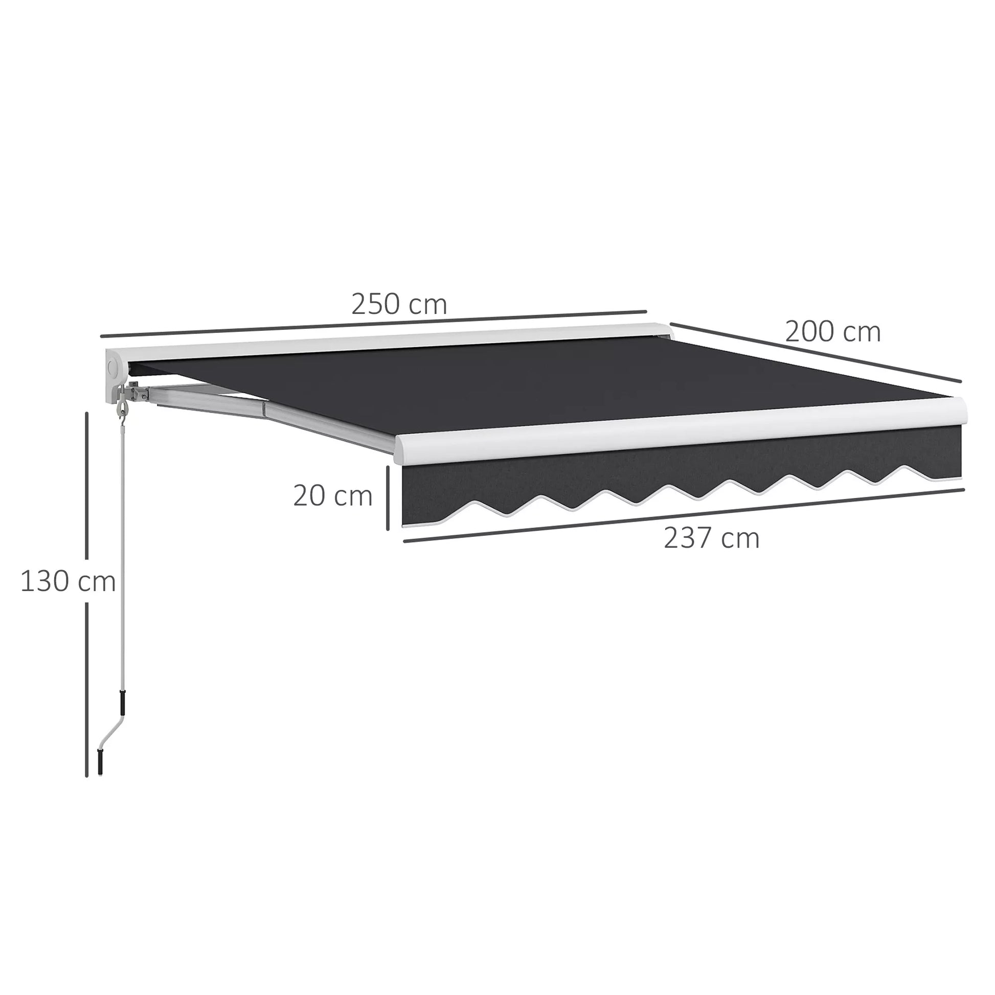 Markizė, elektrinė/rankinė ištraukiama, pusiau kasetinė, su nuotolinio valdymo pulteliu, aliuminio rėmas, 2,5 x 2 m, pilka