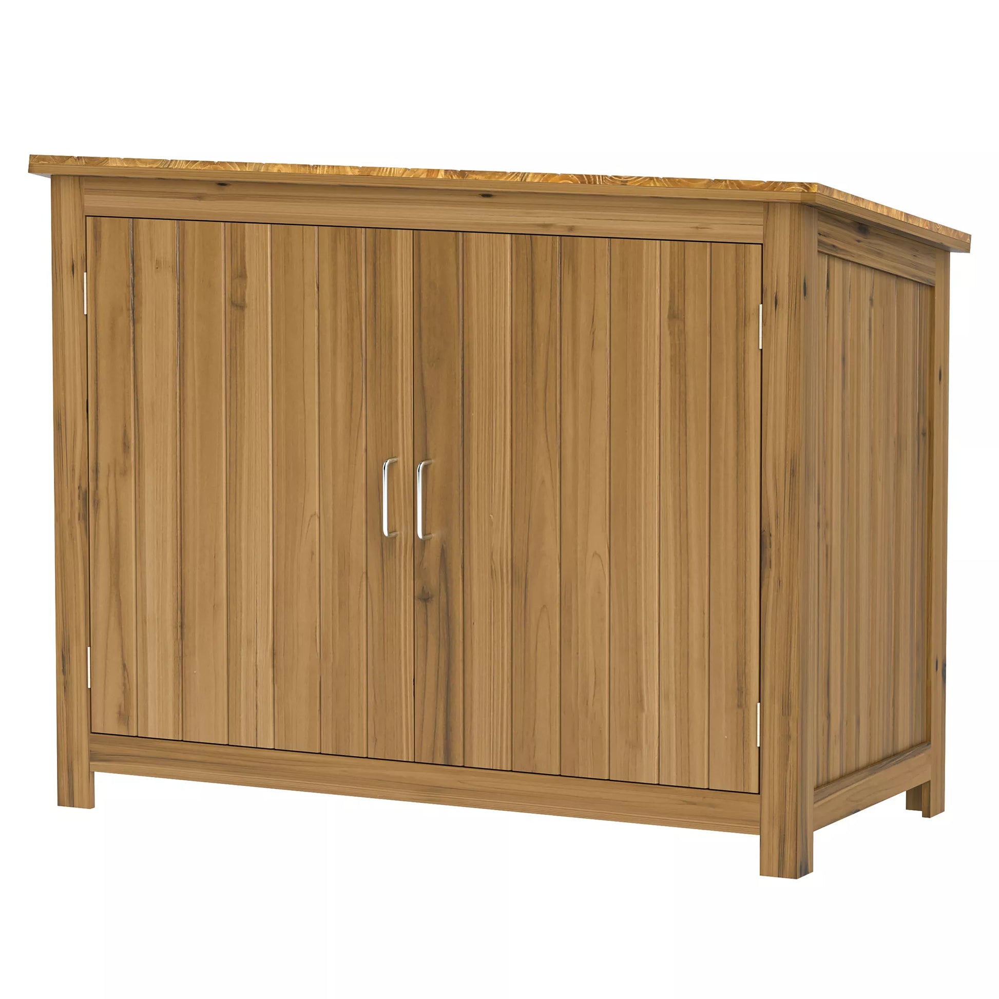 - ✔ Dvi lauko medinės sodo spintelės priekinės durys leidžia lengvai pasiekti daiktus, jos aprūpintos metalinėmis rankenėlėmis