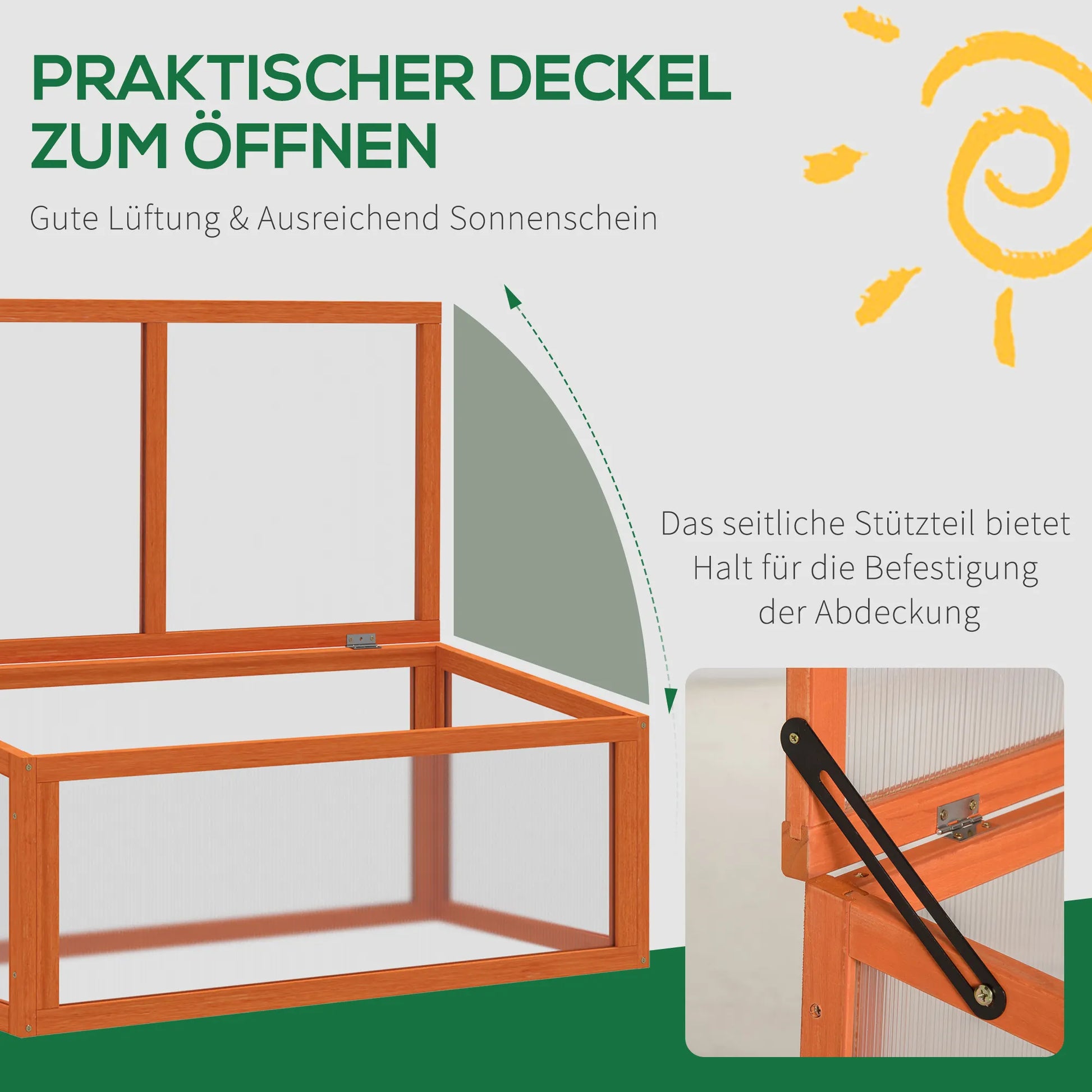 Medinis ir polikarbonato šiltnamis sodui 90 x 46 x 40 cm, atsparus oro sąlygoms, su dangčiu, daržo lysvės daigyklai, oranžinis