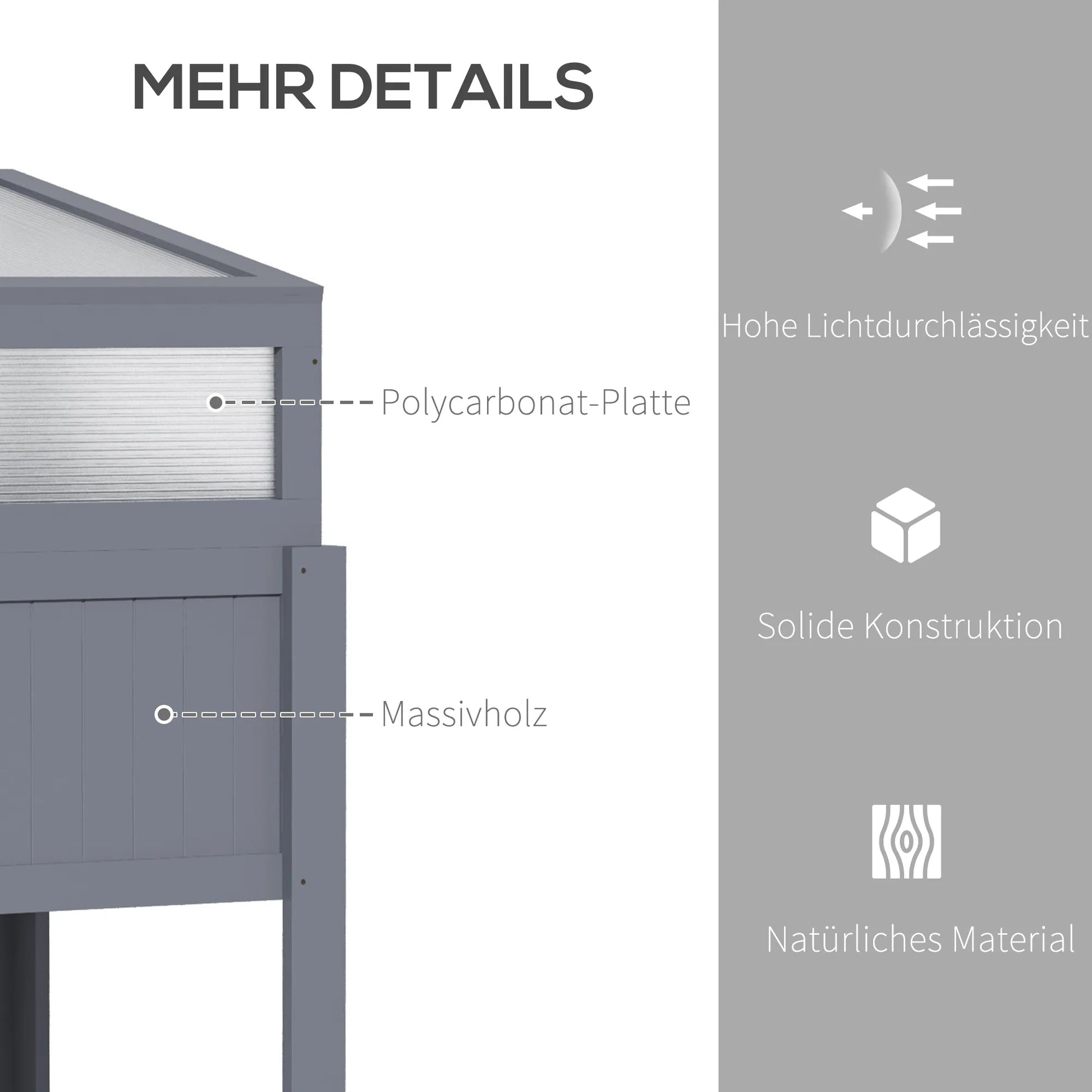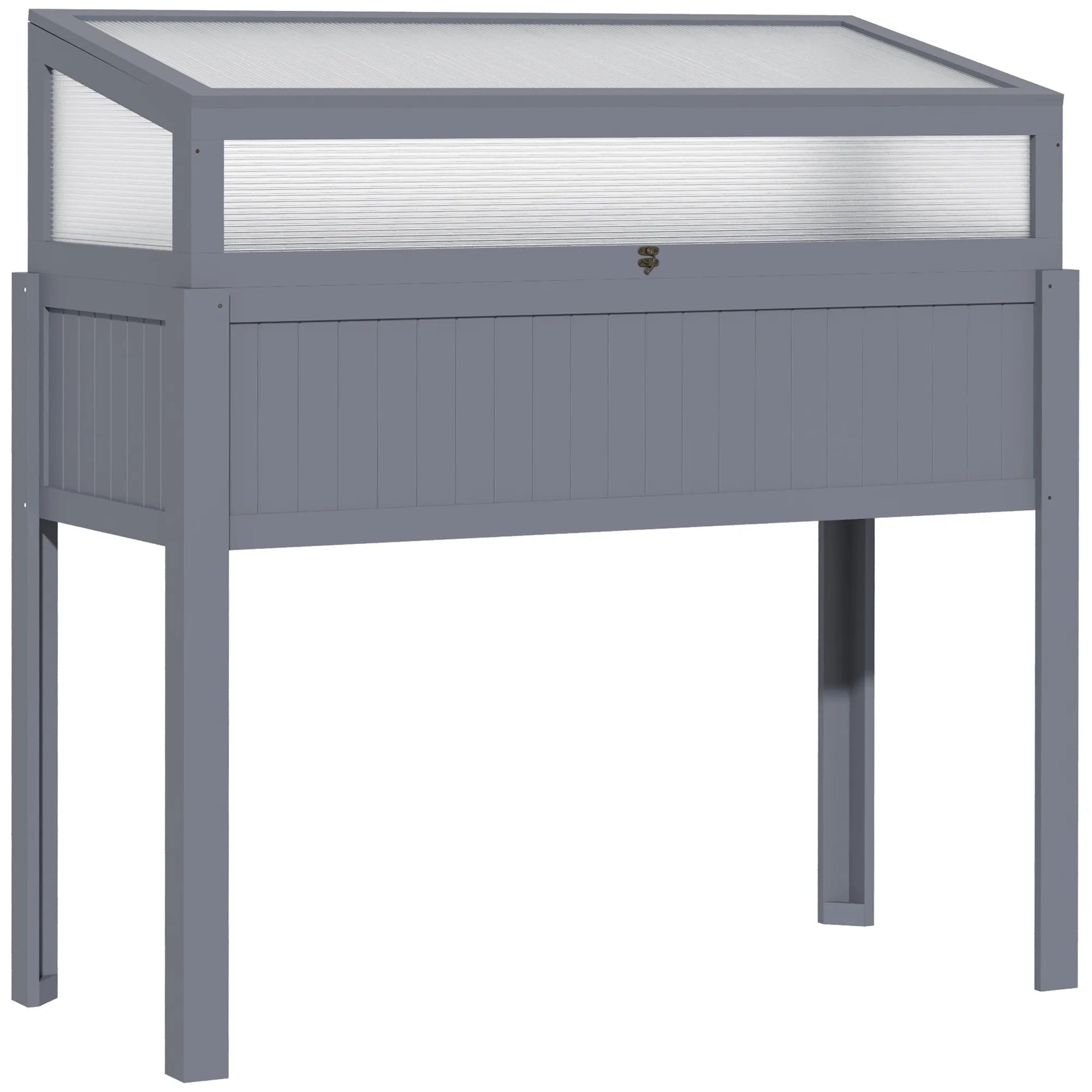 Aukštas medinis lysvynas su šiltnamiu 2-in1 Šiltnamis Pomidorų lysvynas Daržovių lysvynas Žolelių lysvynas Sodininkystės dėžė sodui, balkonui ir terasai Polikarbonatas Pilka 120 x 54 x 112/122 cm