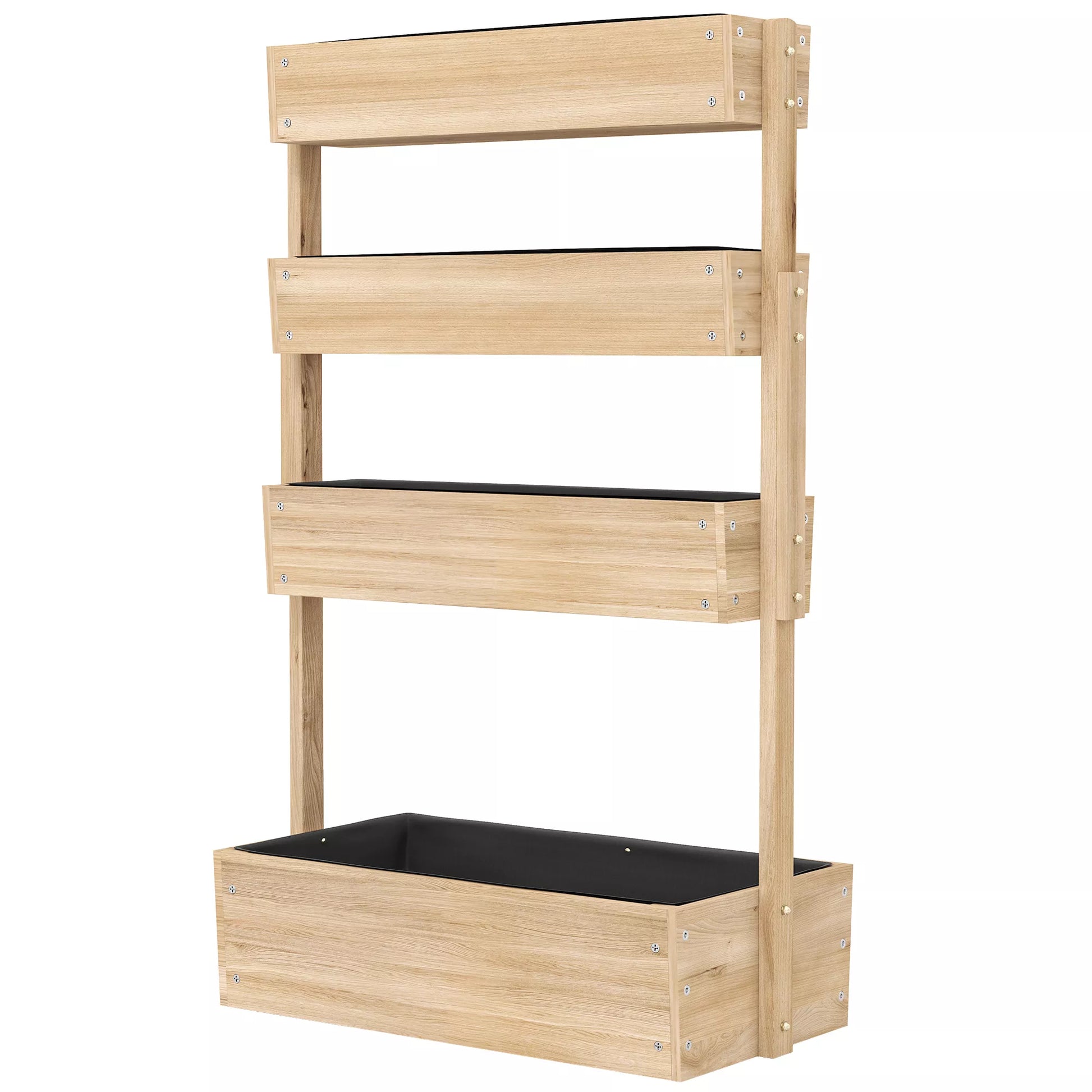 Medinė pakeliamoji lysvė, 4 pakopų sodinimo lysvė su drenažo skylutėmis, šiltnamis sodui 88,5 x 45 x 140 cm natūralios medienos