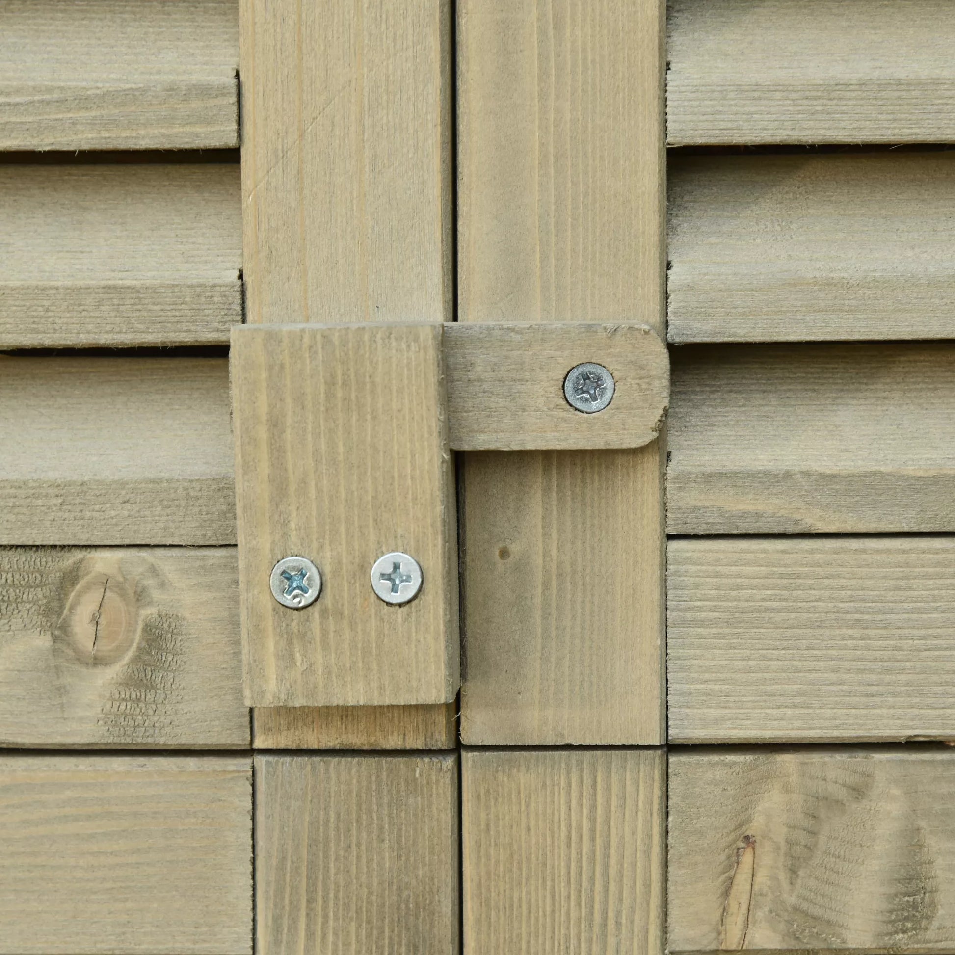 Sukurkite harmoningą tvarką savo sode su šiuo praktišku sodo įrankių nameliu nuo . Namelis turi lentynas ir siūlo daug vietos įvairiems įrankiams bei priemonėms. Grėbliai ir kastuvai taip pat ras pakankamai vietos ir bus saugiai apsaugoti nuo lietaus. Dažyto eglės medienos korpusas yra tvirtas ir atsparus oro sąlygoms. Dvi užrakinamos durys apsaugo jūsų sodo įrankius, o lamelių tipo durys užtikrina optimalią patalpos ventiliaciją.