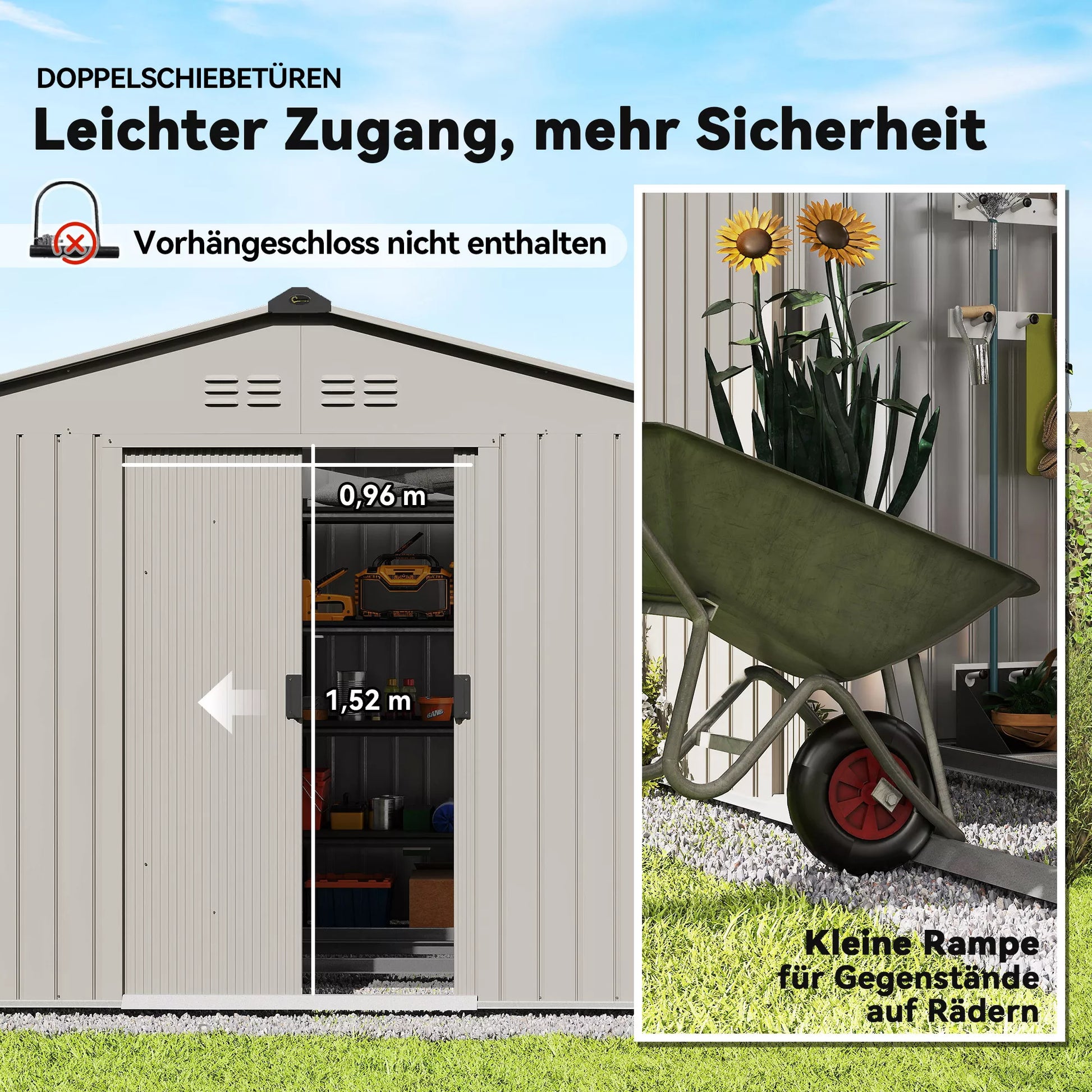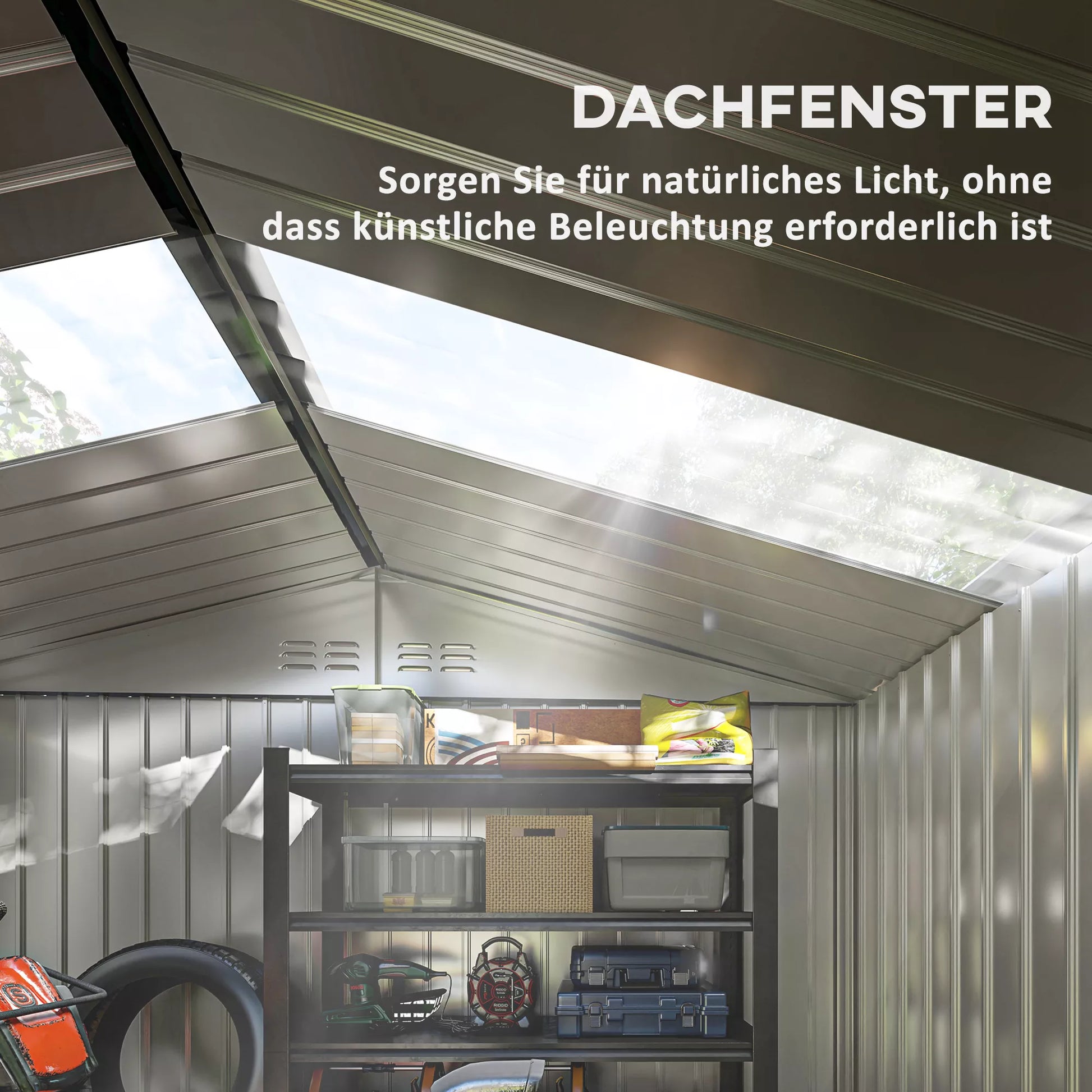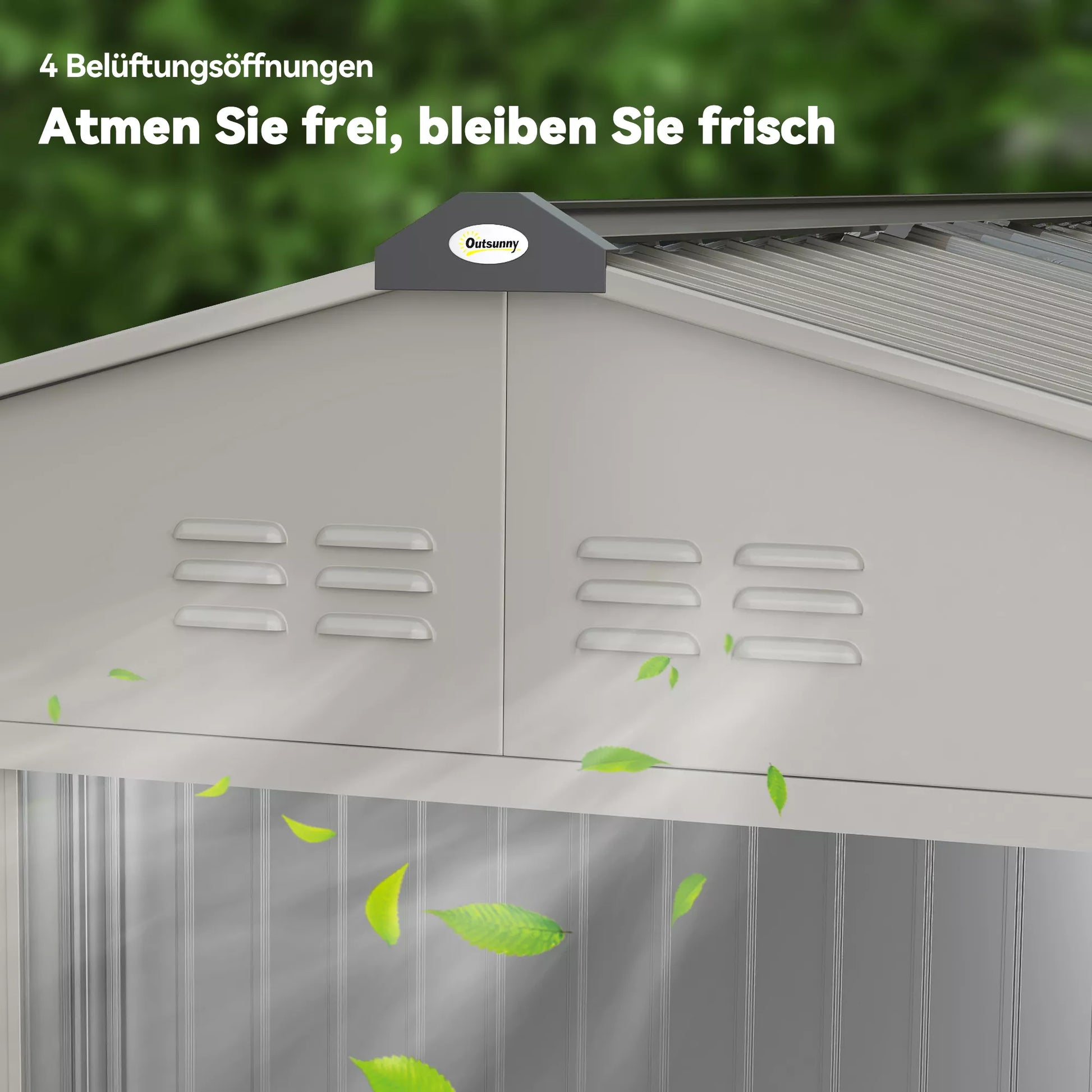 Metalinis sodo namelis įrankiams su stumdomomis durimis ir ventiliacijos langeliais, 277 x 195 x 192 cm, Pilkas