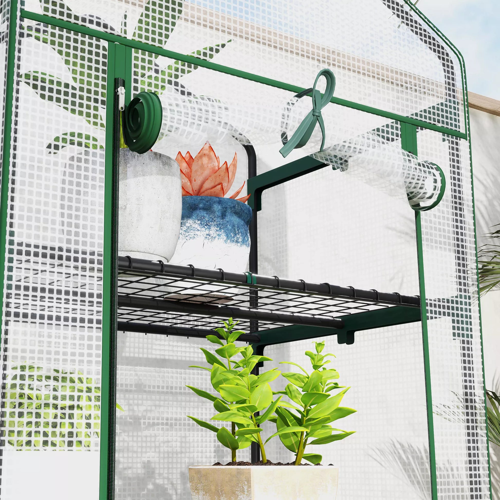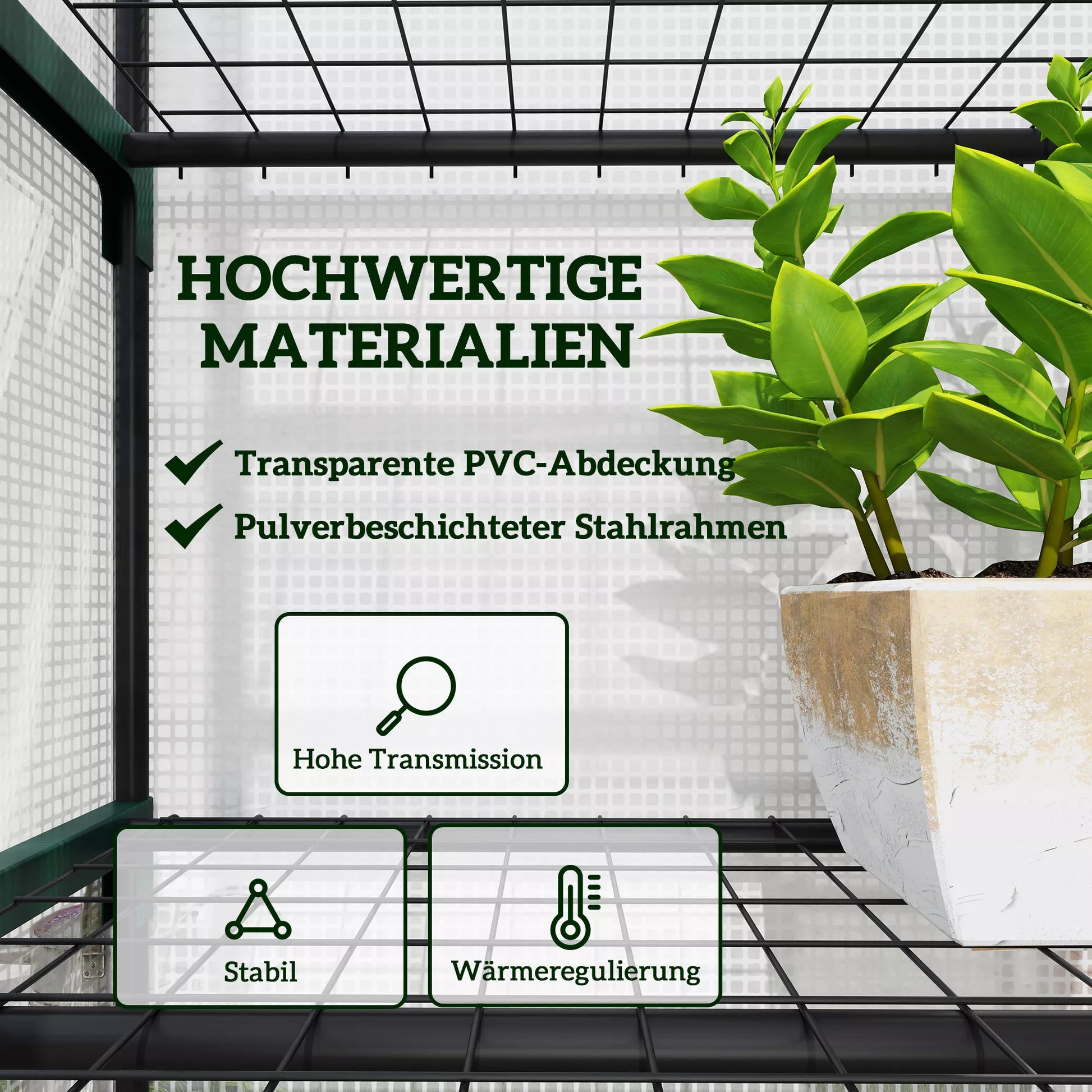 - ✔ Augalai mėgaujasi saulės šviesa dėl skaidrios plastikinės šiltnamio dangos