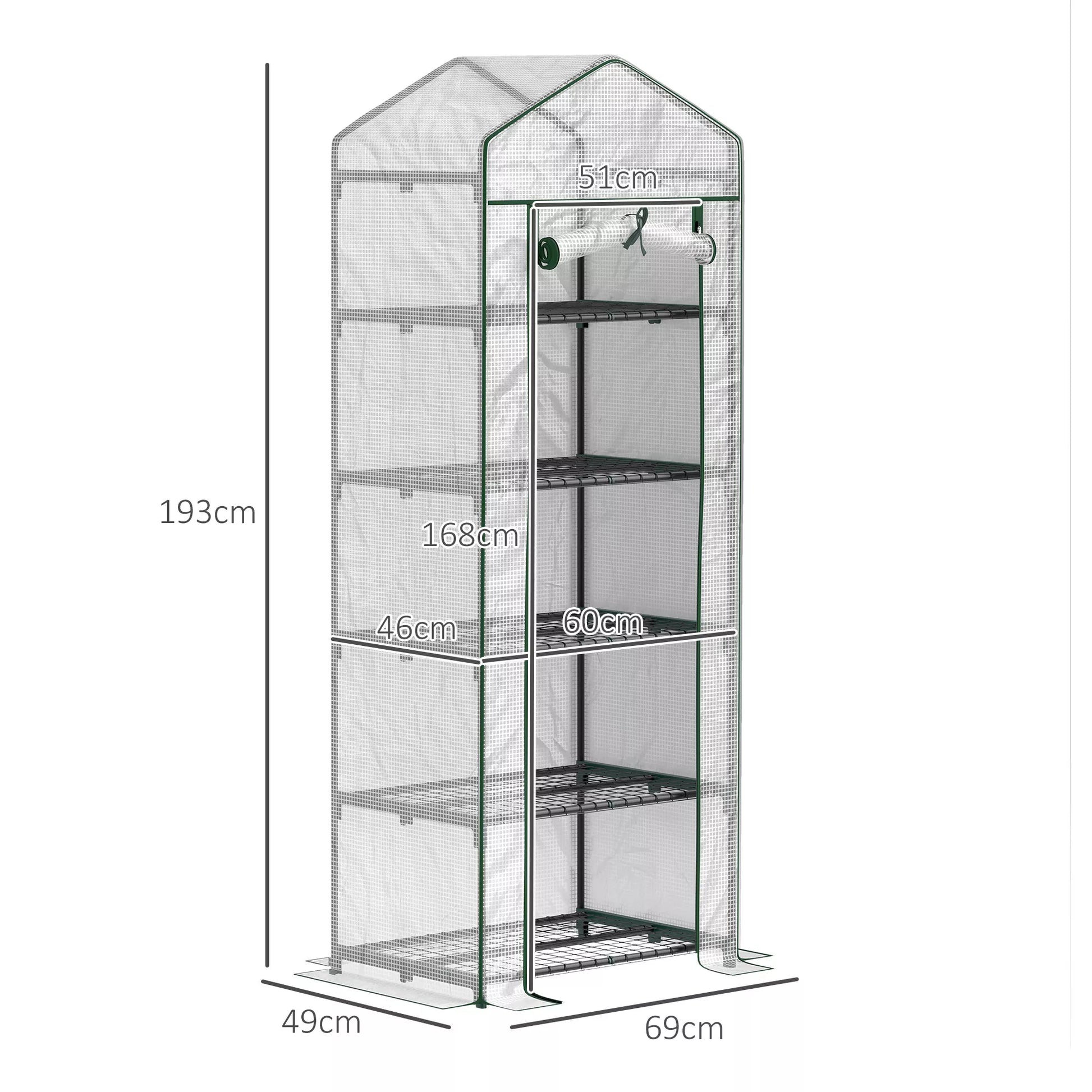 Mini šiltnamis gėlėms ar daržovėms, plienas, plastikas, 69P x 49A x 193A cm, baltas