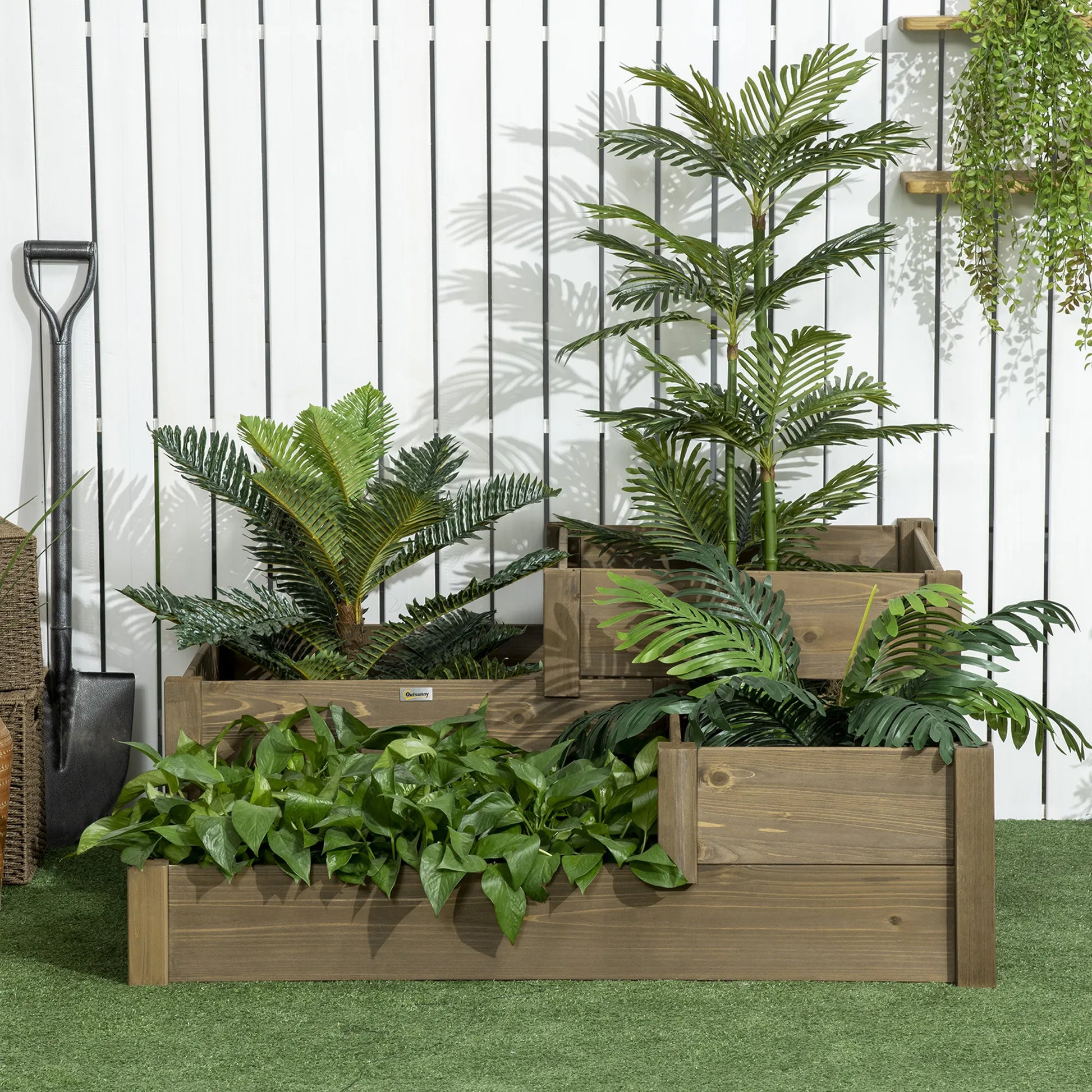 Paaukštinta lysvė, 4 sodinimo loveliai ant 3 pakopų, atsparus oro sąlygoms, medžio masyvas, 122 cm x 122 cm x 51 cm, natūralus