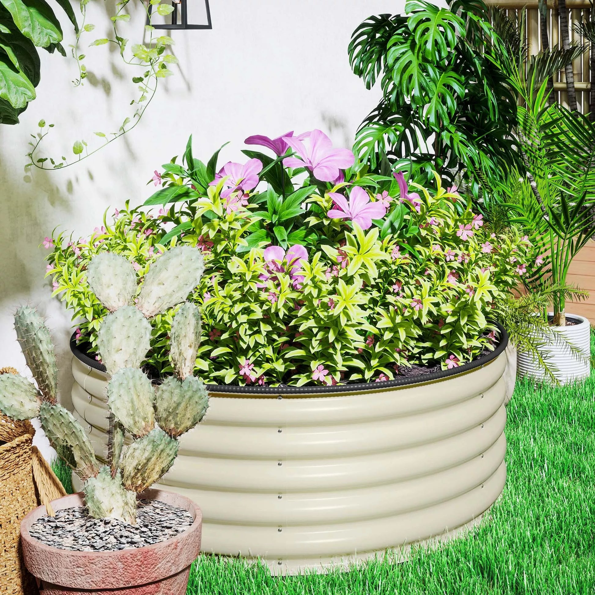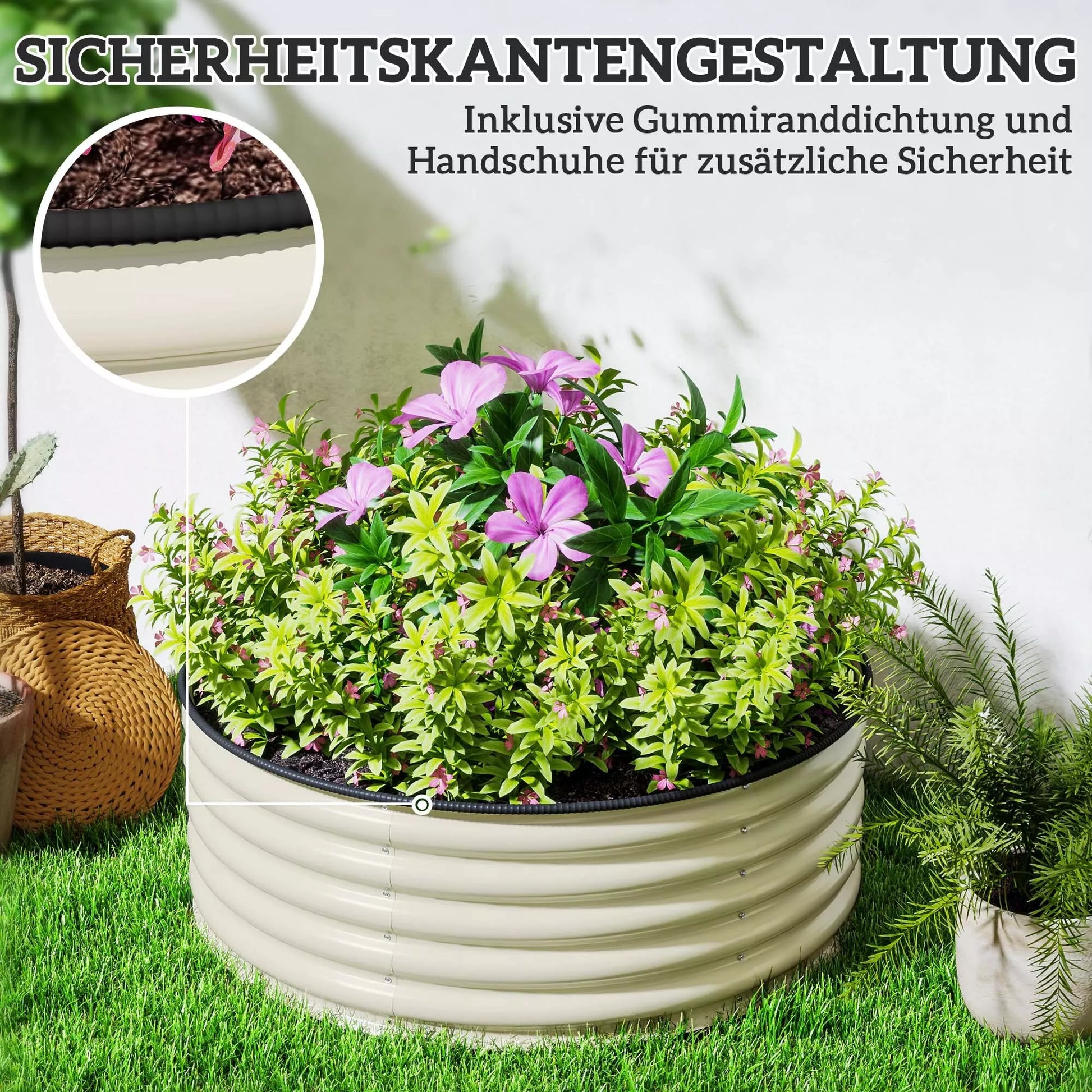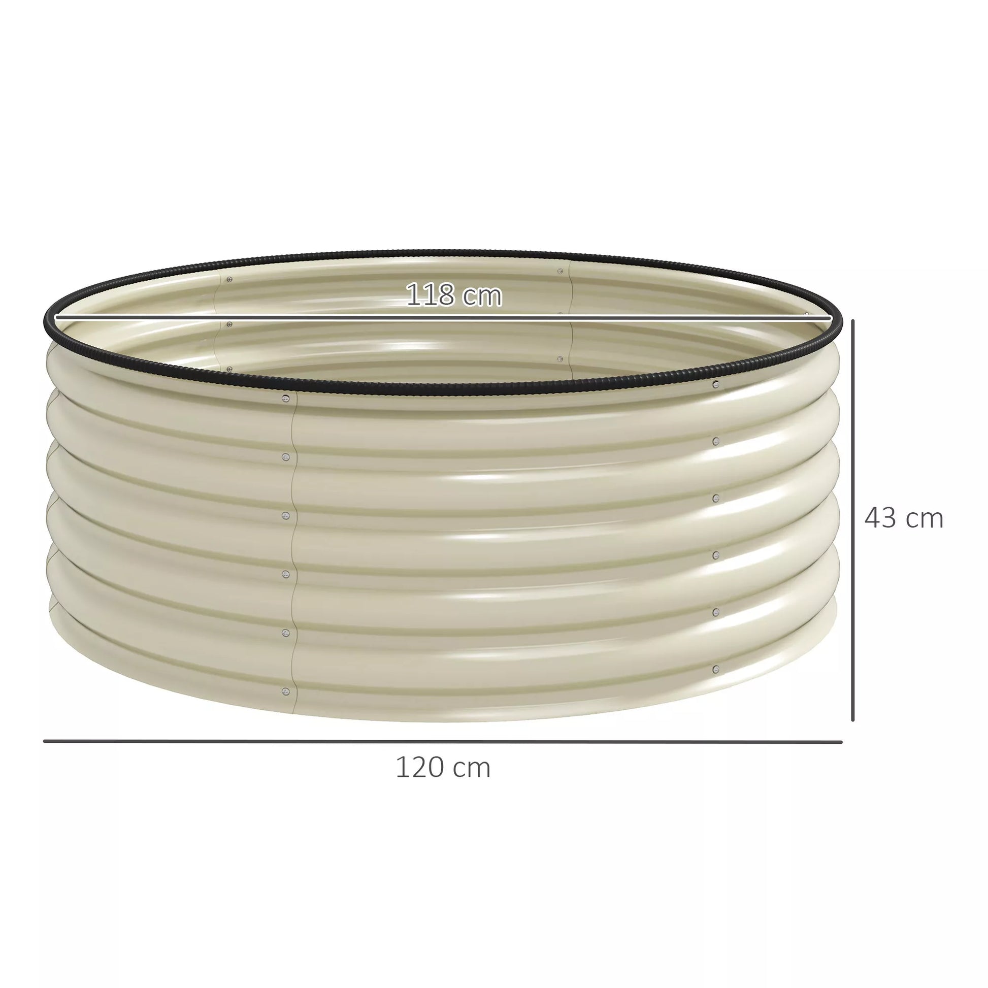 Paaukštinta lysvė, cinkuotas sodinimo vazonas su apsauginiu kraštu, sodinimo dėžė atviru dugnu, 120 x 120 x 43 cm, kremas