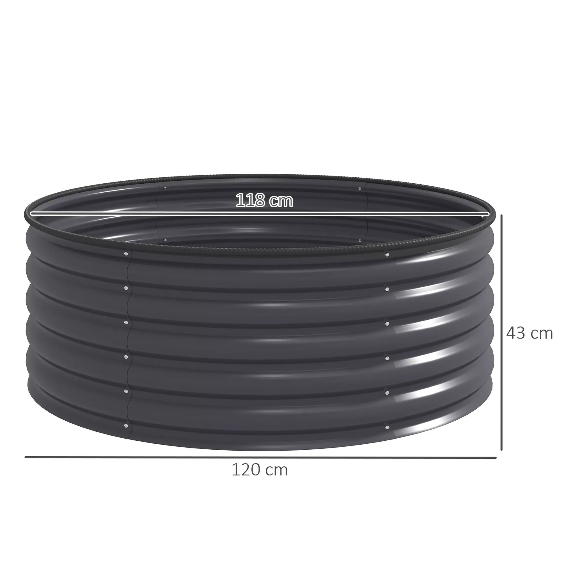 Pakeltas lysvės, Cinkuotas augalų vazonas su apsauginiu kraštu, Sodinimo dėžė atviru dugnu, 120 x 120 x 43 cm, Tamsiai pilka