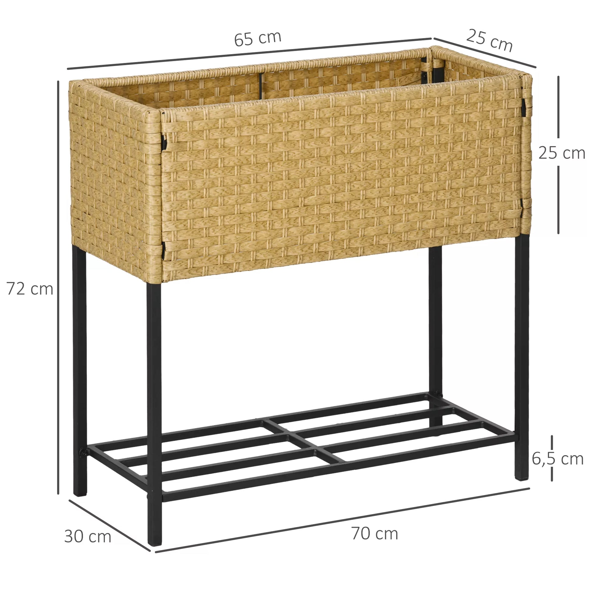 Pakeltas gėlynas, gėlių dėžė, gilus laikymo skyrius, metalinis rėmas/poliratanas, 70 x 30 x 72 cm, smėlio spalvos