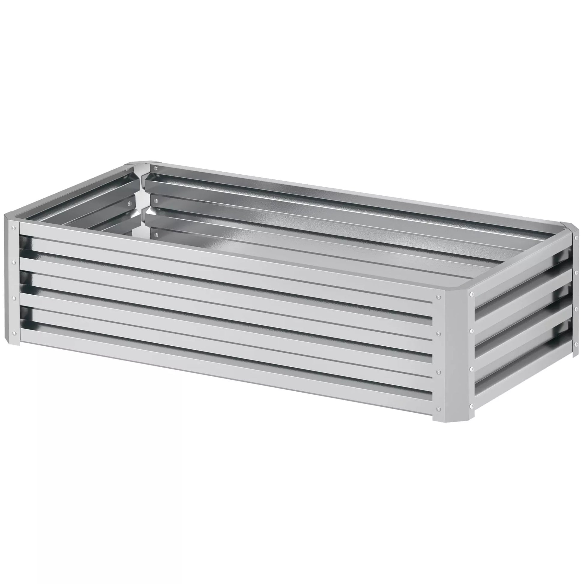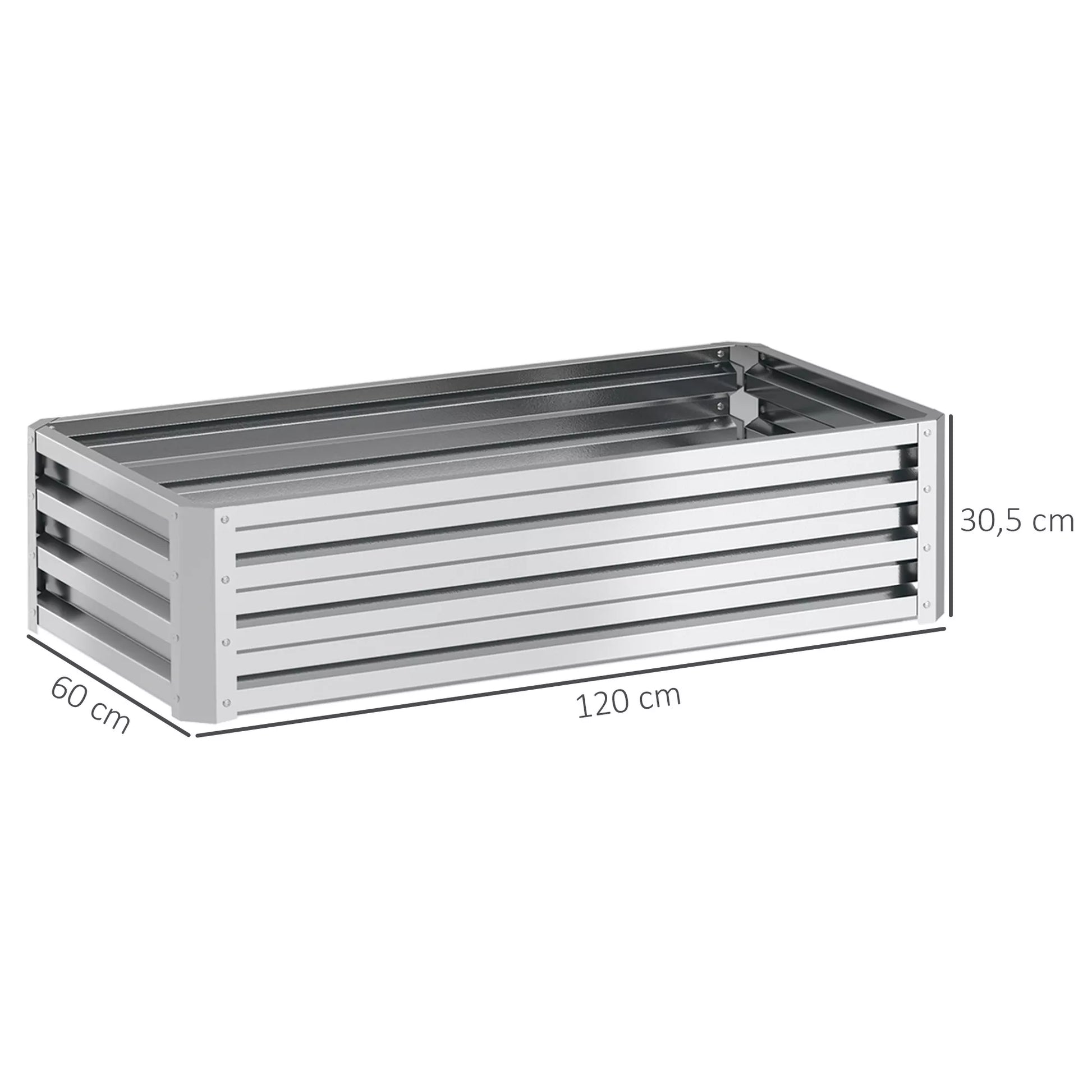 Pakeltas lysvės sodintuvas, atsparus oro sąlygoms, atviras dugnas, cinkuotas plienas, 120 cm x 60 cm x 30,5 cm, sidabrinė