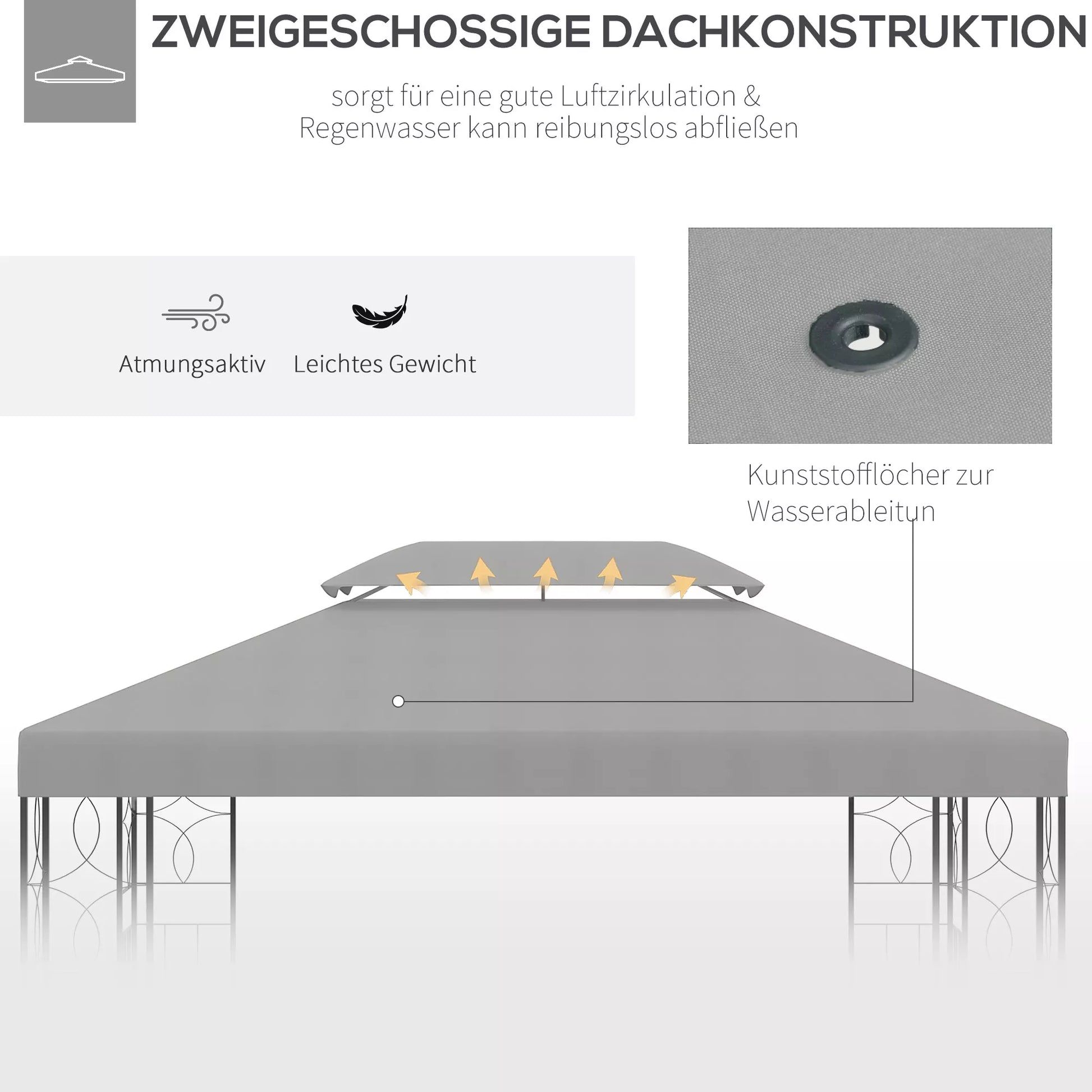 Pakeičiamas stogelis metaliniam paviljonui 3x4m, atsparus vandeniui, paviljonui su dvigubu stogu, pavėsinei, sodo palapinei, vakarėlių palapinei, poliesteris, šviesiai pilkas