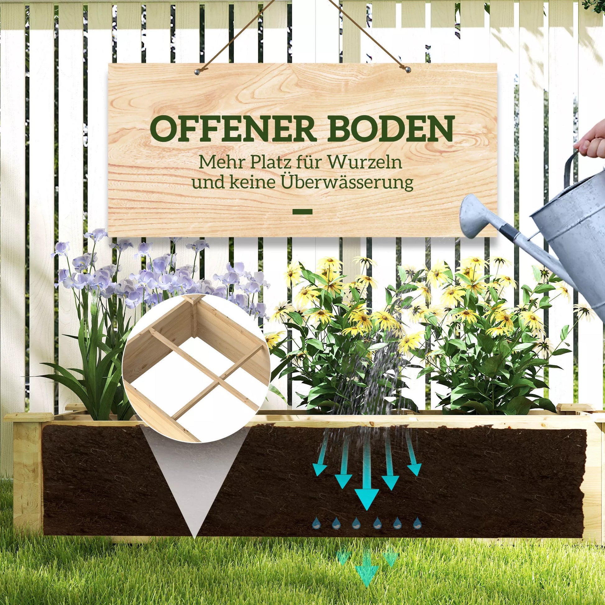 Paaukštinta lysvė, sodinimo dėžė, 2 dalių, atviras dugnas, natūralaus medžio rėmas, paprastas surinkimas, 237 x 60 x 25cm