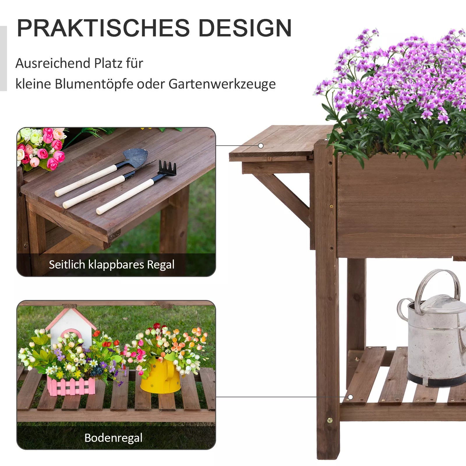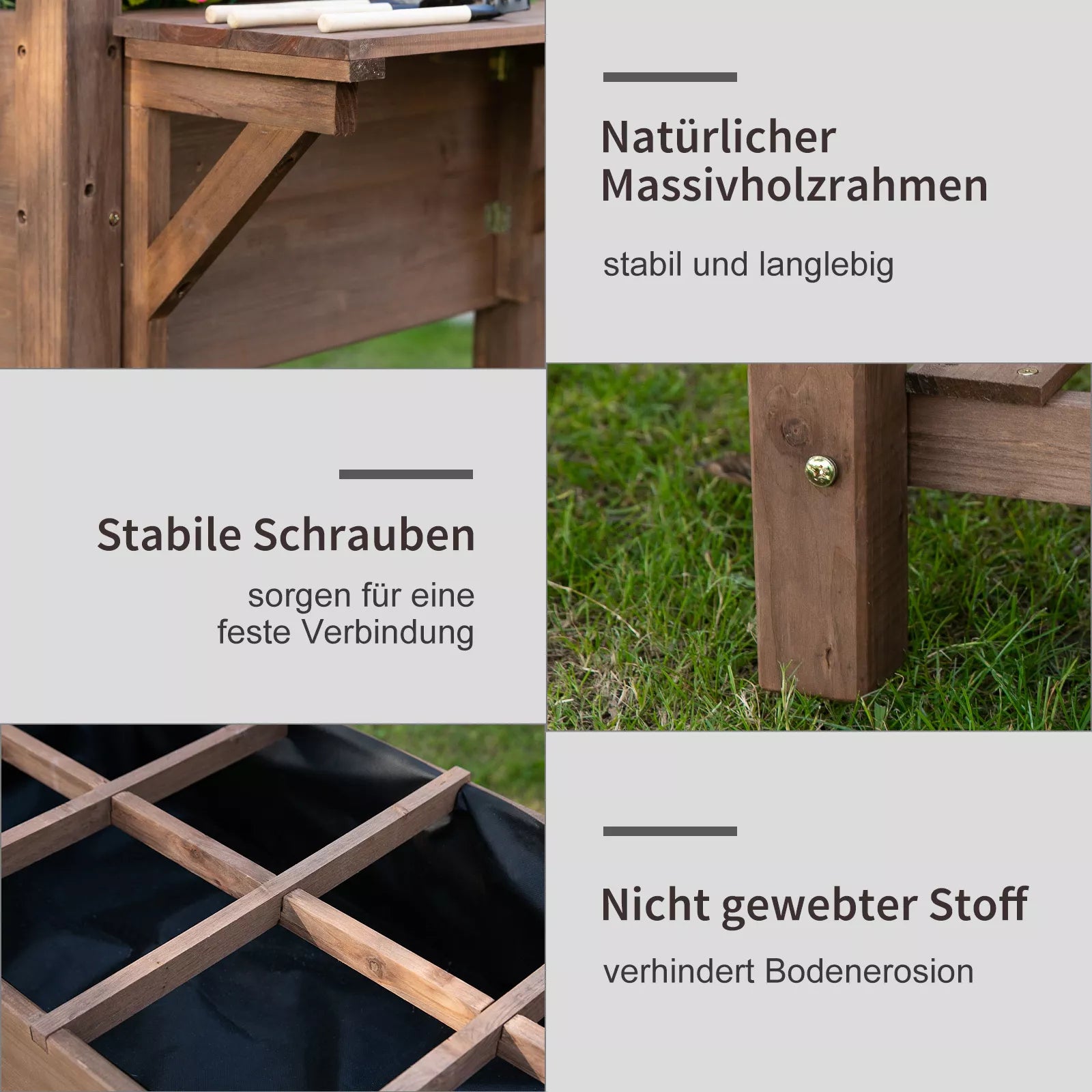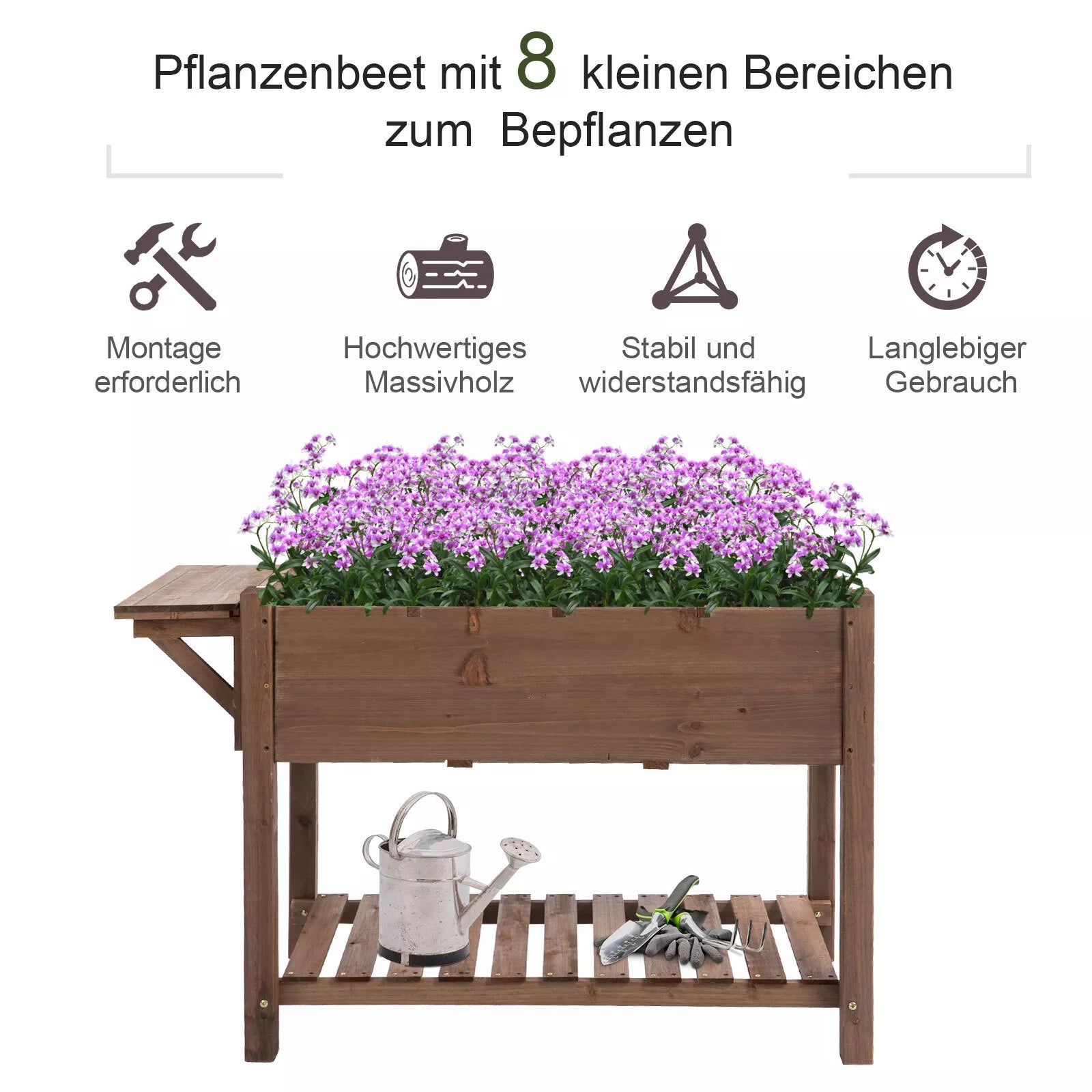 Pakeltas lyselių sodinimo dėžė su 8 atskirtais skyreliais, sulankstoma lentyna, gėlių dėžė, vazonas, prieskoninių augalų lysvė, rudos spalvos, iš masyvmedžio, 123 x 54 x 80 cm