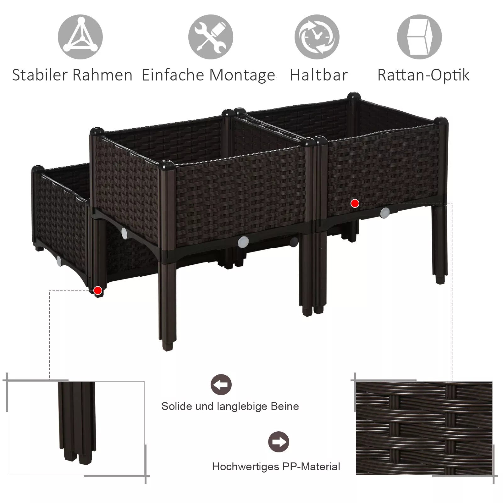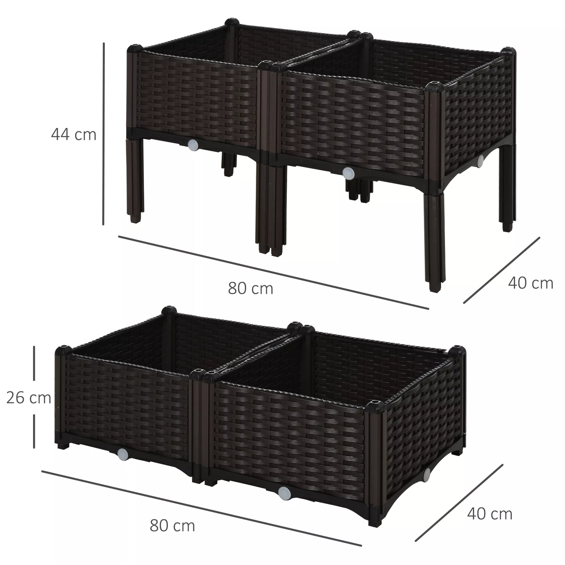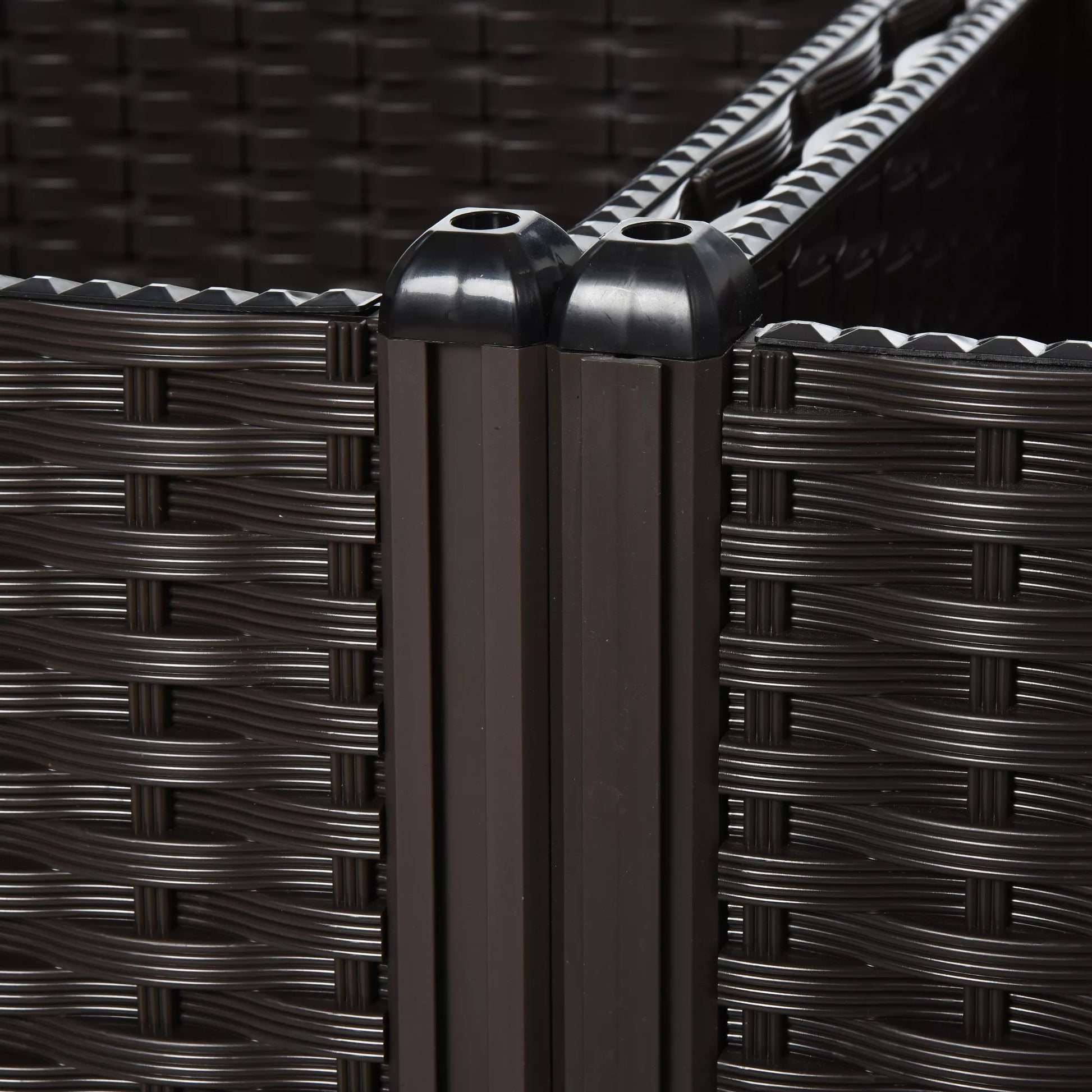Pakeltas lysvės lovelis, augalų dėžė su drenažo skylutėmis, gėlių dėžė su rotango išvaizda, plastikas, ruda, 40 x 40 x 44 cm
