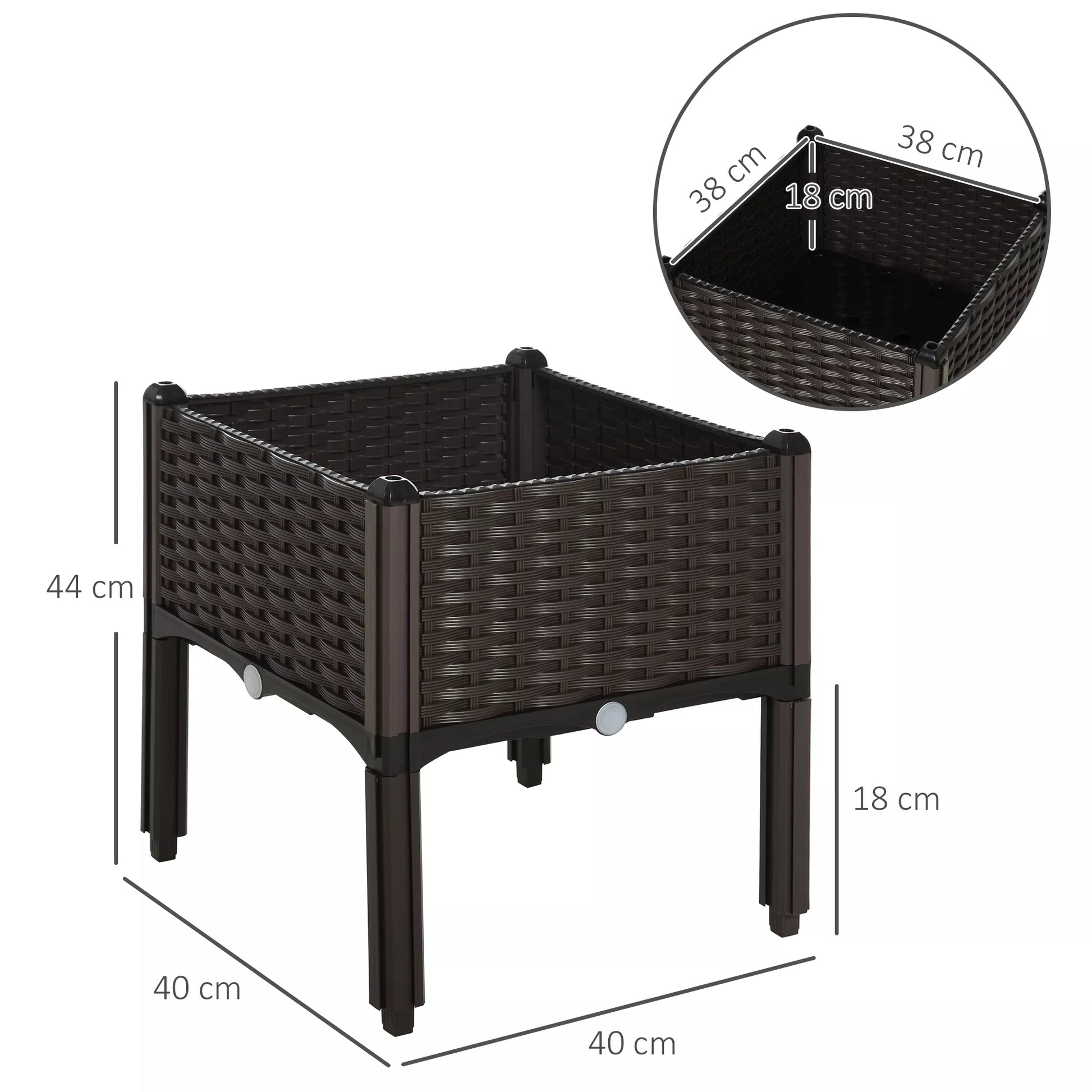 Pakeltas lysvės lovelis, augalų dėžė su drenažo skylutėmis, gėlių dėžė su rotango išvaizda, plastikas, ruda, 40 x 40 x 44 cm