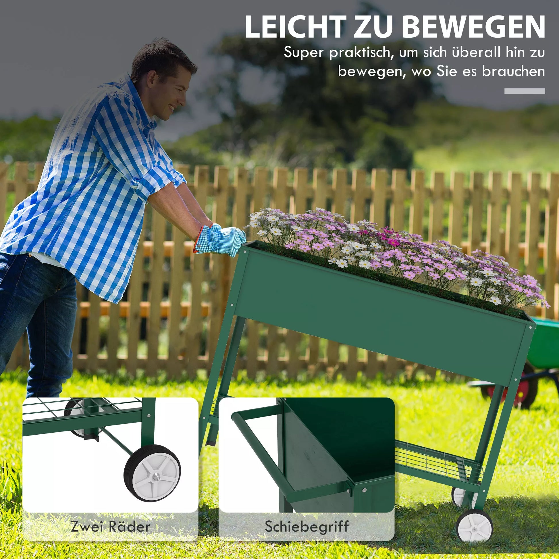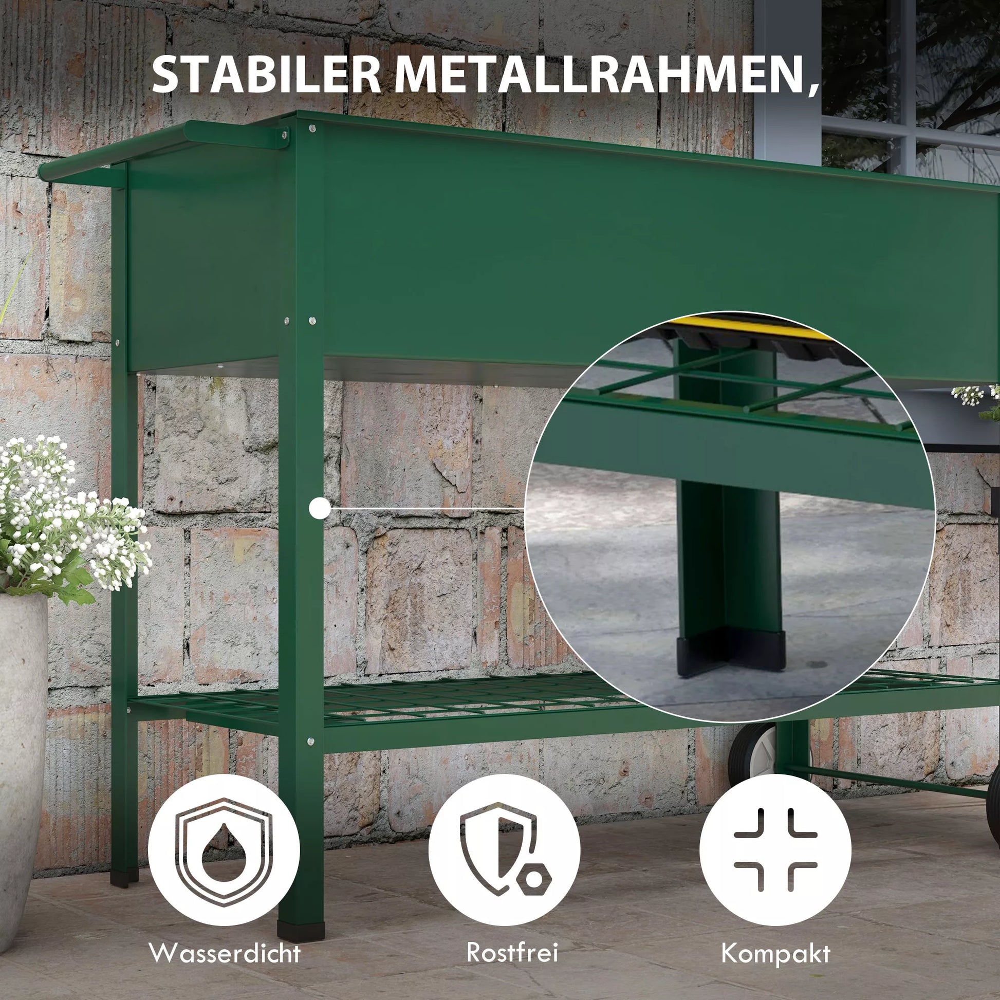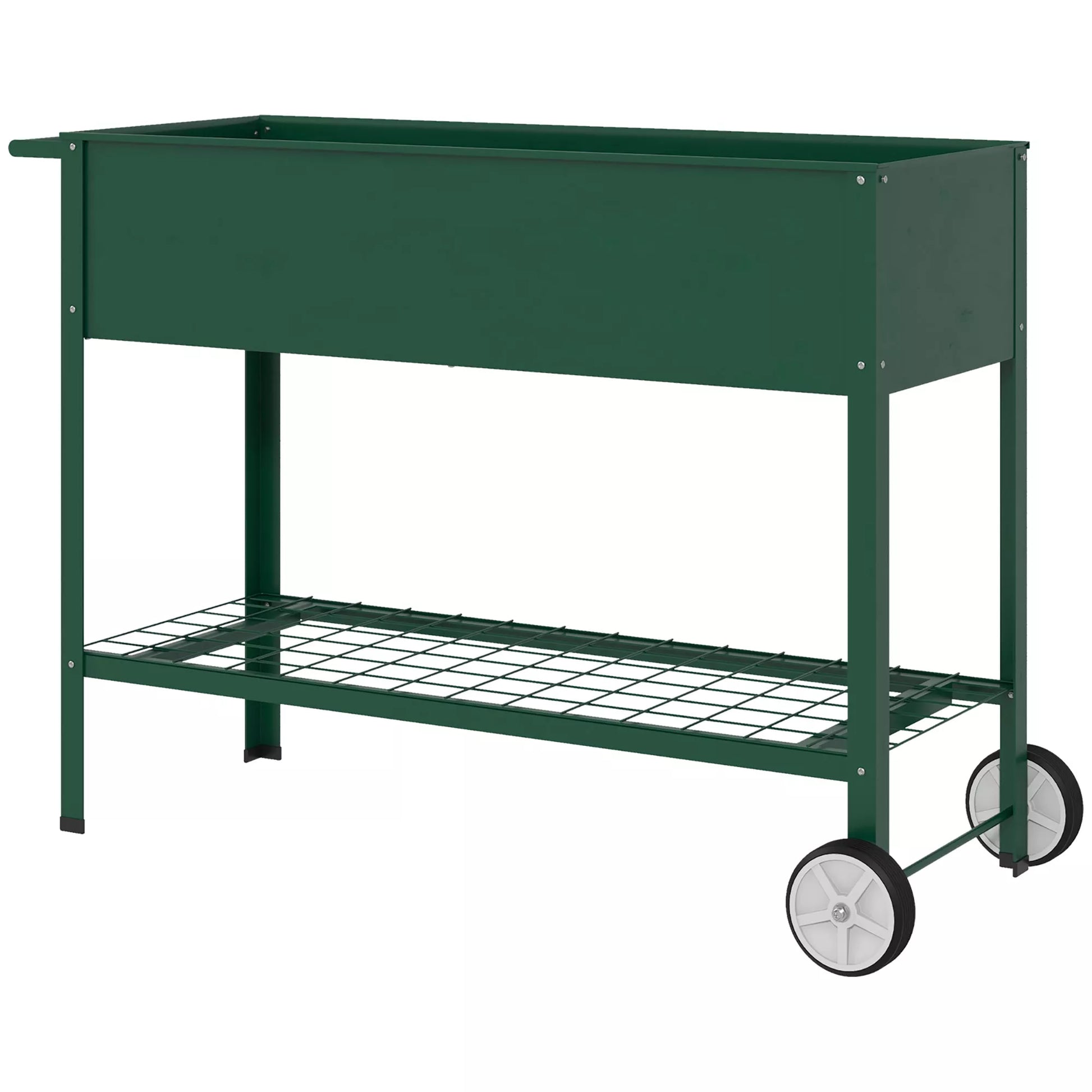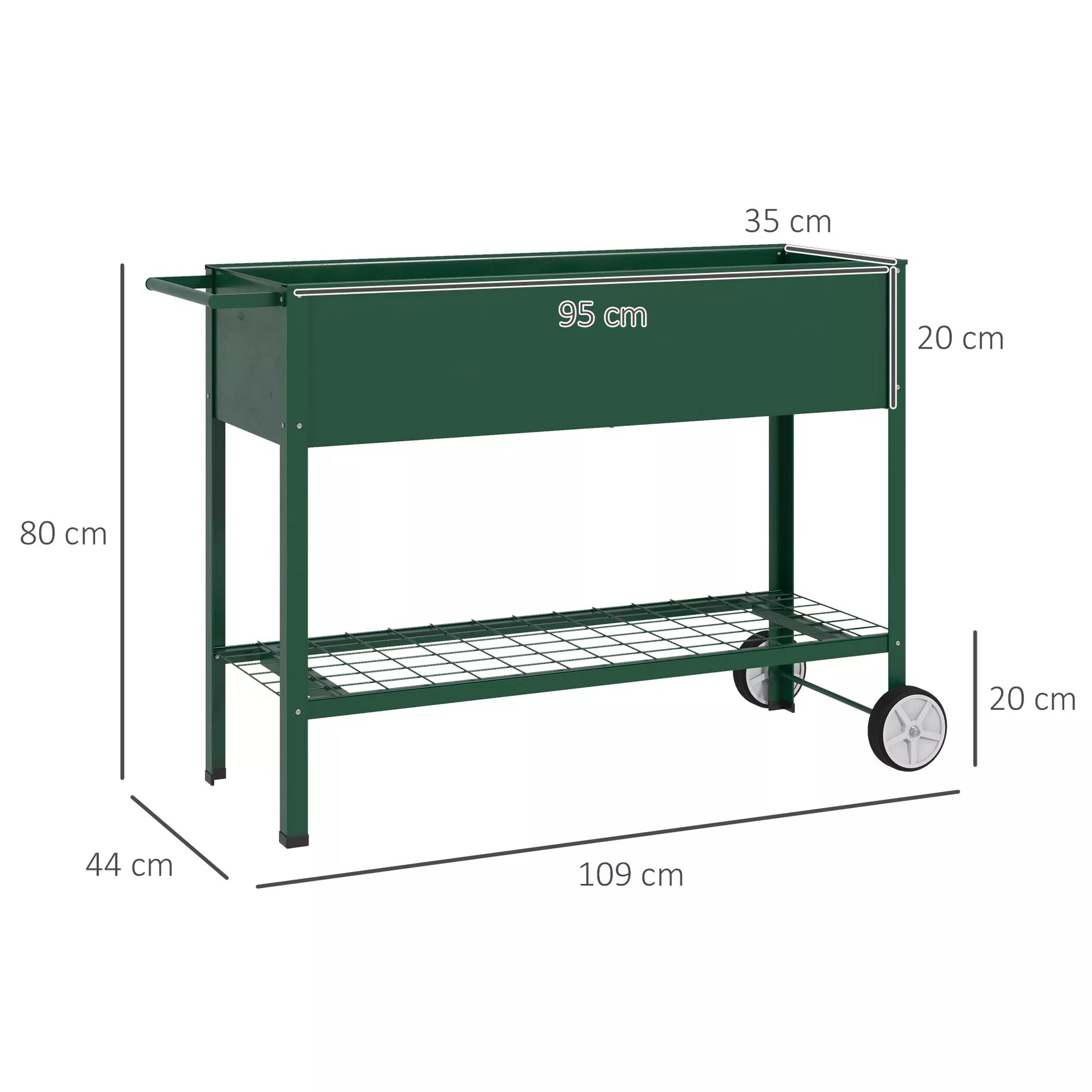 Outsunny Pakeltas vazonas augalams, 1 lentyna, 2 ratukai, 109 cm x 44 cm x 80 cm, Žalias
