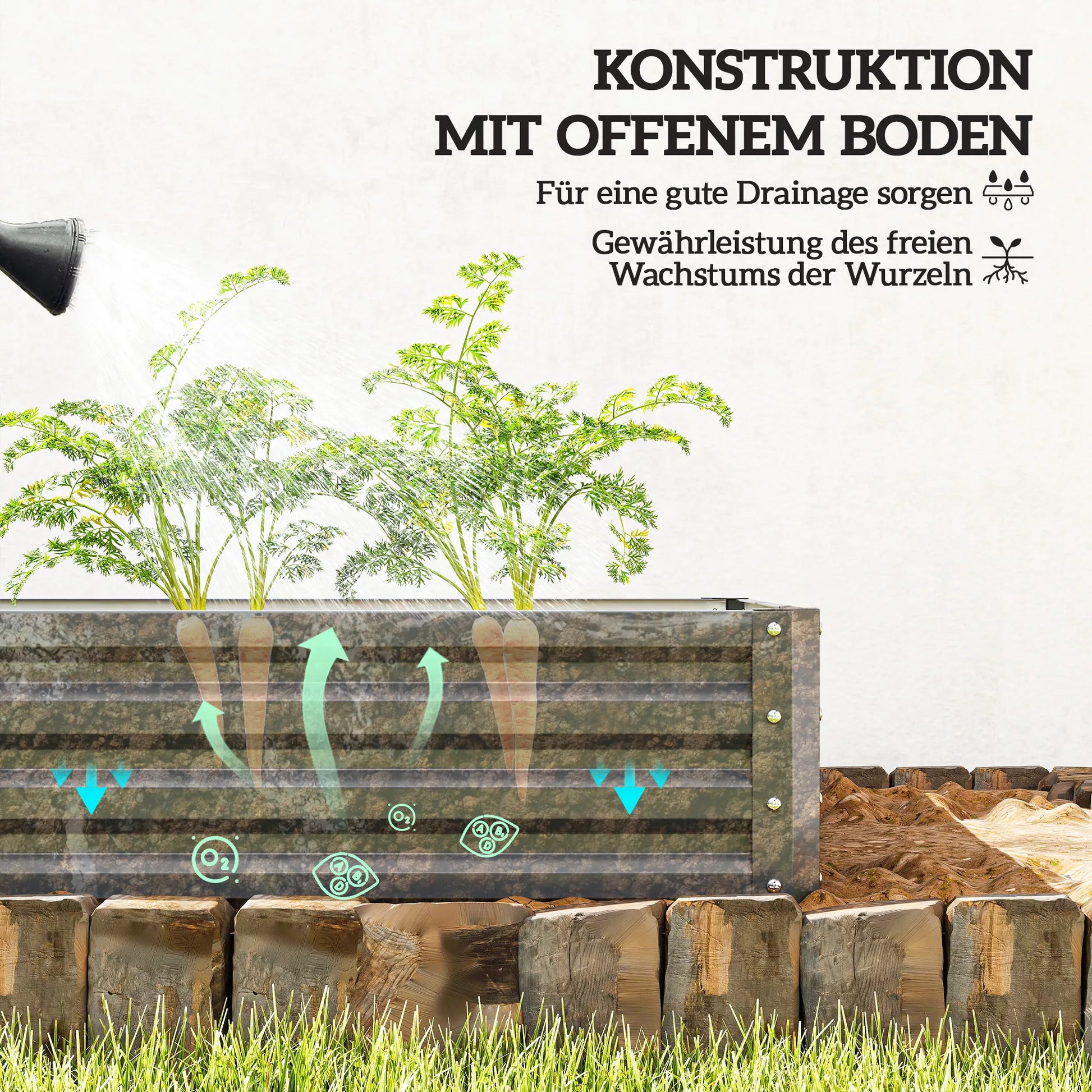 - ✔ Ypač aukštos sienelės (30 cm) apsaugo jūsų augalus nuo piktžolių ir smulkių graužikų