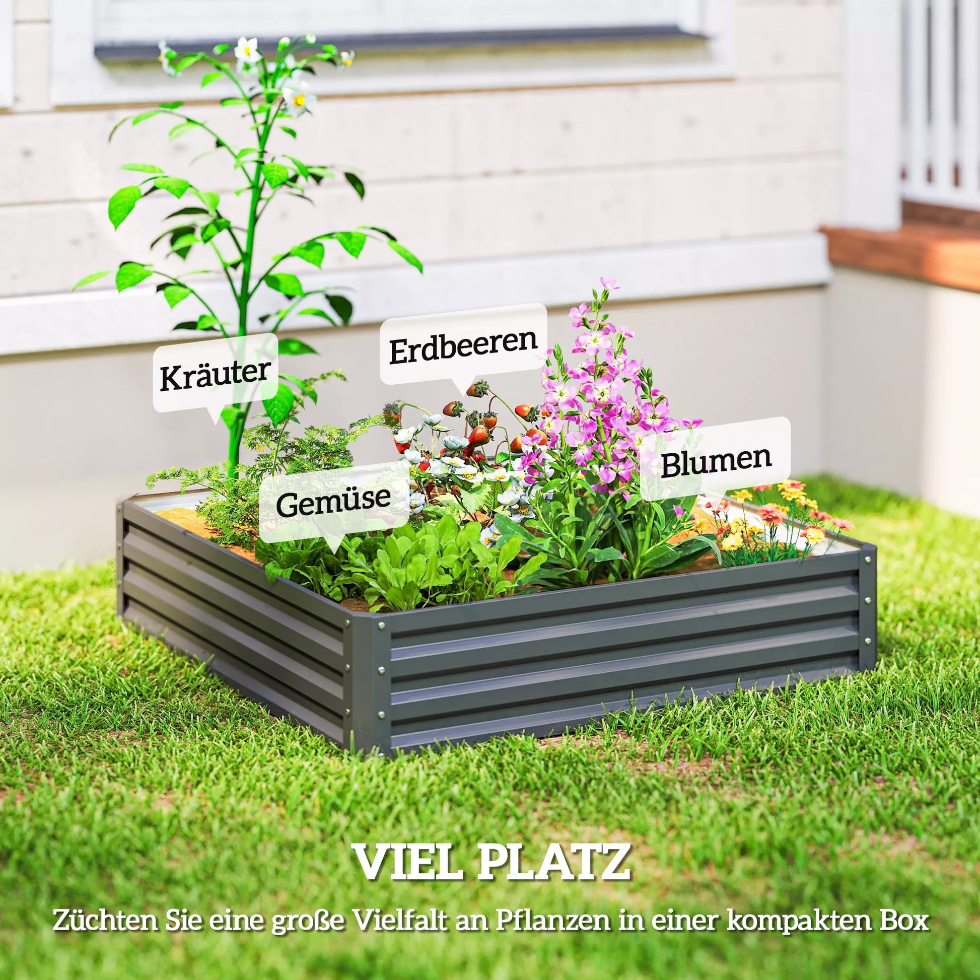 Jei terasoje ar balkone turite mažai vietos ir nenorite atsisakyti mėgstamų augalų, ši sodinimo dėžė yra puikus pasirinkimas! Aukštos sienelės ir atviras dugnas leidžia auginti augalus ilgomis šaknimis ir užtikrina, kad perteklinis vanduo laisvai nutekėtų į žemę. Tvirtas plieninis korpusas atsparus bet kokioms oro sąlygoms ir ilgai patikimai tarnaus jums ir jūsų žaliems augintiniams.