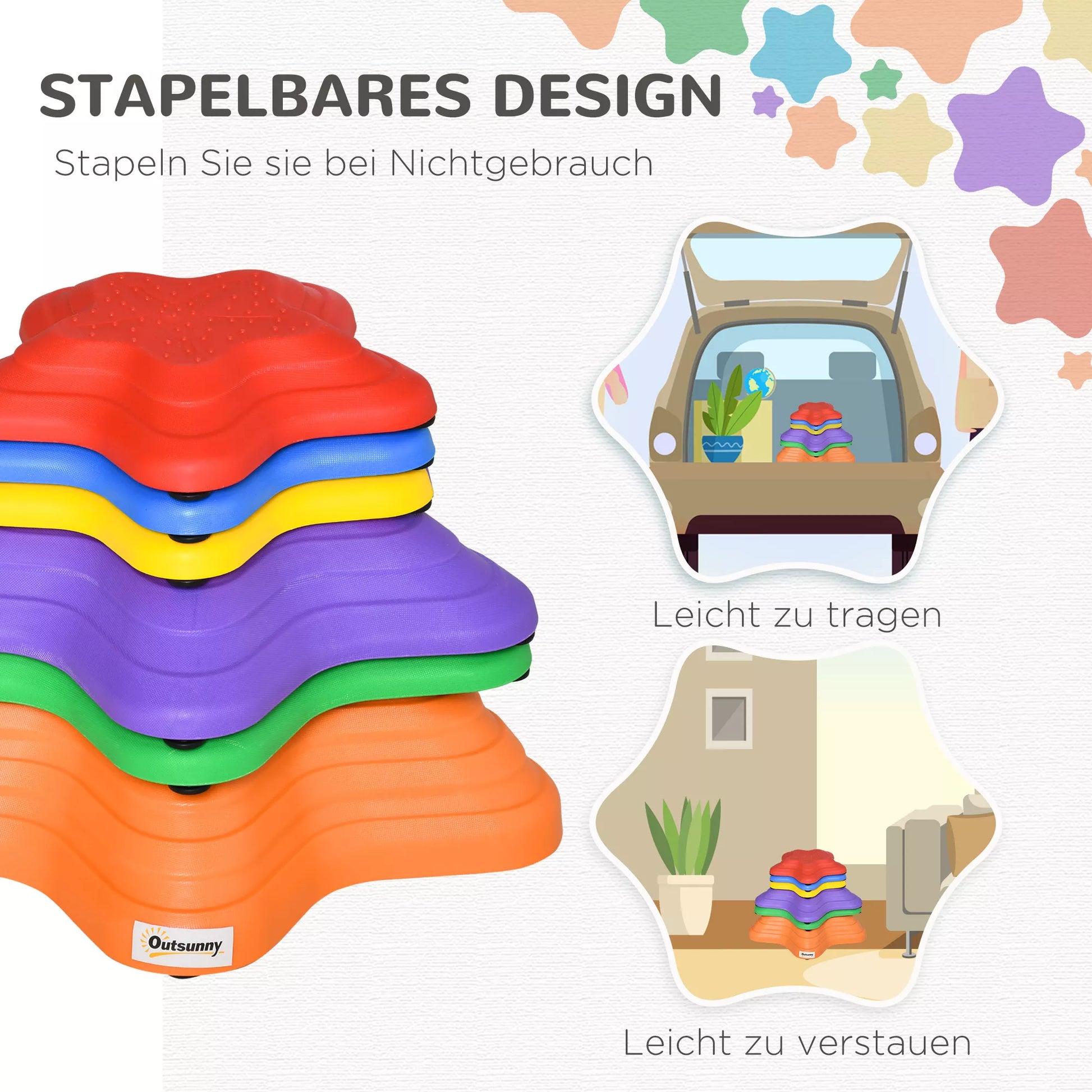 Didelis žaidimų džiaugsmas ir (saugi) pusiausvyros užduotis vienu metu: šie takeliai nepastebimai stiprina jūsų vaikų liemens raumenis, didina ištvermę ir gerina pusiausvyrą, kol jie pasineria į beribį žaidimų malonumą. Išmanus dizainas žavi ne tik savo tvirtumu ir saugumu, bet ir itin praktiškomis savybėmis: balanso akmenys yra neslystantys, atsparūs dideliam krūviui ir patogiai sukraunami vienas ant kito, taupant vietą. Puikiai tinka naudoti tiek lauke, tiek viduje.