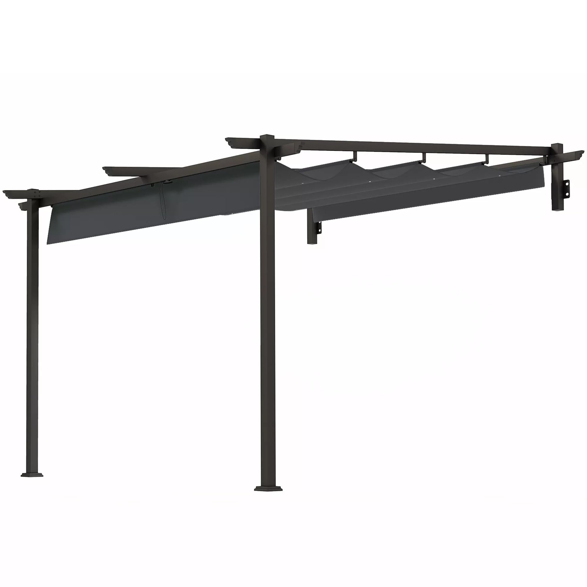 Paviljonas, 3 x 3 m Pergolė, Vėjui atsparus terasos stogas, Sieninis tvirtinimas, Reguliuojamas stogas, Sodui, Terasei, Tamsiai pilkas