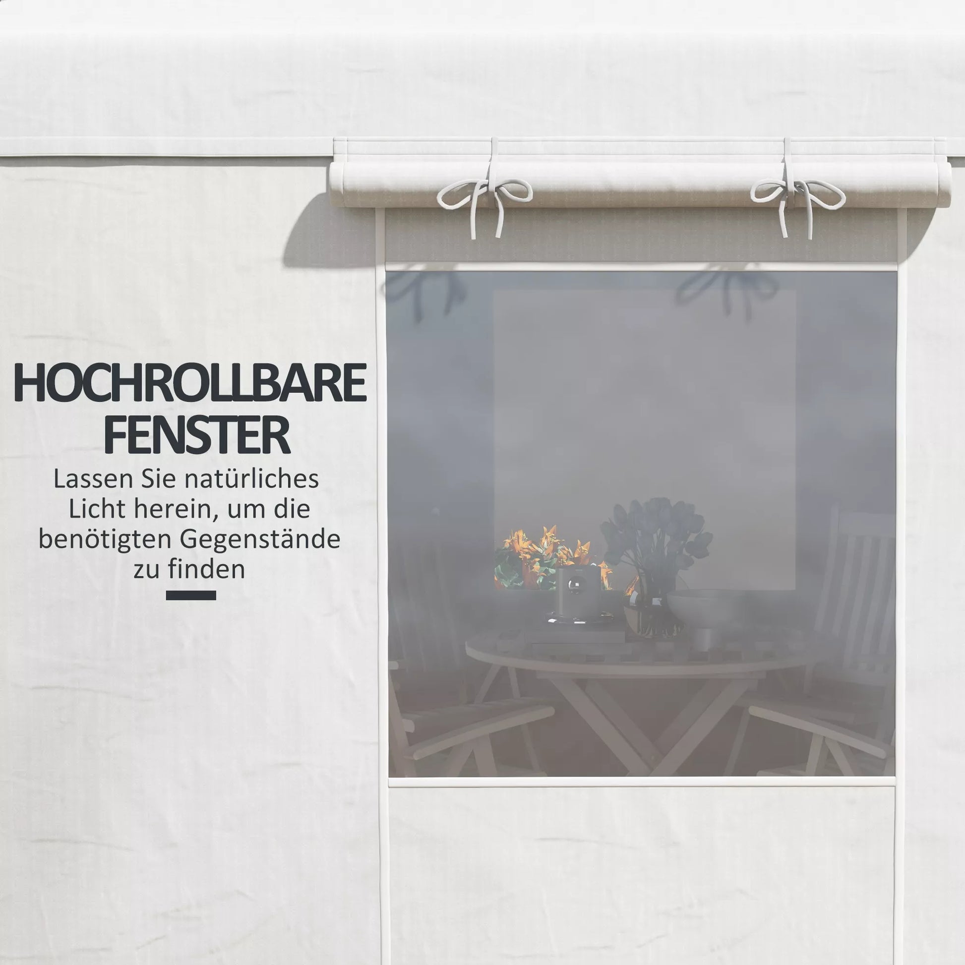 Su mūsų pavėsinės žiemos uždangomis paveršite savo pavėsinę funkcionalia daiktų laikymo erdve. Vandeniui atspari medžiaga užtikrina, kad lietus lengvai nutekėtų ir pavėsinė bei joje laikomi daiktai liktų sausi. Užtrauktuku užsegamos angos leidžia lengvai prieiti prie viduje esančių daiktų. Be to, atsegiami langai suteikia daug natūralios šviesos.