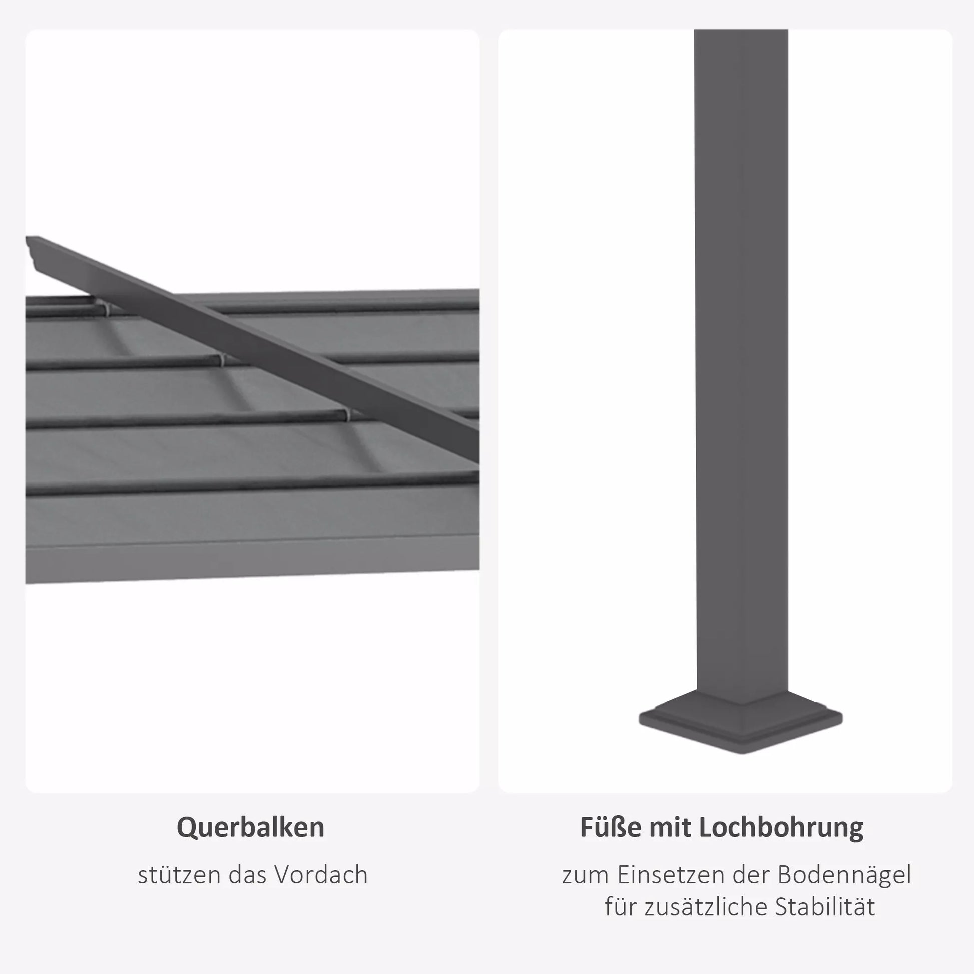 Pergola, su tvirtinimo elementais, ištraukiamas stogas, 3,97 m x 2,95 m x 2,3 m, tamsiai pilka