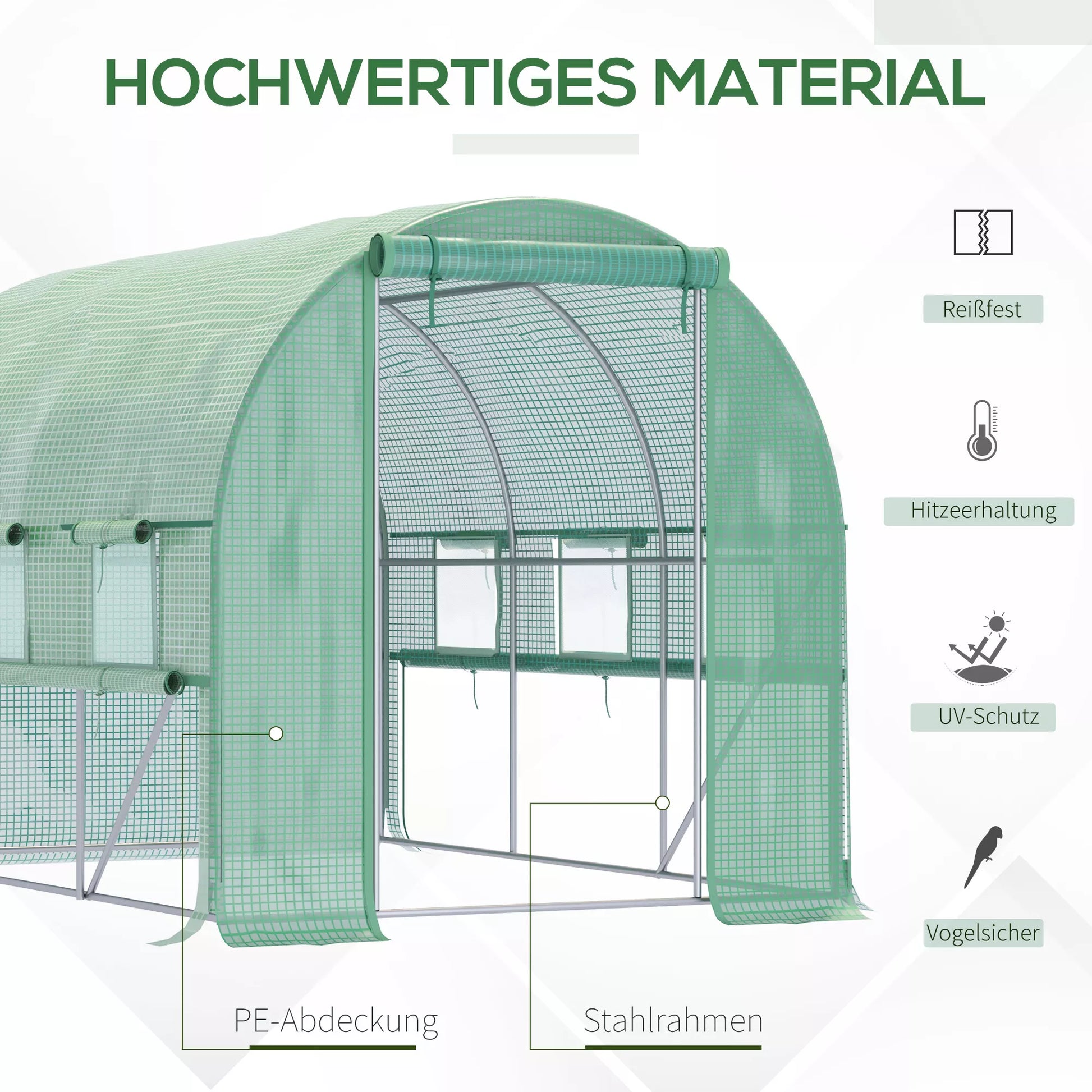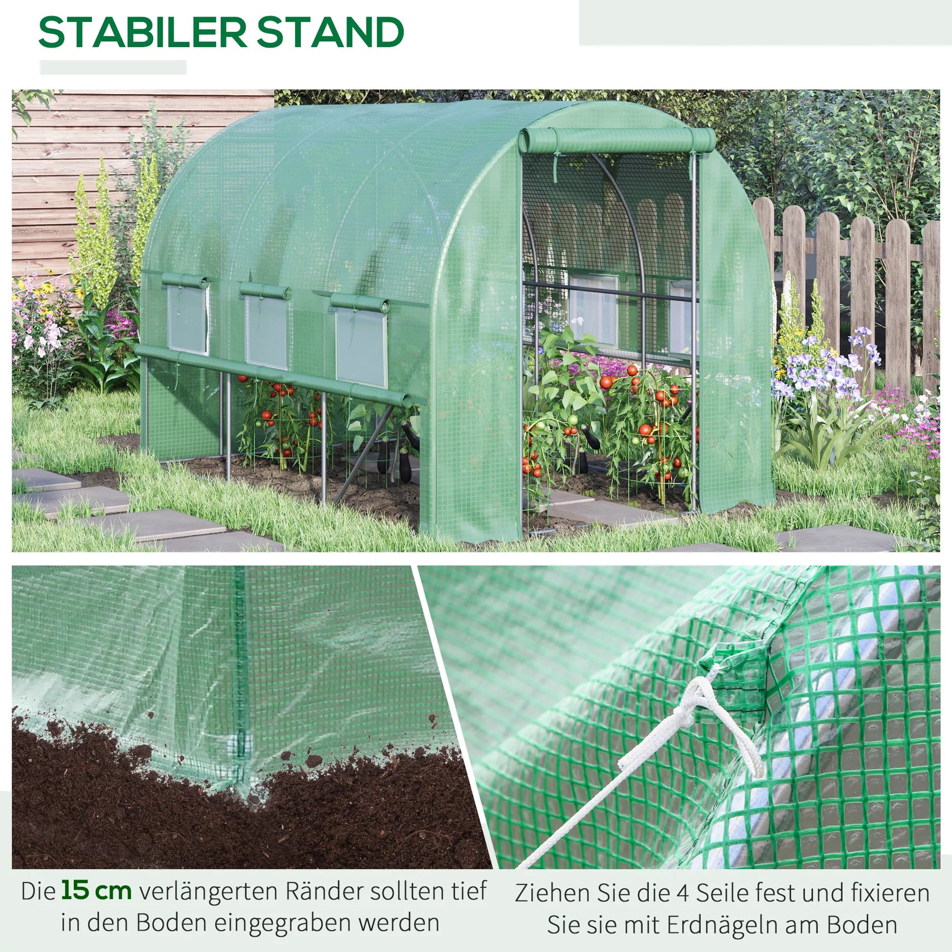 Šiltnamis su plėvelės danga, 6 atlenkiami langai, durys su užtrauktuku, nerūdijančio plieno rėmas, 2,95 x 2 x 2 m, žalias