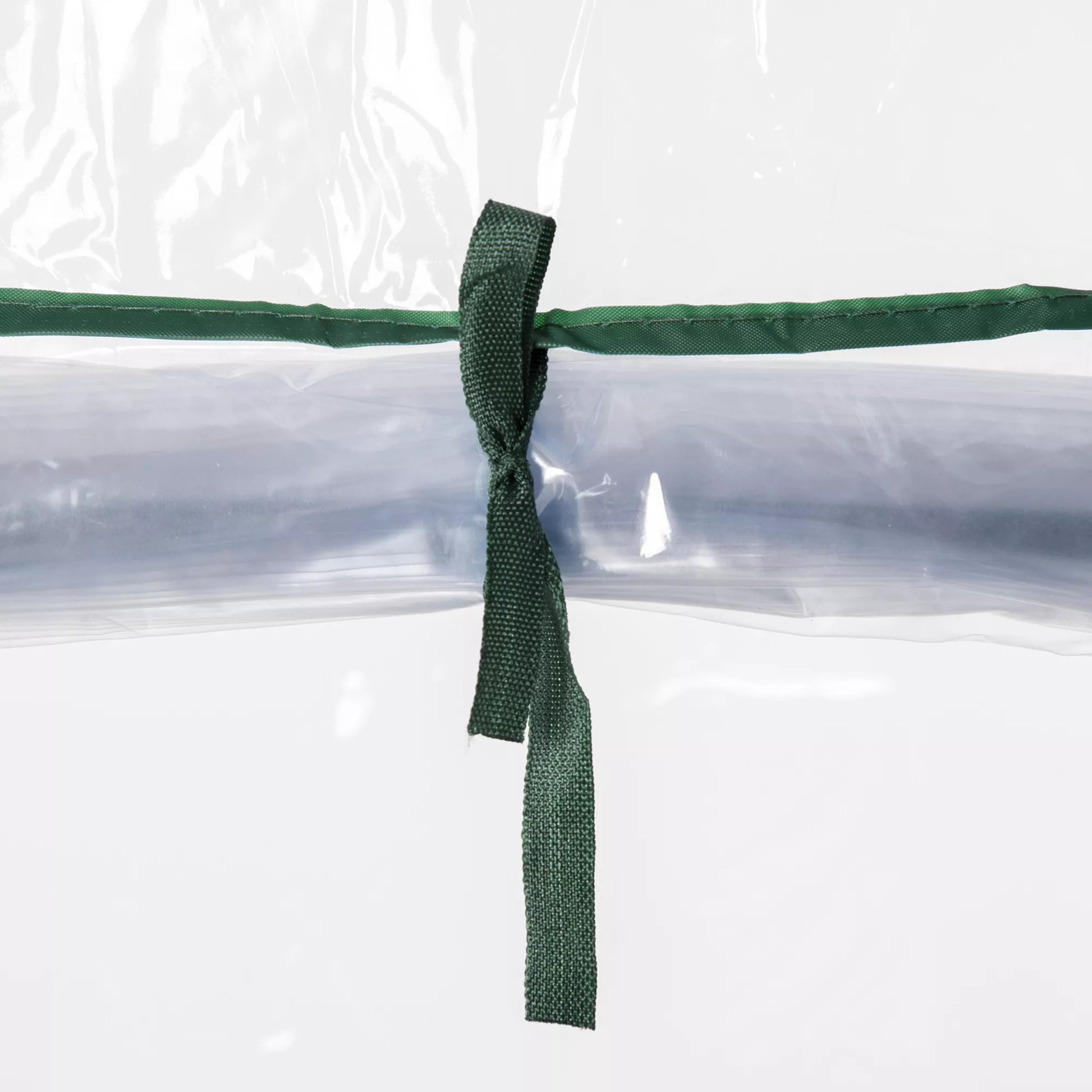 - ✔ Patarimas: Šiltnamio plėvelė iš šonų yra 10 cm ilgesnė nei metaliniai vamzdžiai. Apatinį kraštą galima užkasti žemėje arba pasverti akmenimis. Tai padaro šiltnamį stabilesnį