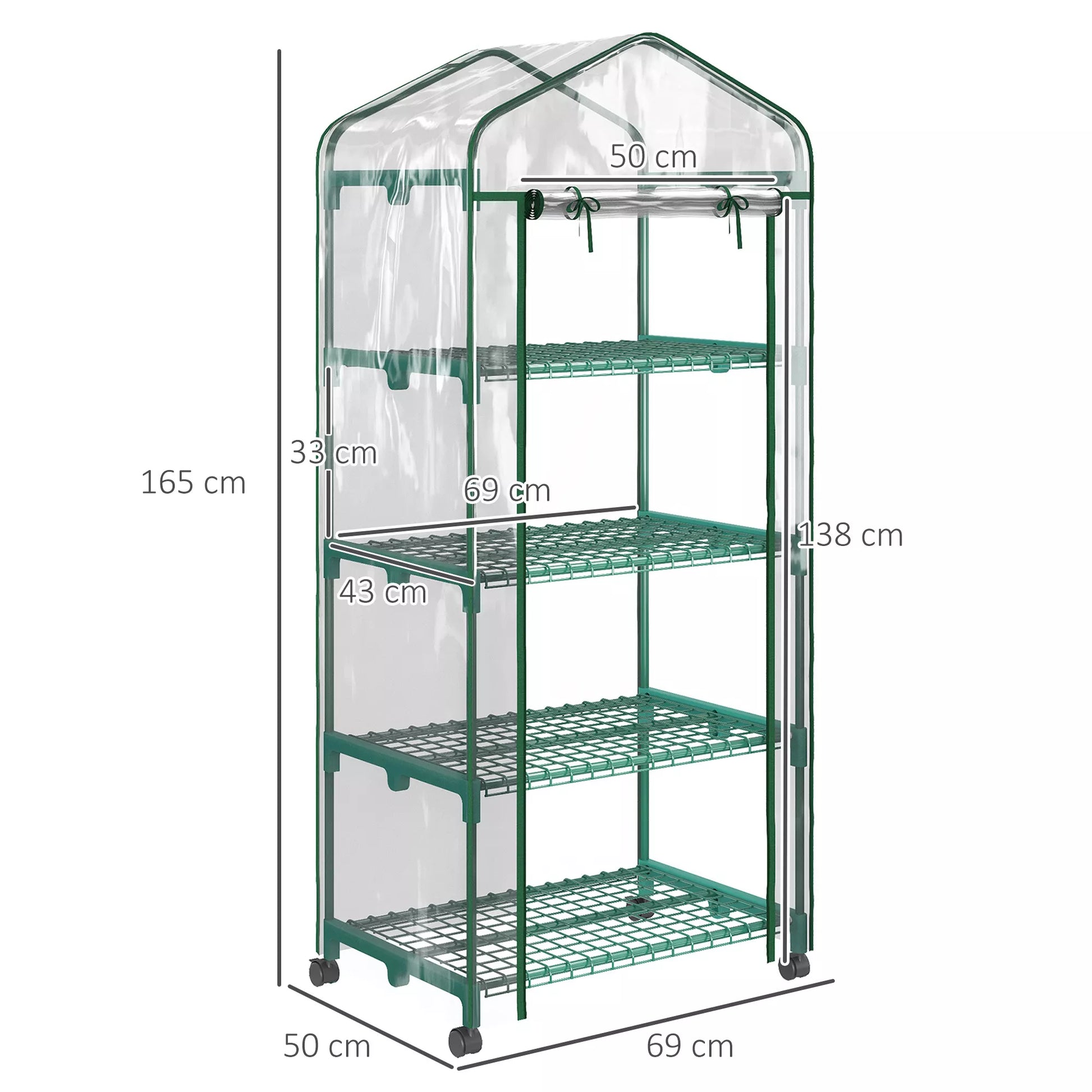 Folinis šiltnamis, mini šiltnamis, augalų namelis, daigykla, 4 lentynos, 69 x 50 x 165 cm, permatomas