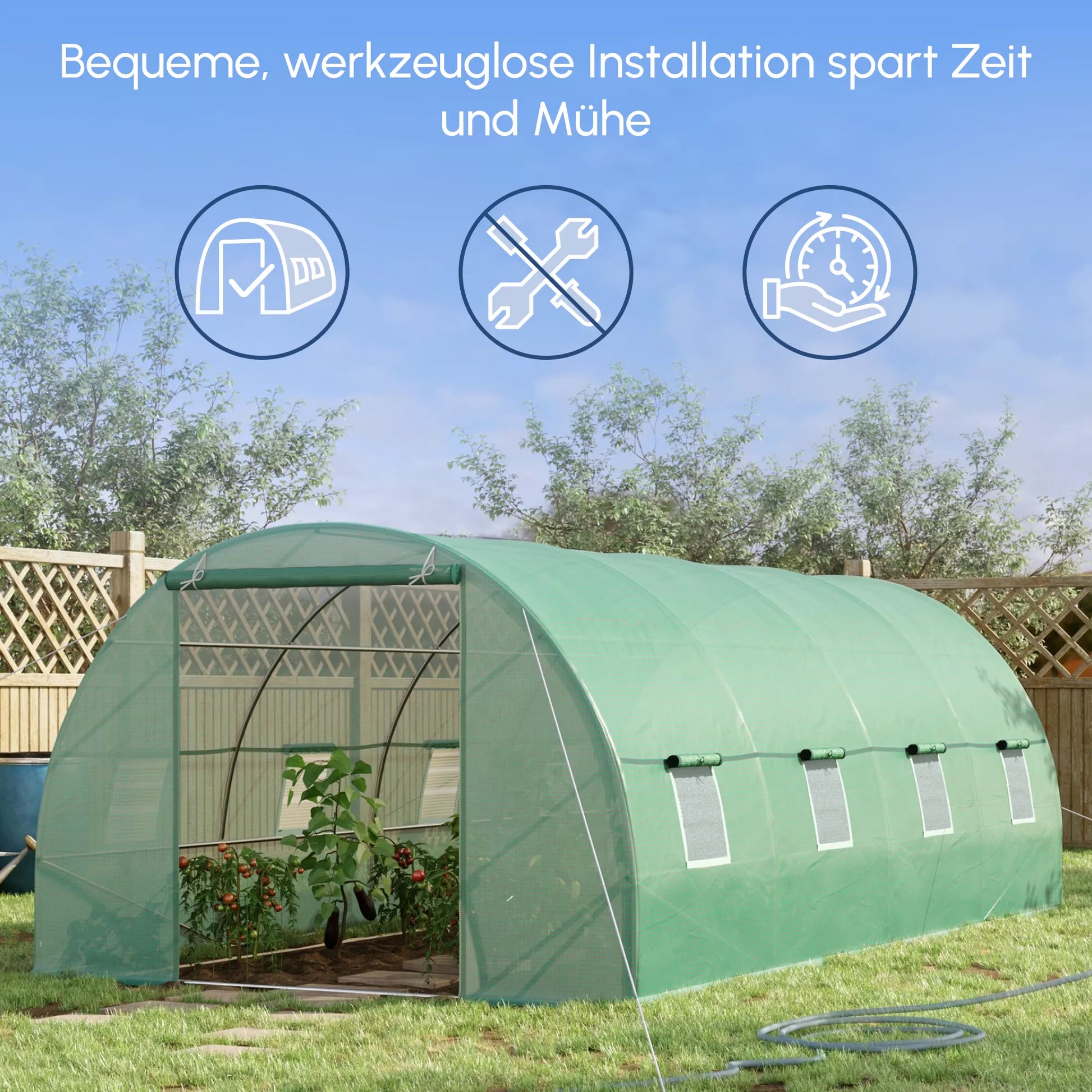 - ✔ Šiltnamis su lenktu stogu augalų auginimui ir daigų sodinimui · Žiemą apsaugo augalus nuo šalčio, speigo, krušos ir kenkėjų