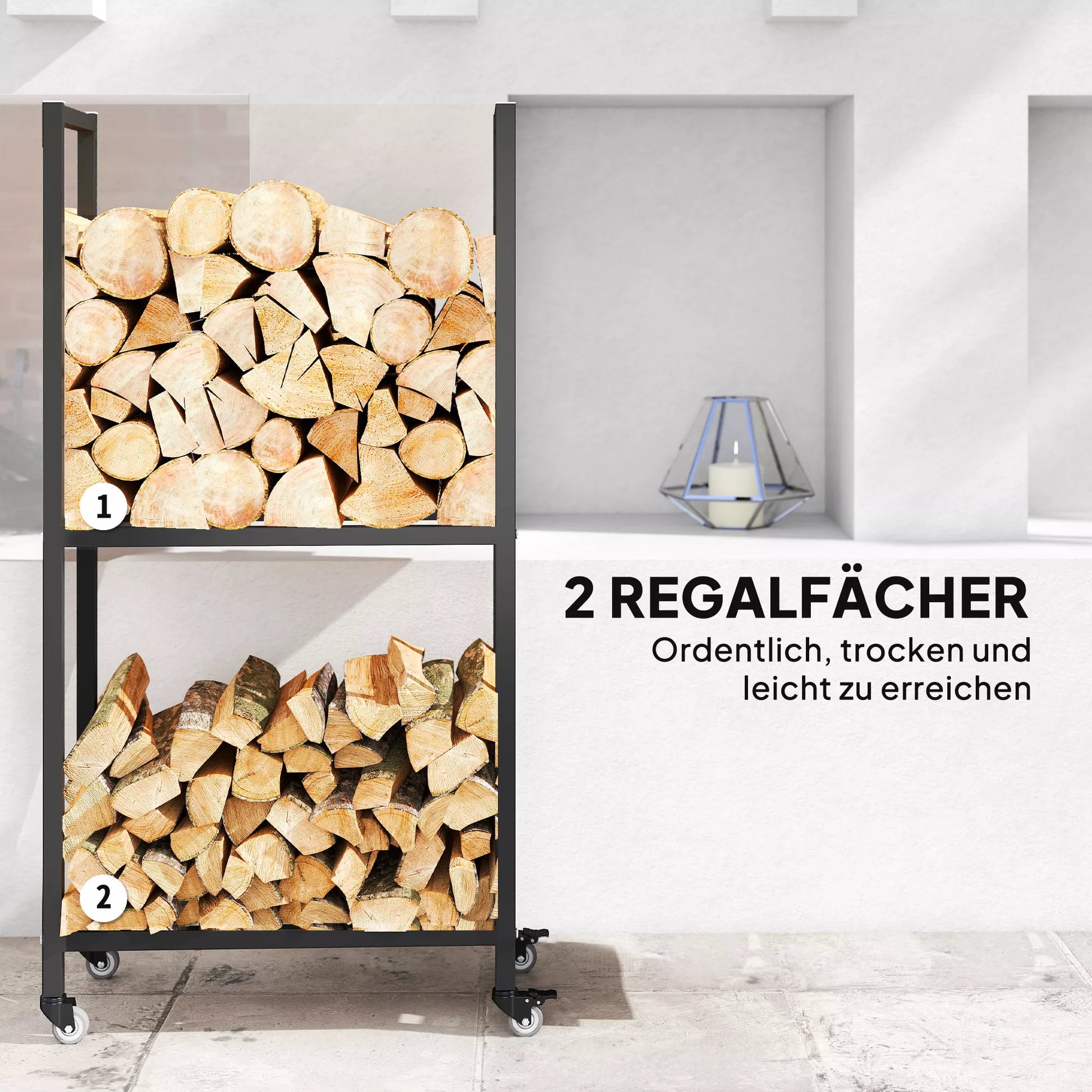Vidinė malkinė plieninė 60 x 30 x 119cm 2 lentynų malkų laikiklis su ratuku juoda