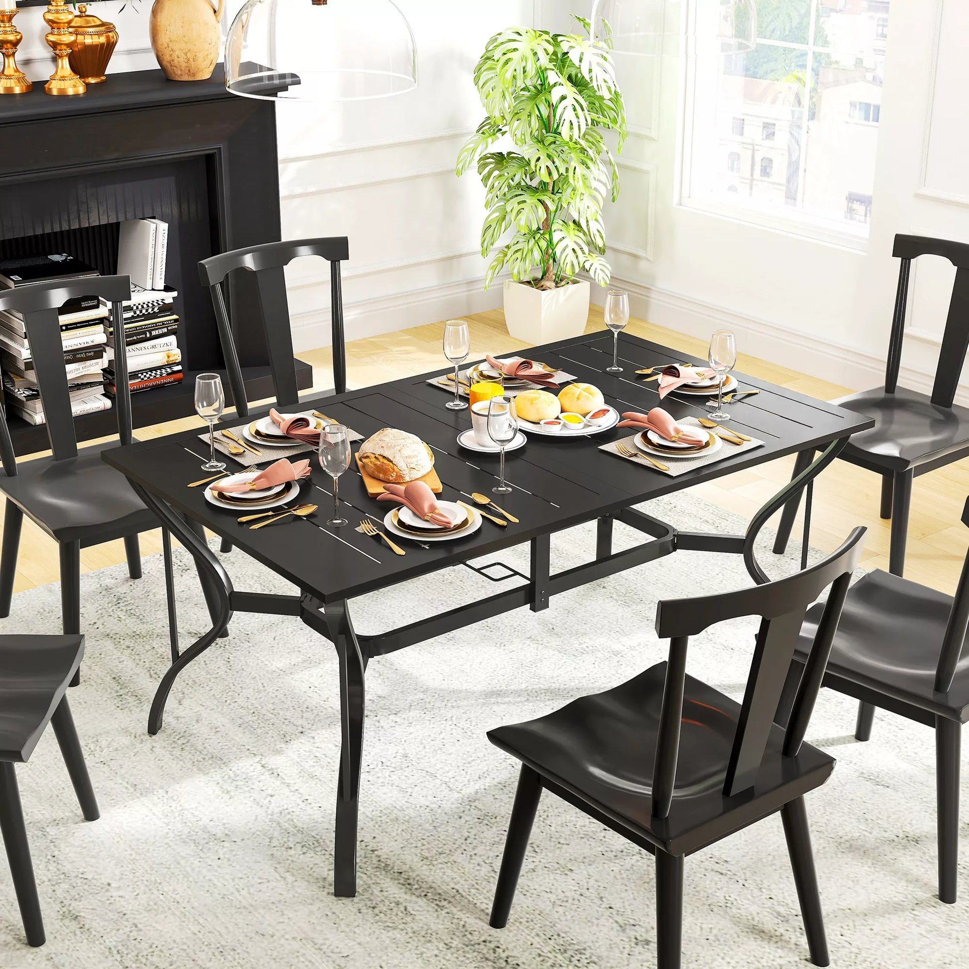 - ✔ 150 x 90 cm sodo stalo paviršius talpina iki šešių žmonių