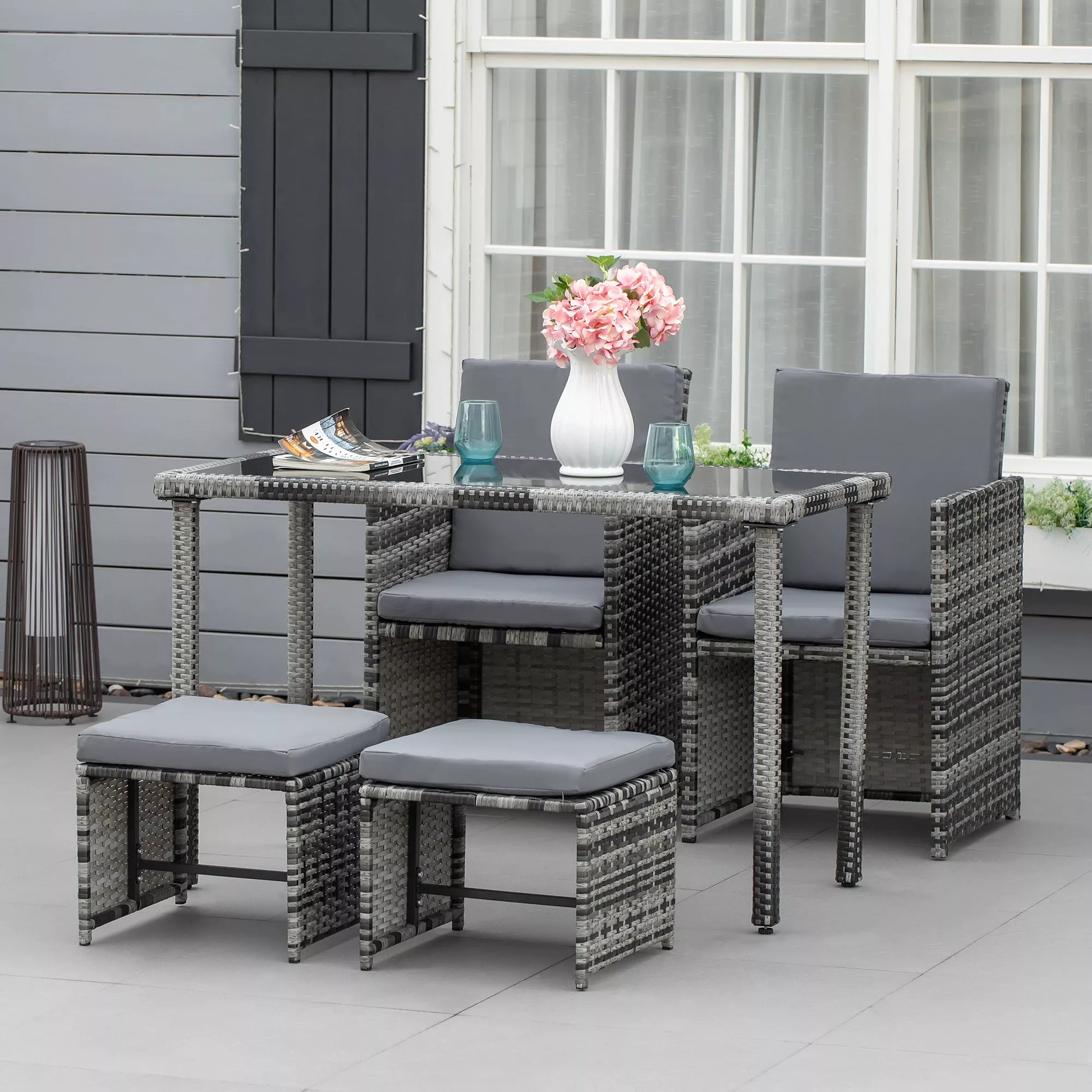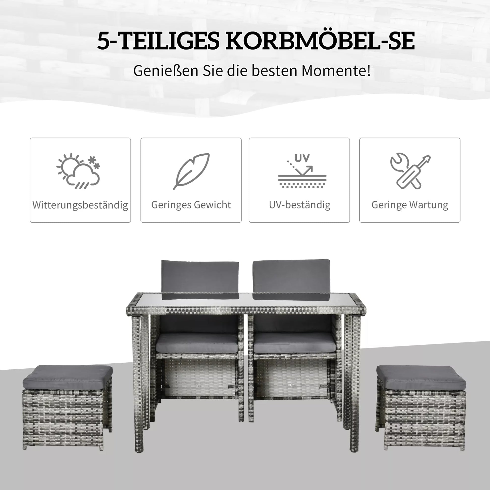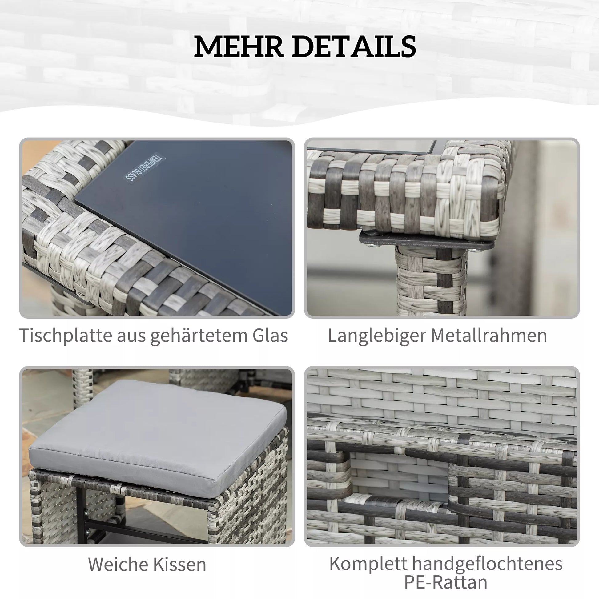 Poliratano lauko baldų komplektas 4 žmonėms, sodo valgomojo komplektas su pagalvėlėmis, pilkas