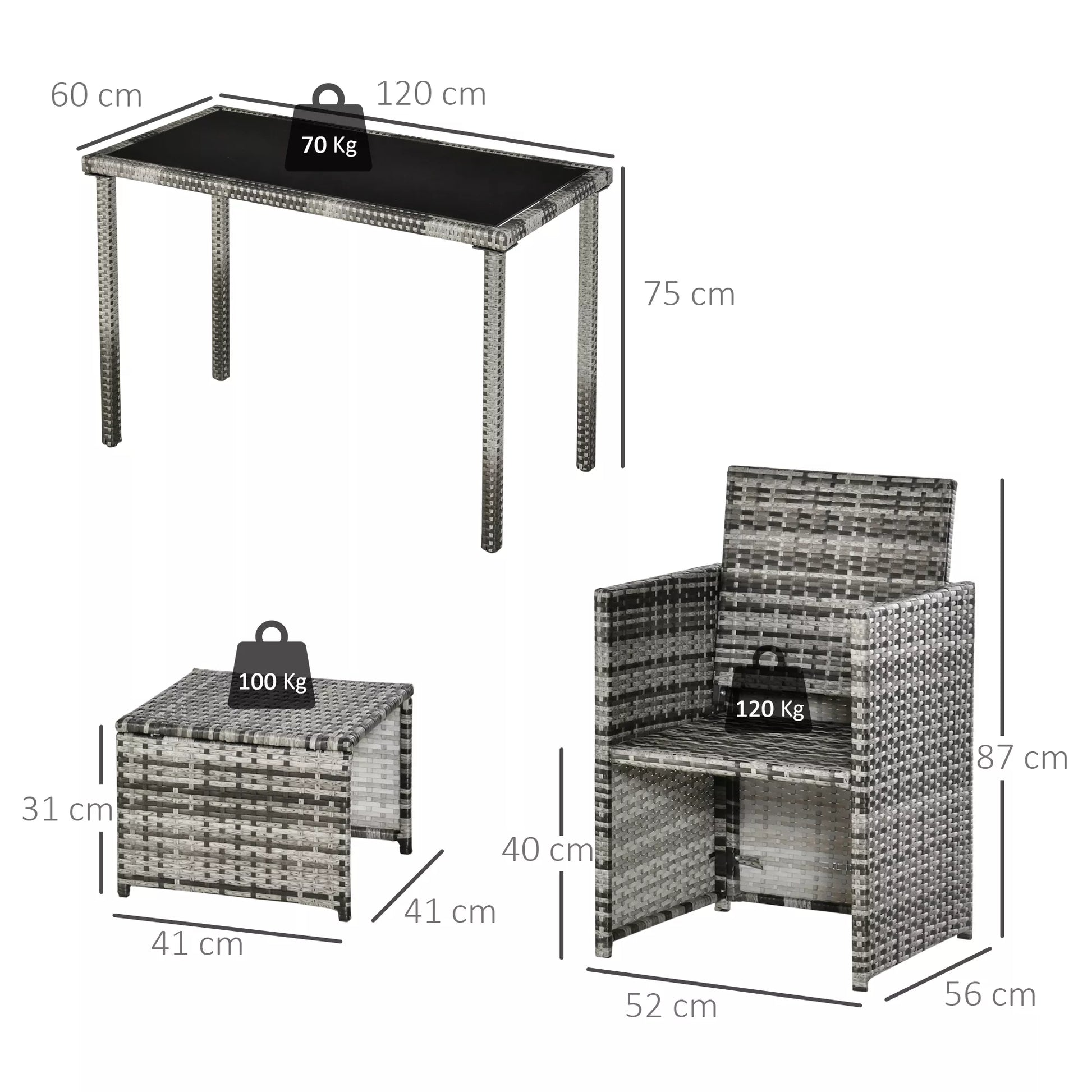 - ✔ Maks. apkrova: 120kg (kėdė), 100kg (pufas), 70kg (stalas)