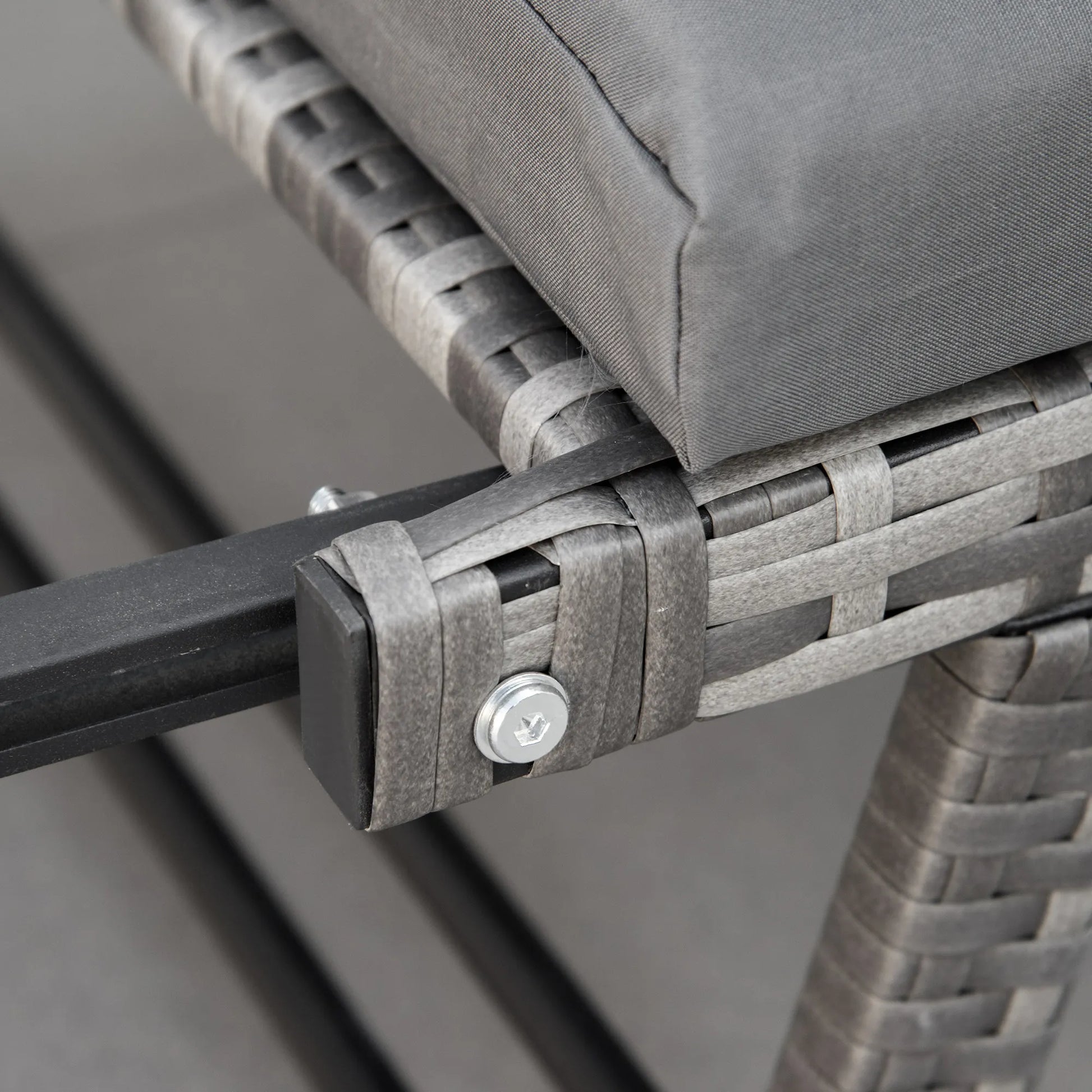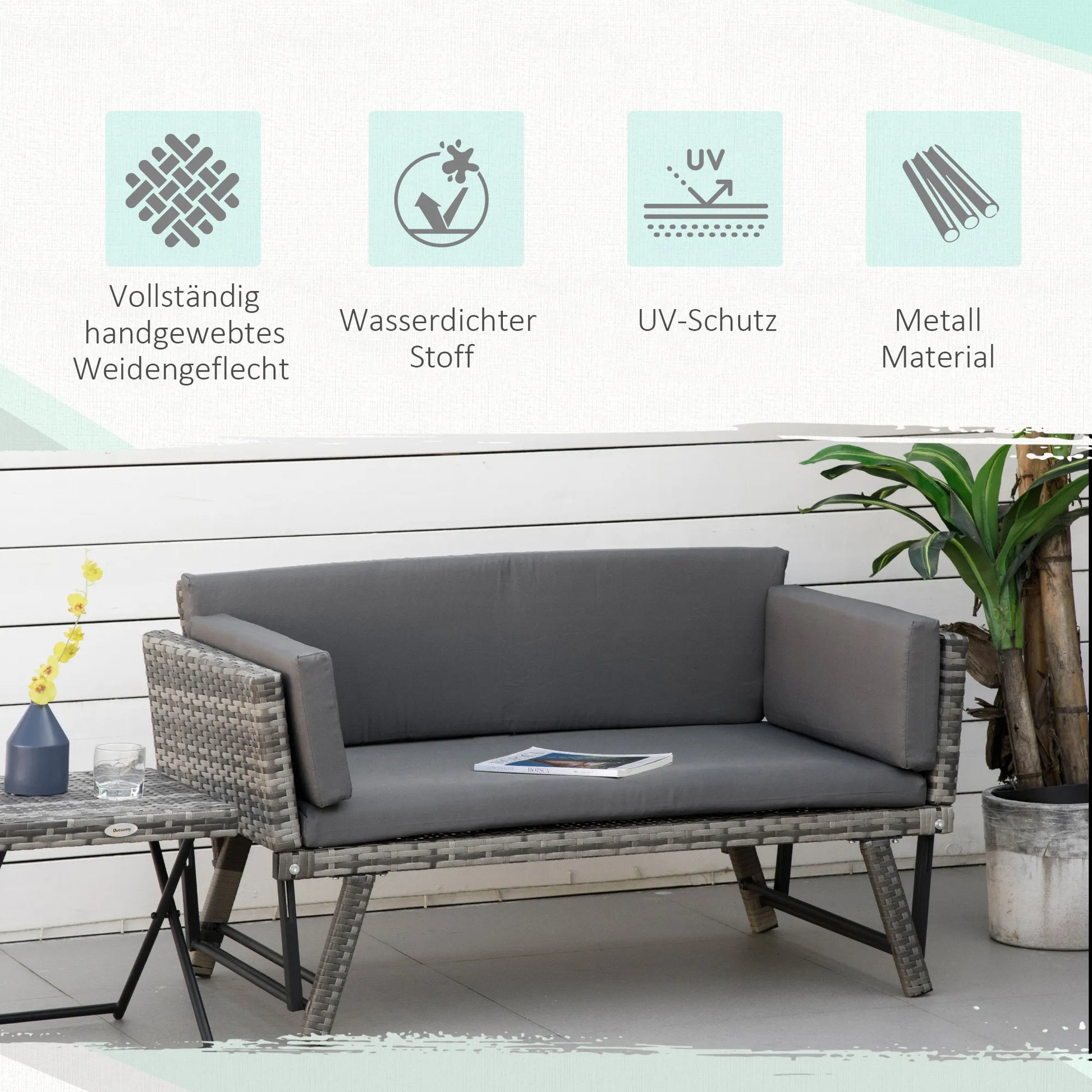 Ši moderni "Outsunny" rotango sofa pasižymi paprastu, nesenstančiu dizainu ir aukštos kokybės apdirbimu. Dėl tvirto, nerūdijančio plieno rėmo ir atsparios, atsparios oro sąlygoms dirbtinio rotango dangos, ši sodo sofa idealiai tinka naudoti lauke ištisus metus. Atlenkiamos porankiai lengvai nuleidžiami, kad galėtumėte patogiai atsigulti arba naudoti šonines dalis kaip praktiškus stalviršius.