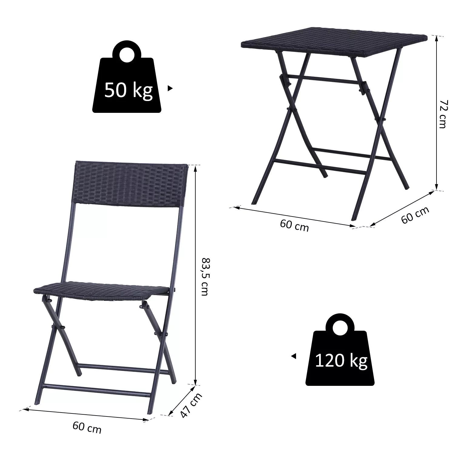 - ✔ Stalo matmenys: apie 60x60x72 cm (ilgis x plotis x aukštis)