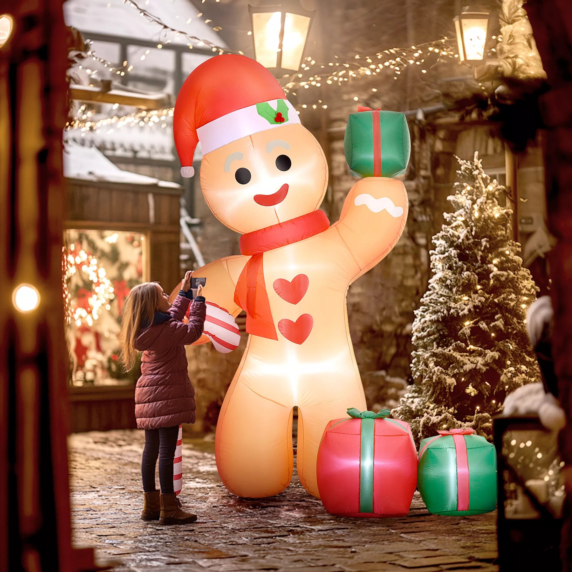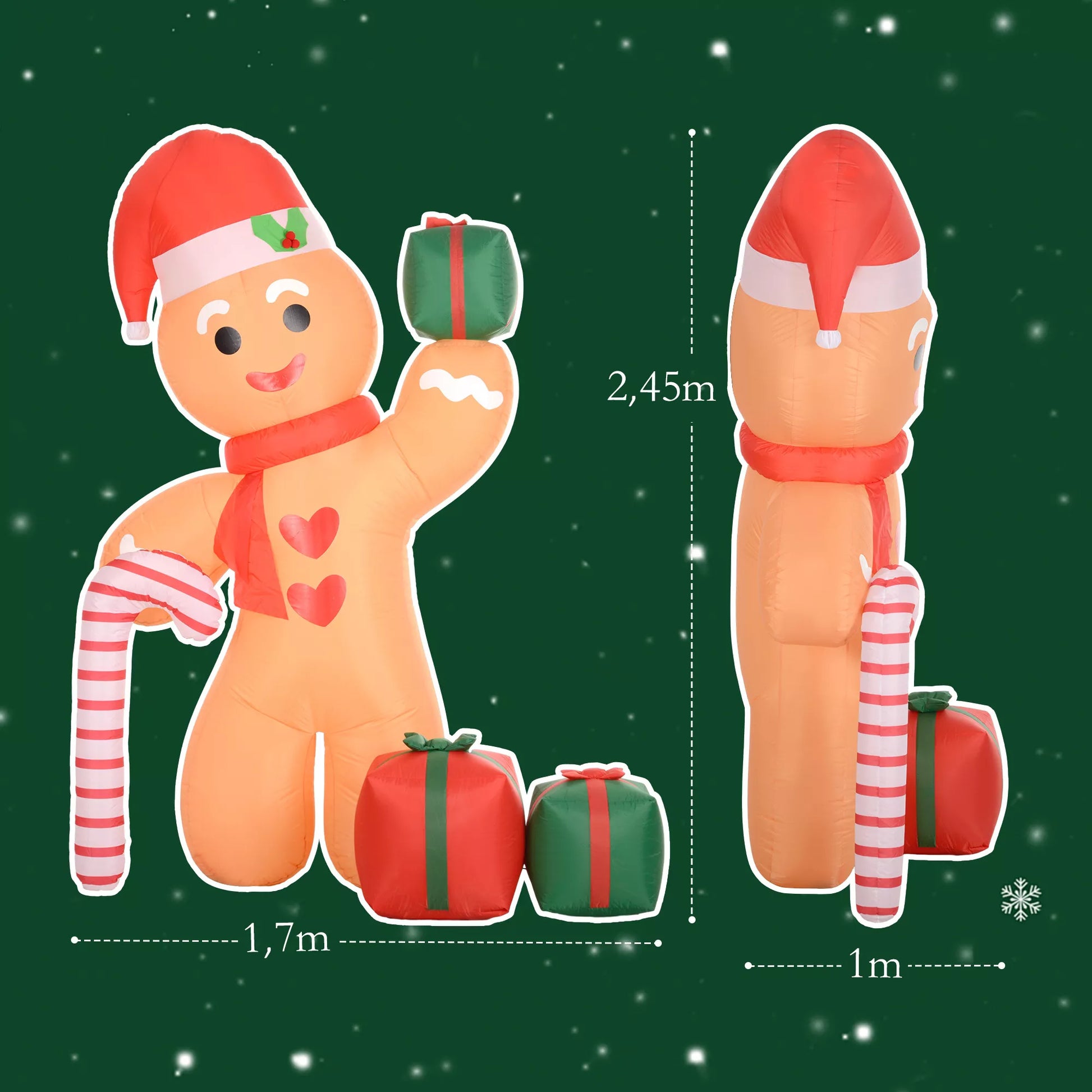 Outsunny Pripučiamas meduolių žmogeliukas su pagaliuku, 2,45 m aukščio, su baltu LED apšvietimu, 170 x 100 x 245 cm