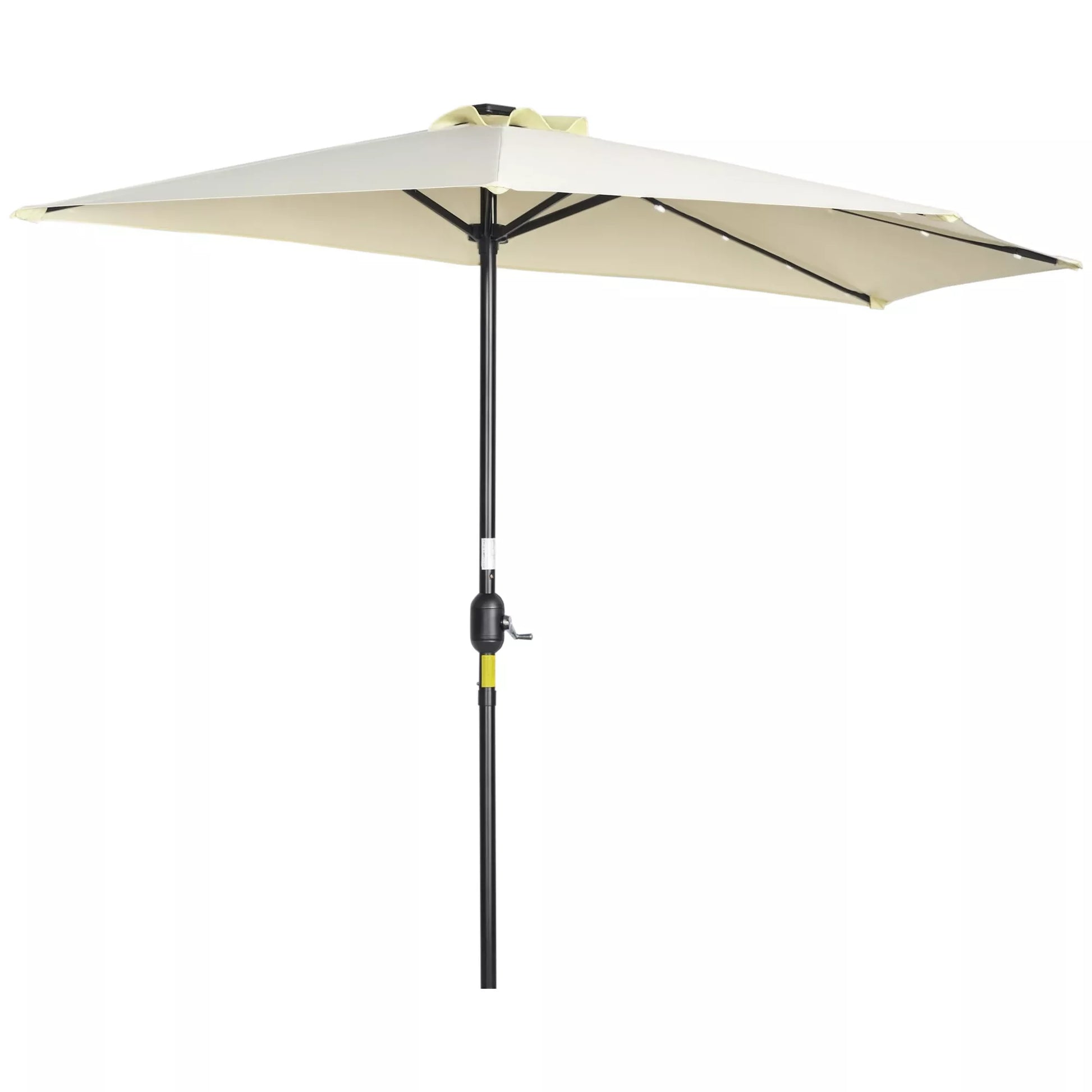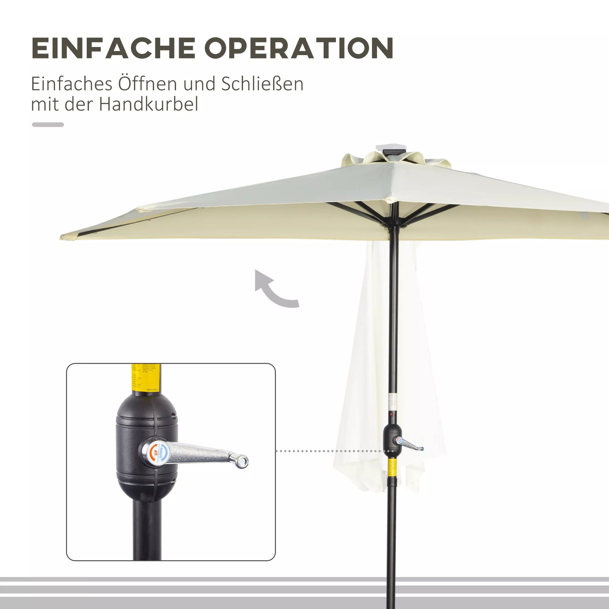 Šis pusiau skėtis yra puikus sprendimas tiems, kurie turi mažai vietos, bet vis tiek nori leisti laiką lauke. Skėtis gali būti pastatytas arti sienos be tarpų – tai idealu balkonams ir mažoms terasoms. Unikali pusapvalė skėčio stogelio forma suteikia daug pavėsio ir apsaugo nuo tiesioginių saulės spindulių. Sukurkite savo asmeninę vasaros oazę su šiuo skėčiu!