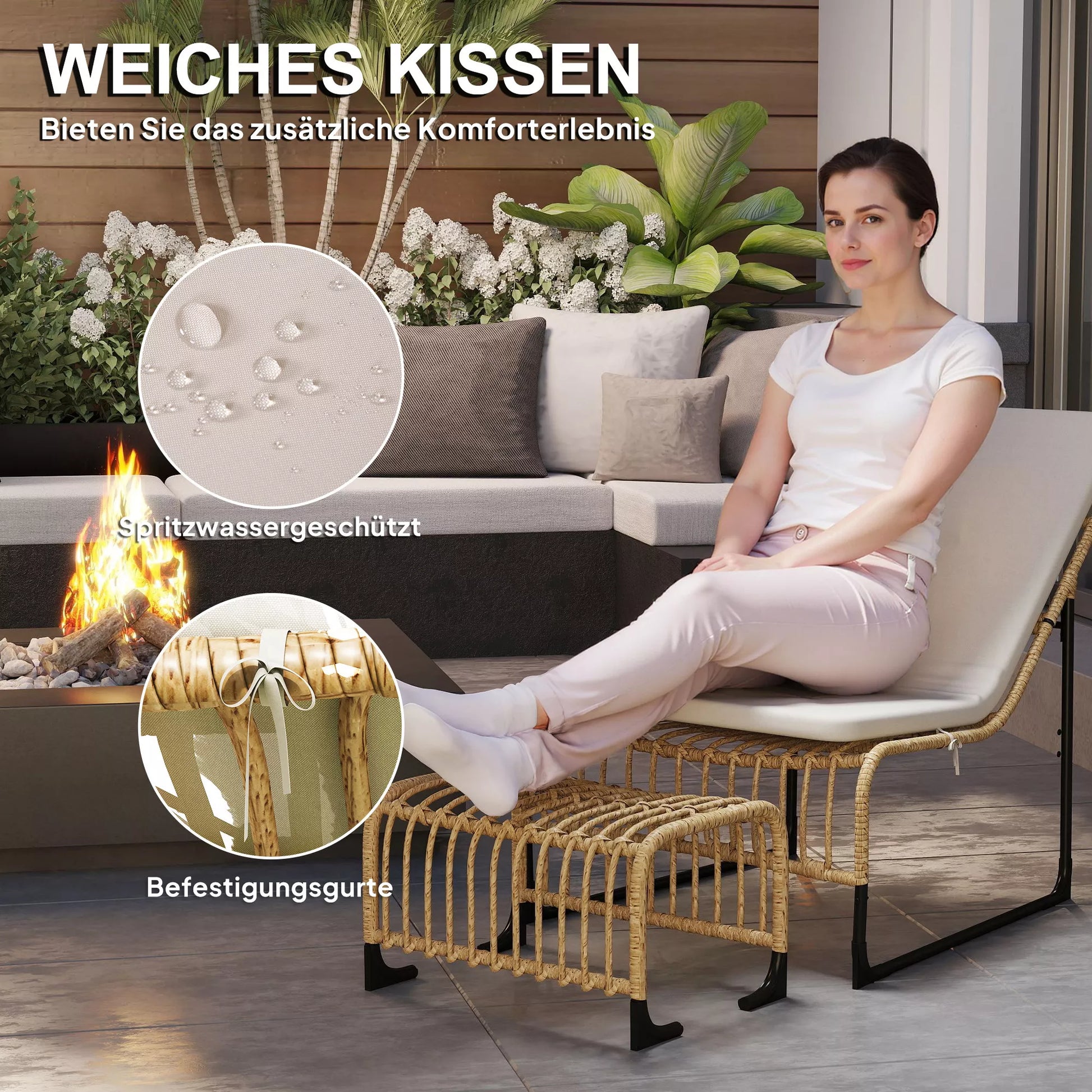 Rotango poilsio krėslas su pakoja, atsparus UV spinduliams, sodo krėslas su pagalve, dirželiais, 65 x 93 x 80 cm, natūrali mediena