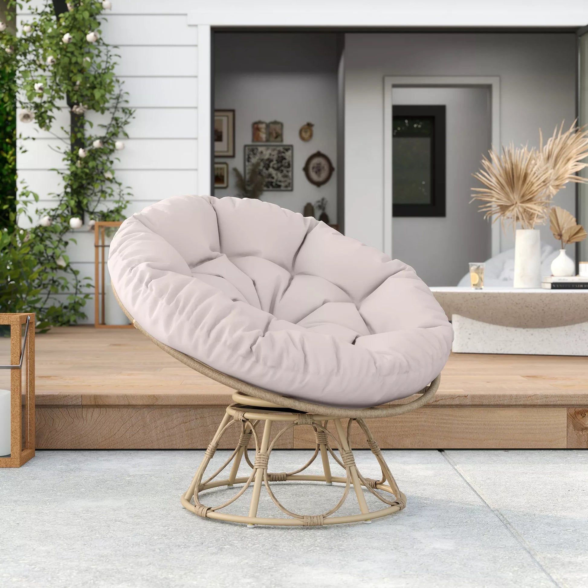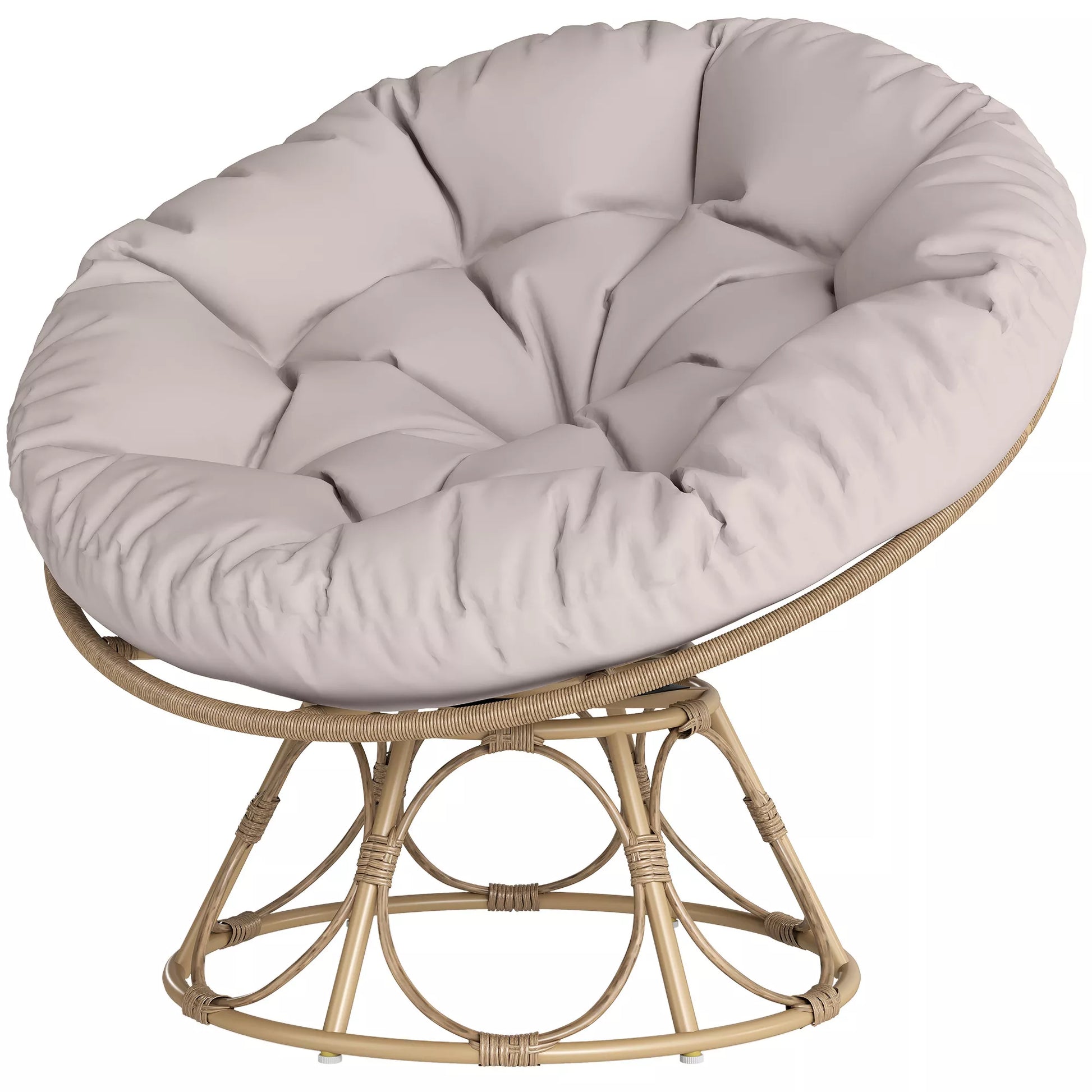 Rotango papasan tipo krėslas, 360° besisukantis, pintas krėslas su sėdimąja pagalvėle, apvalus lauko