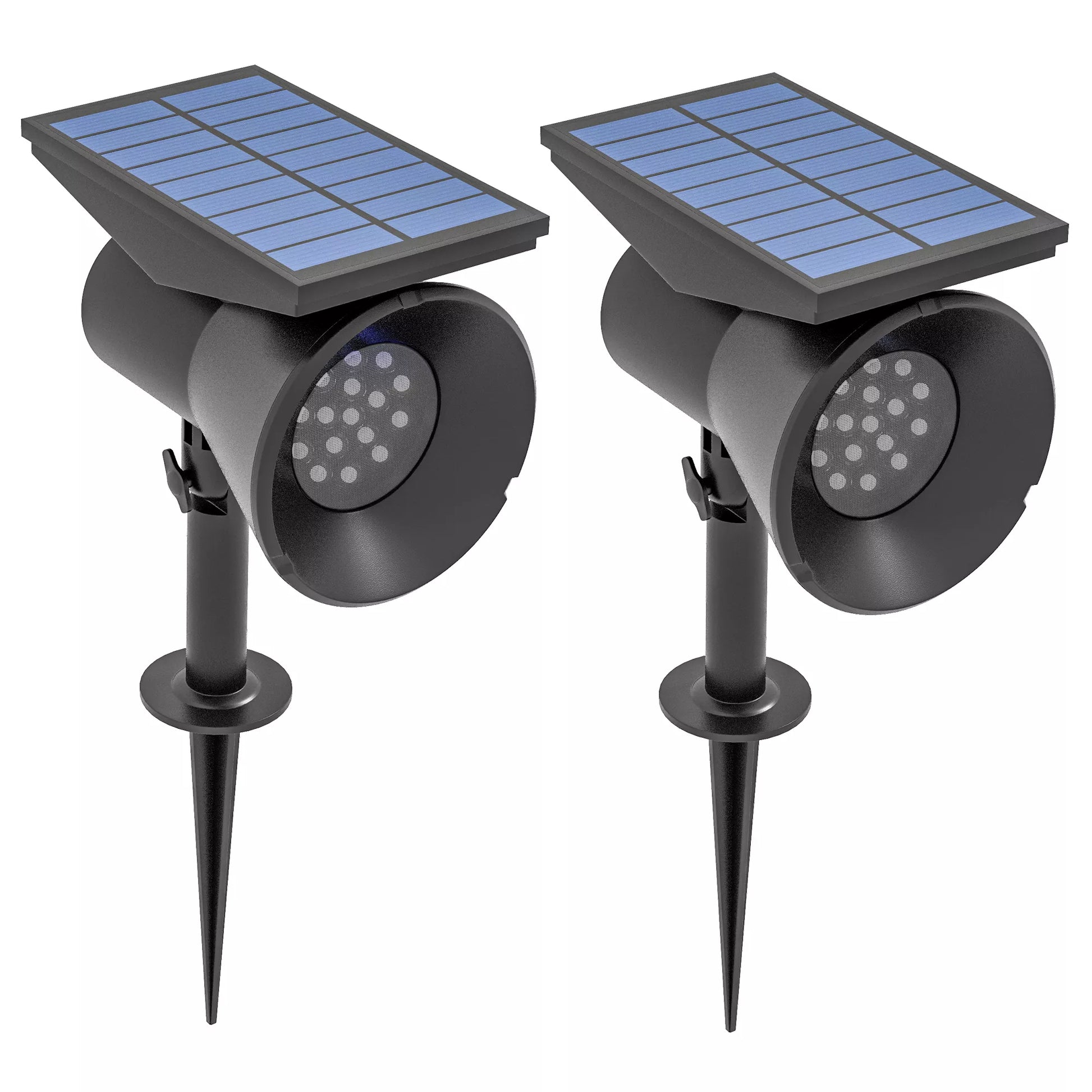Saulės šviestuvai, 2 vnt. saulės lempučių, saulės šviestuvas sodui su 2 šviesos spalvomis, montavimas ant žemės/sienos, IP54 atsparus vandeniui, balkonui, terasai, juodos spalvos