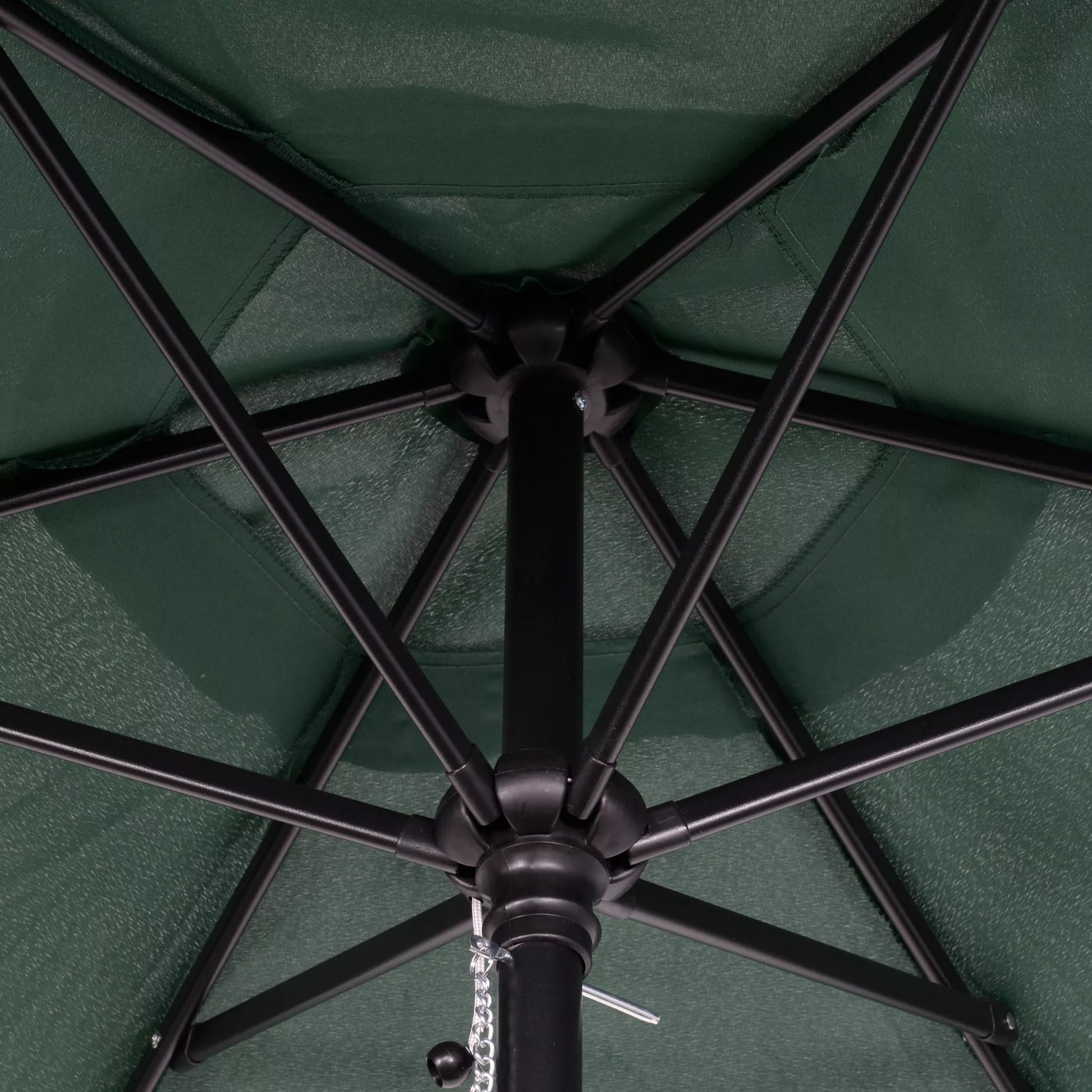 - ✔ Aliuminio rėmas laiko skėtį stabilų, sujungtas su skėčio stogu per šešias plienines atramas